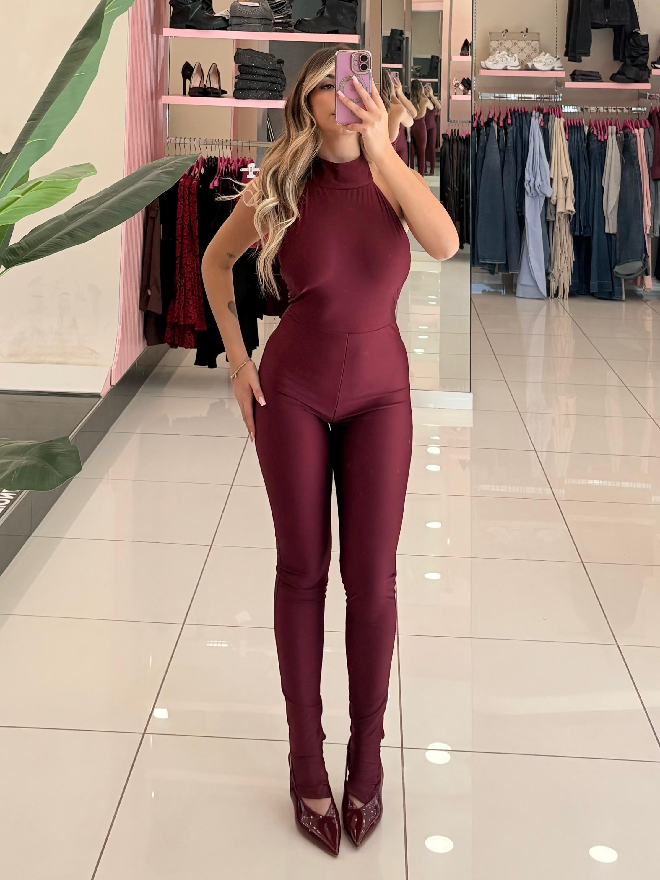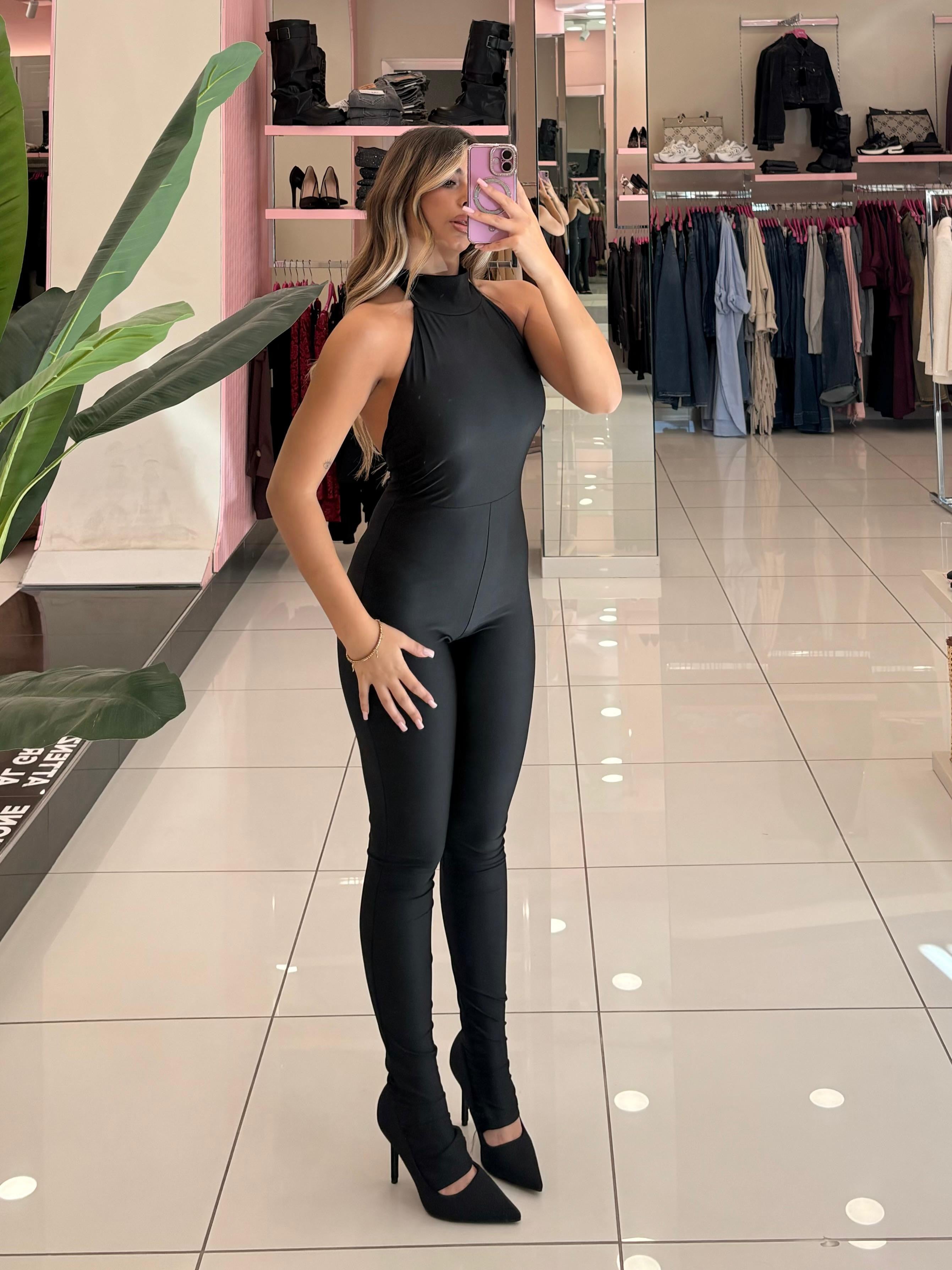 Tuta intera in licra contenitiva con aggrappatura caviglie e scollo schiena