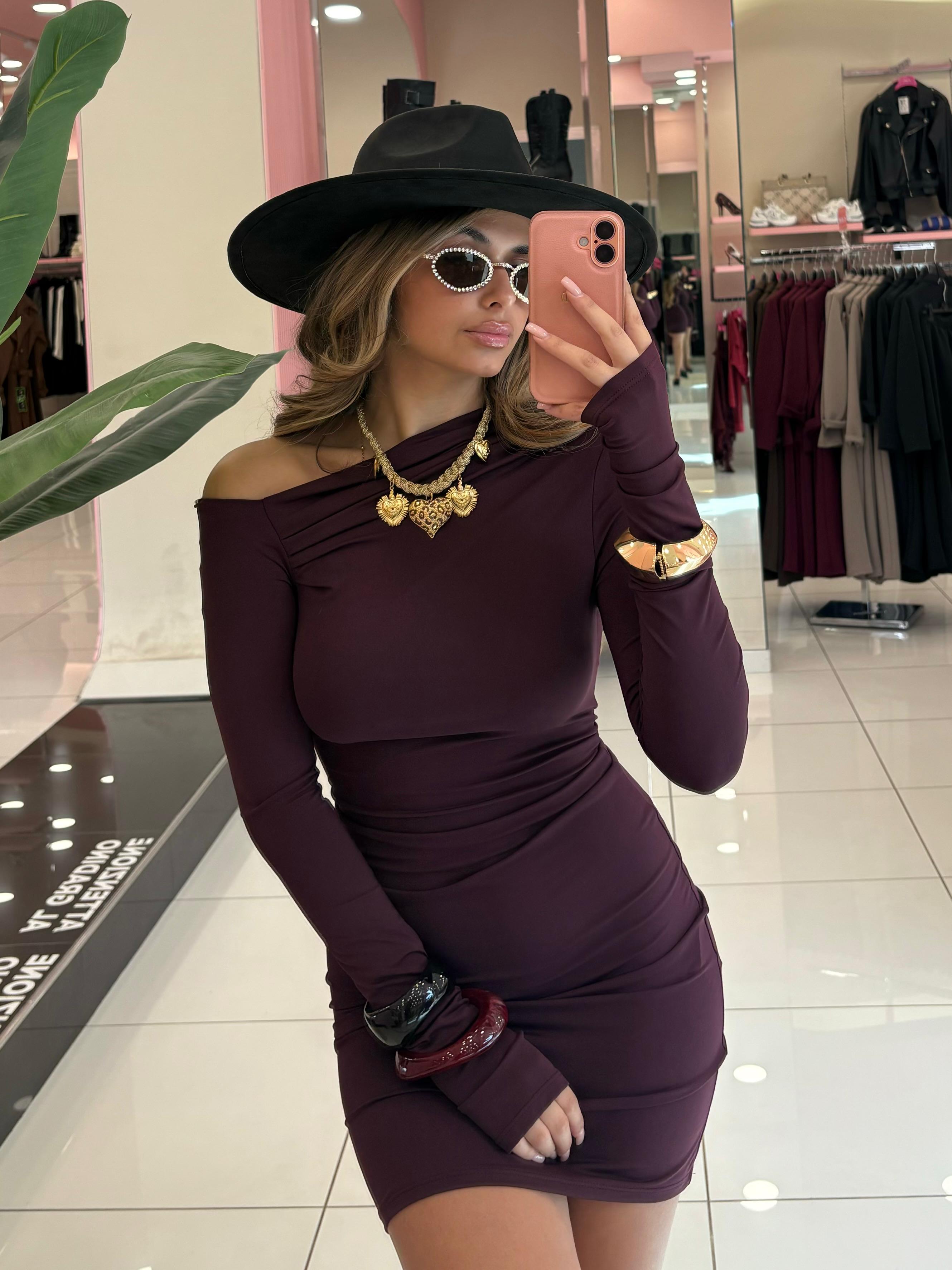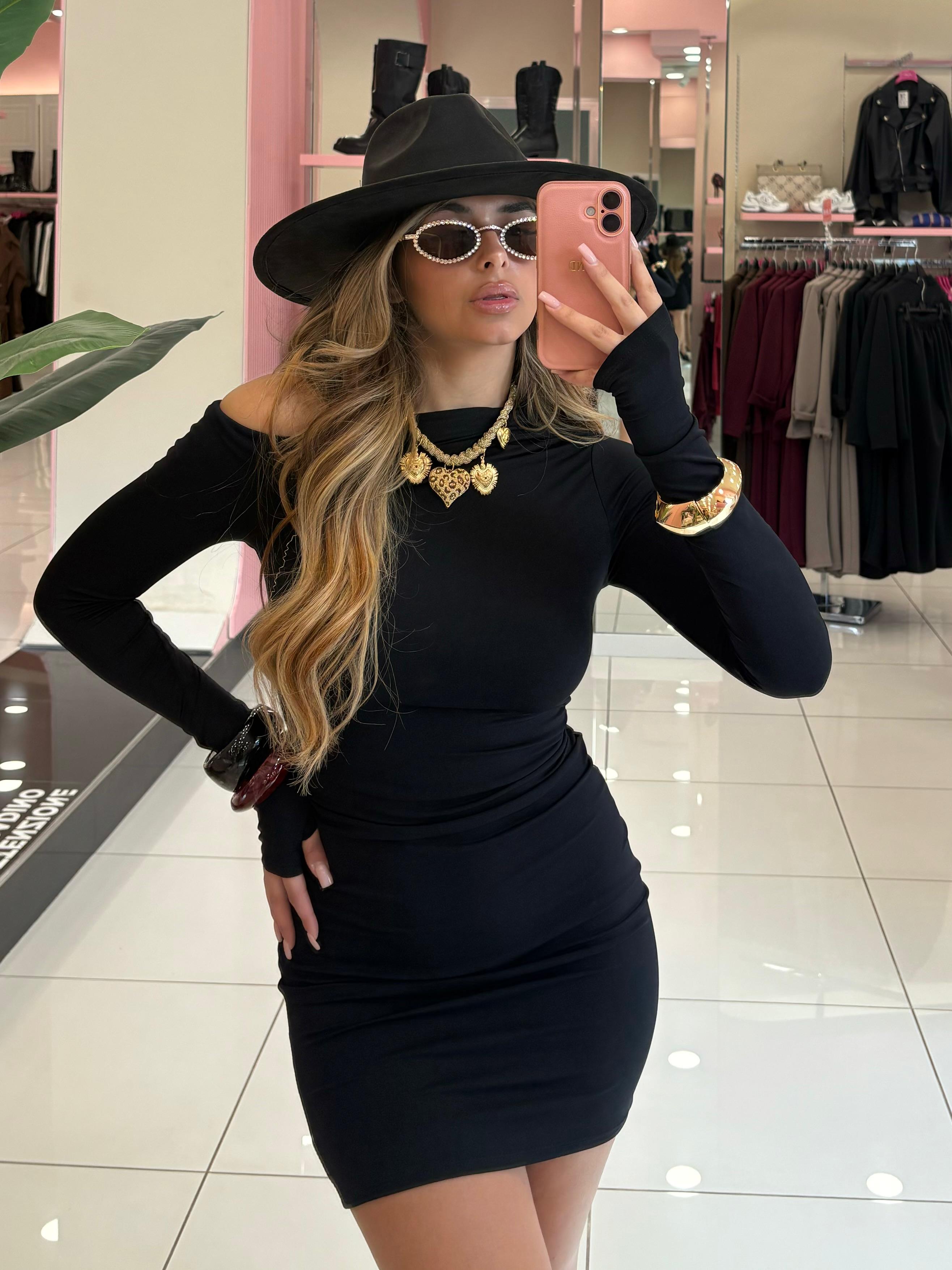 Mini dress con scollo trasversale, tessuto contenitivo