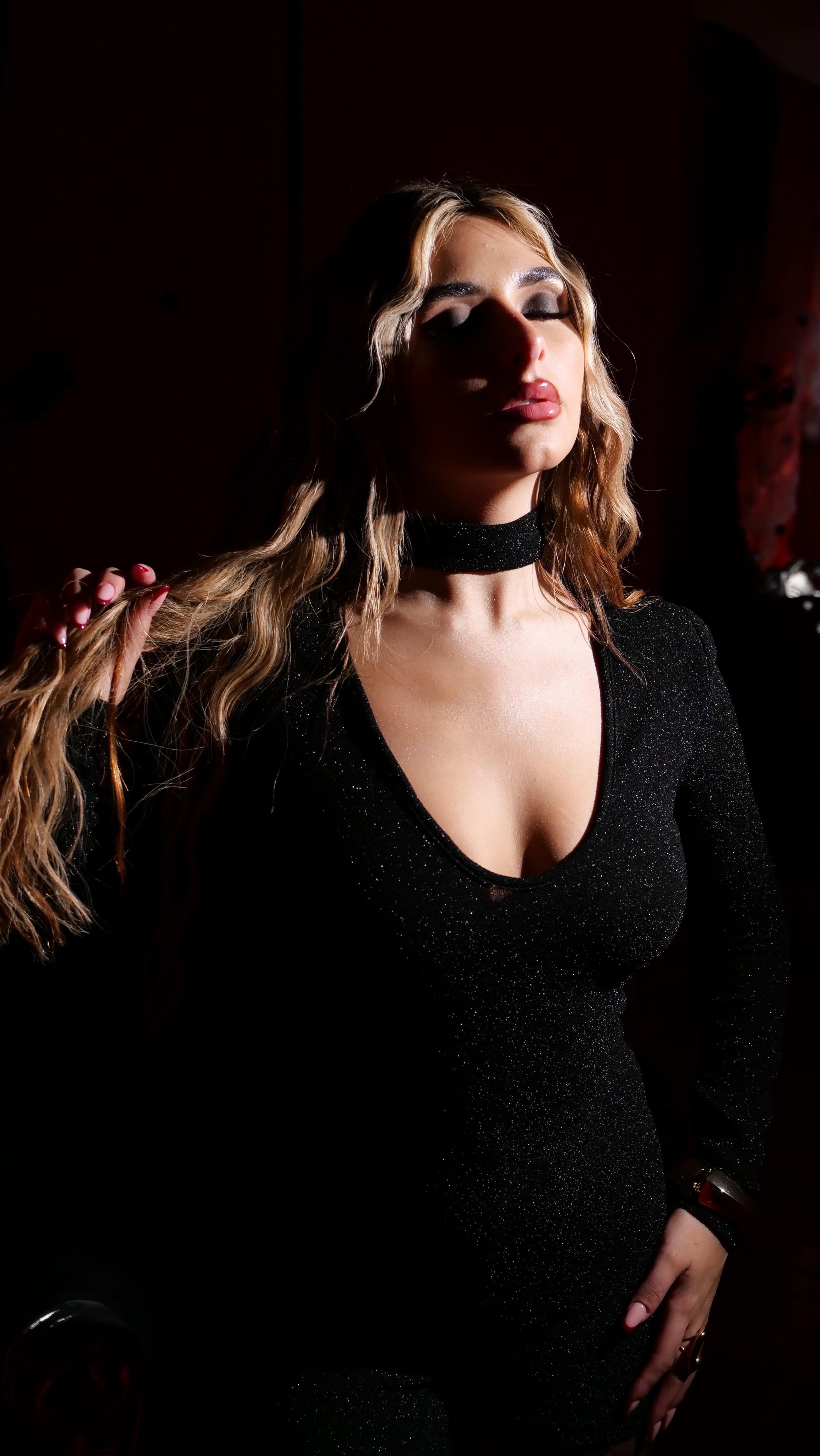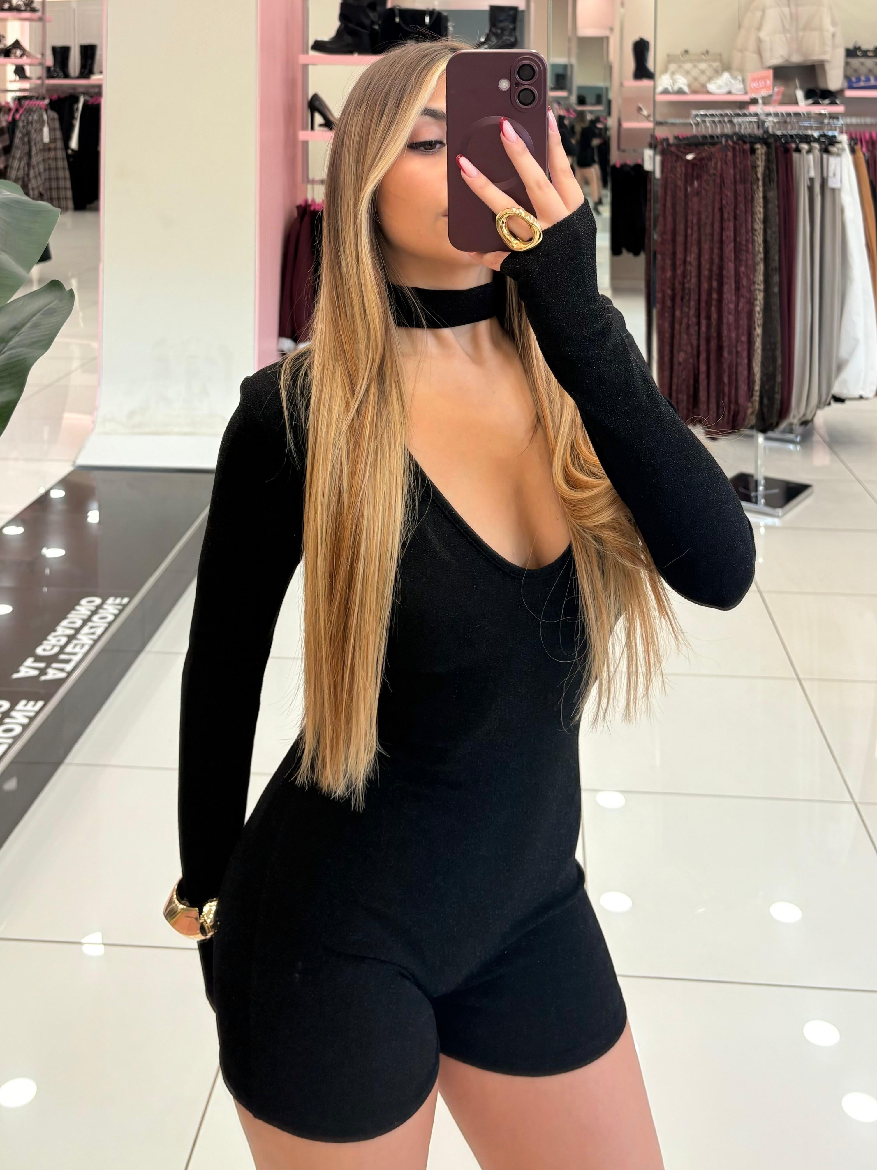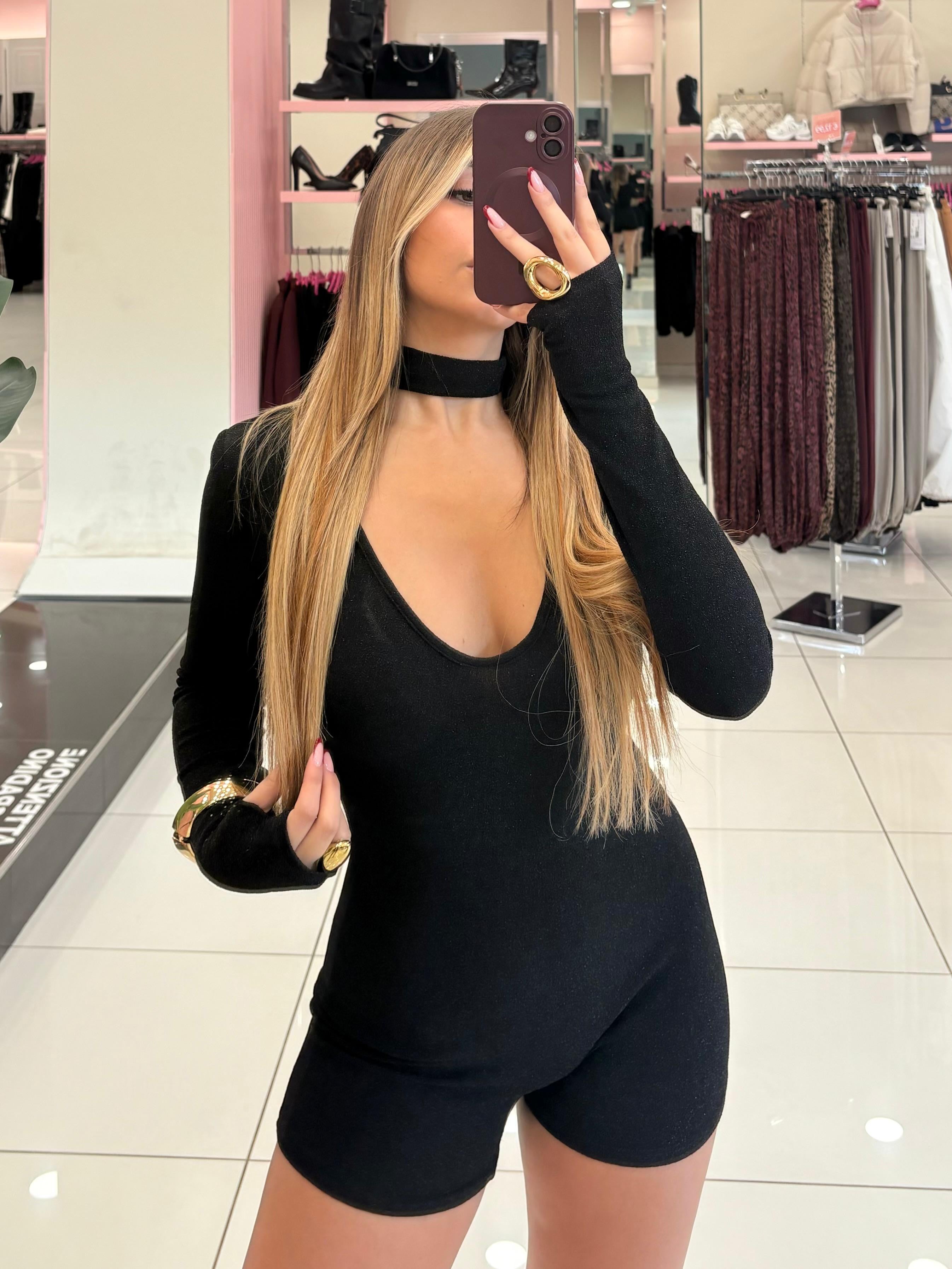 Tutina in lurex con manica a guanto e choker integrato