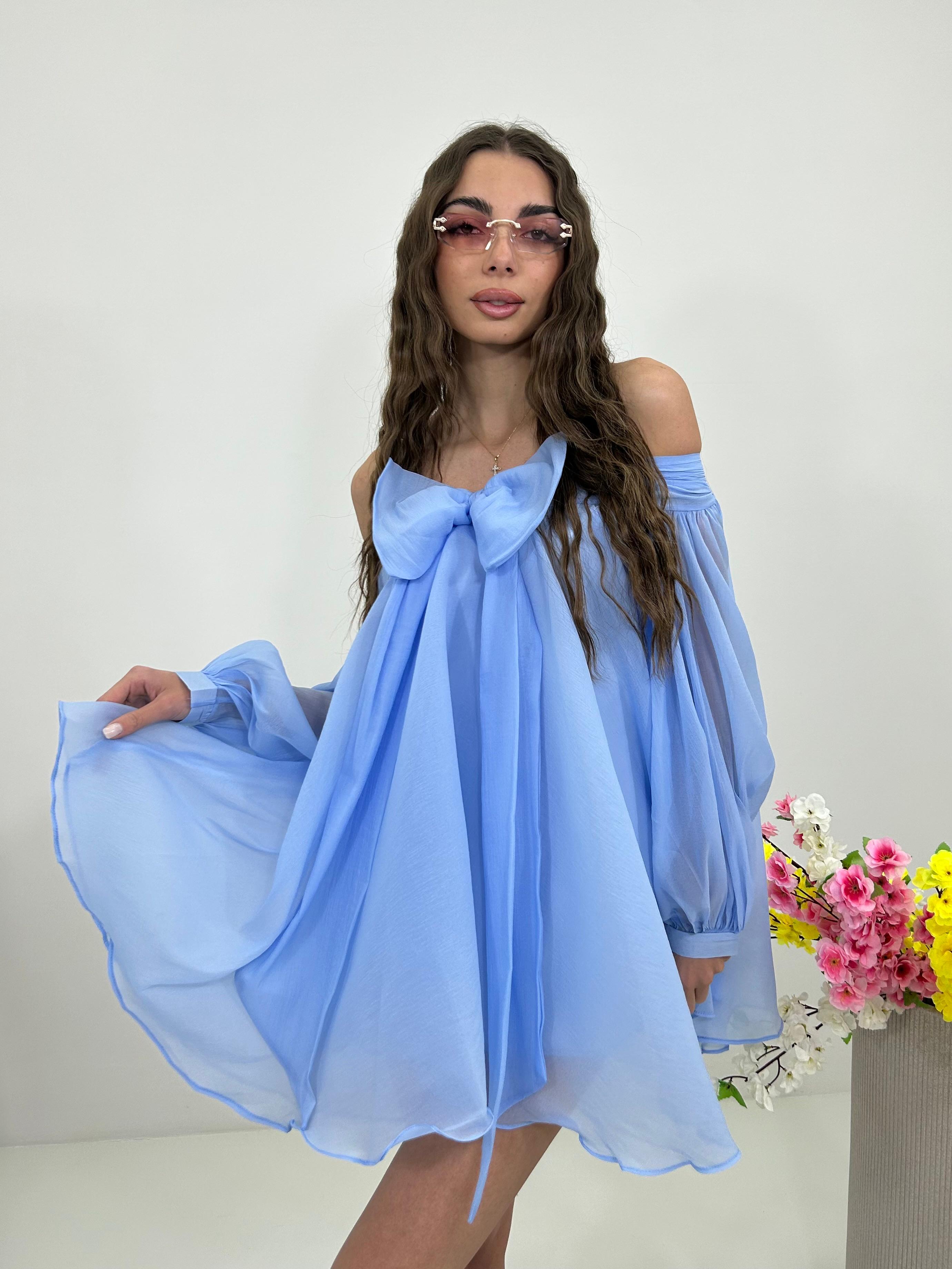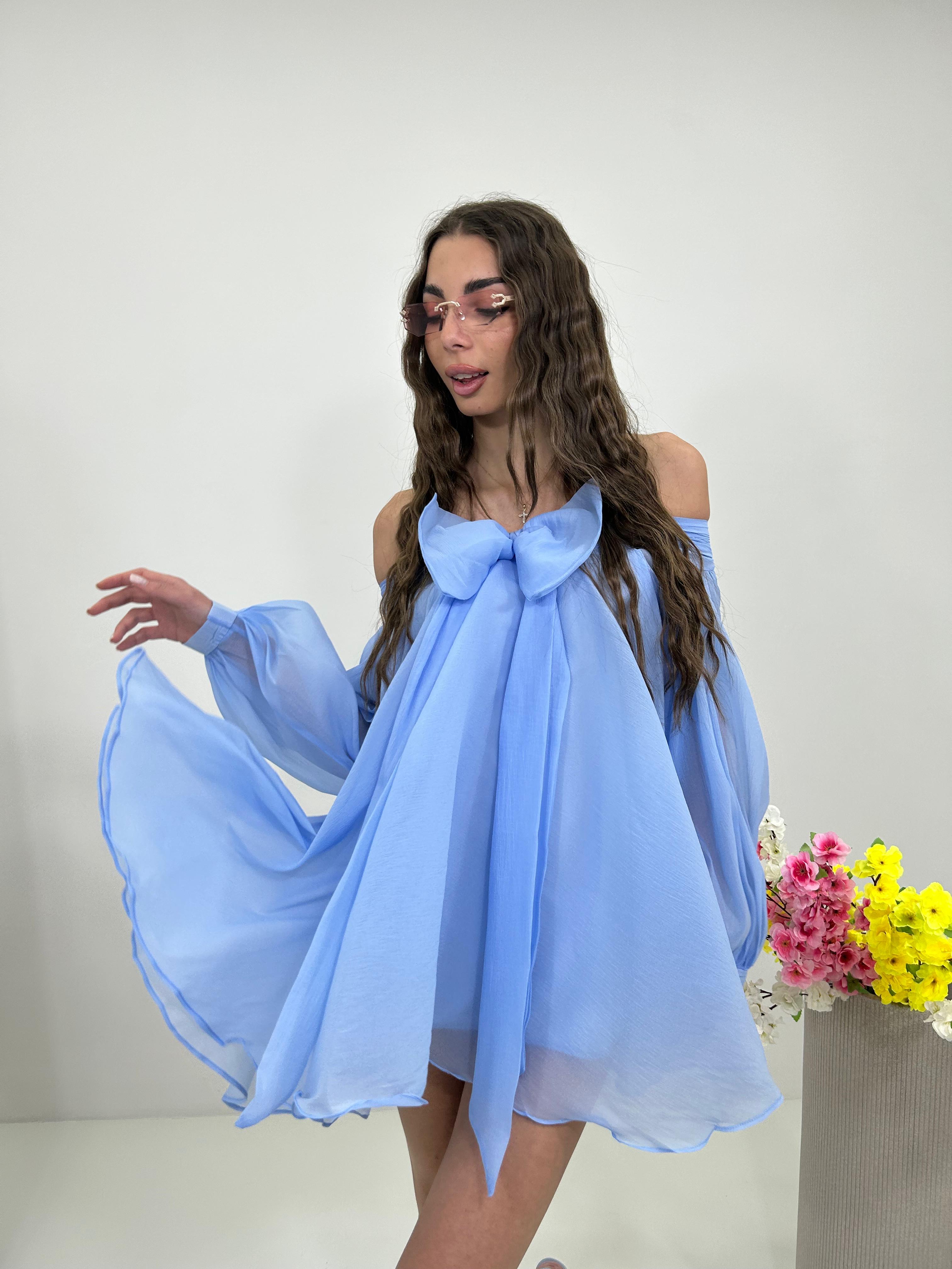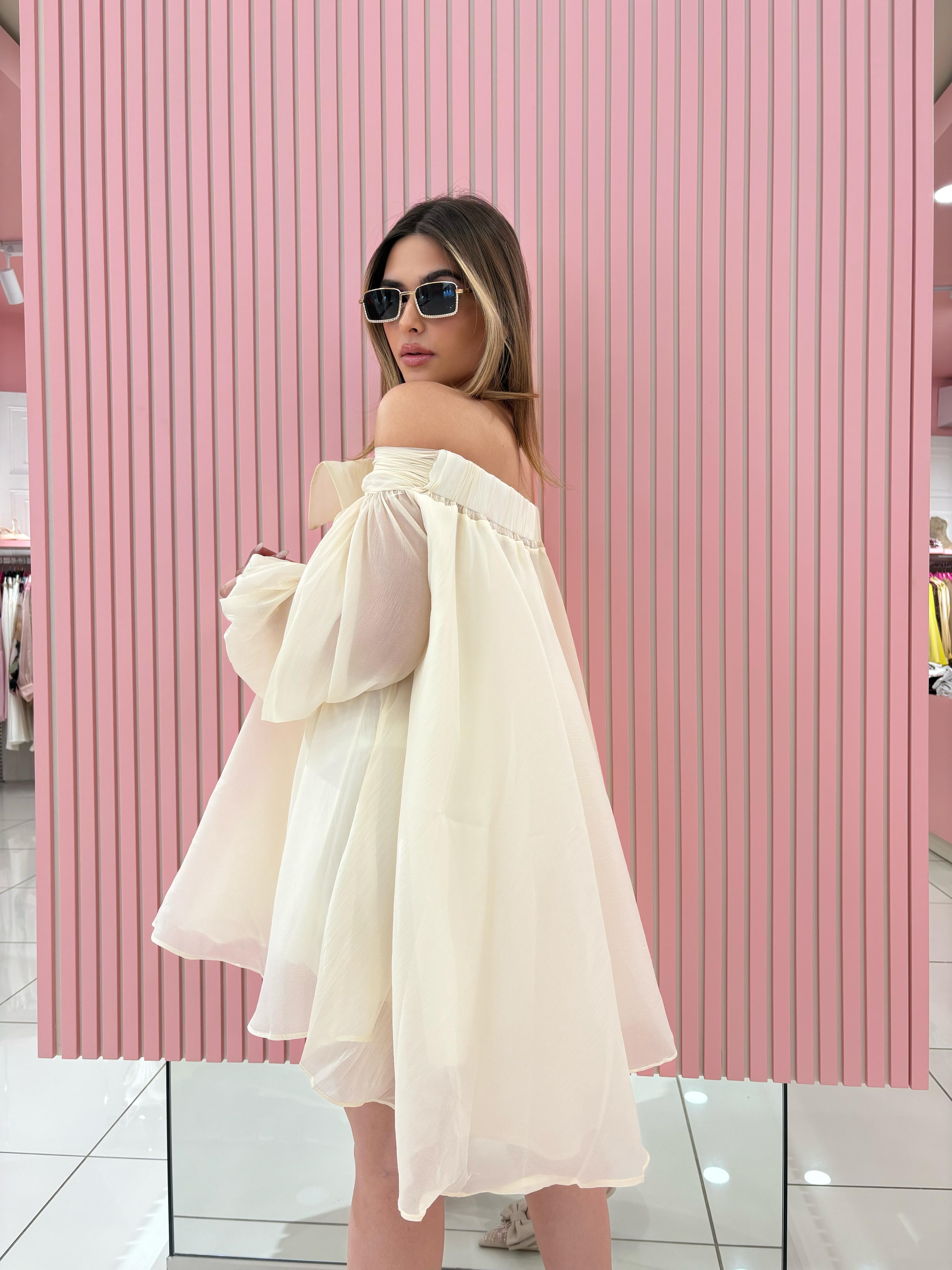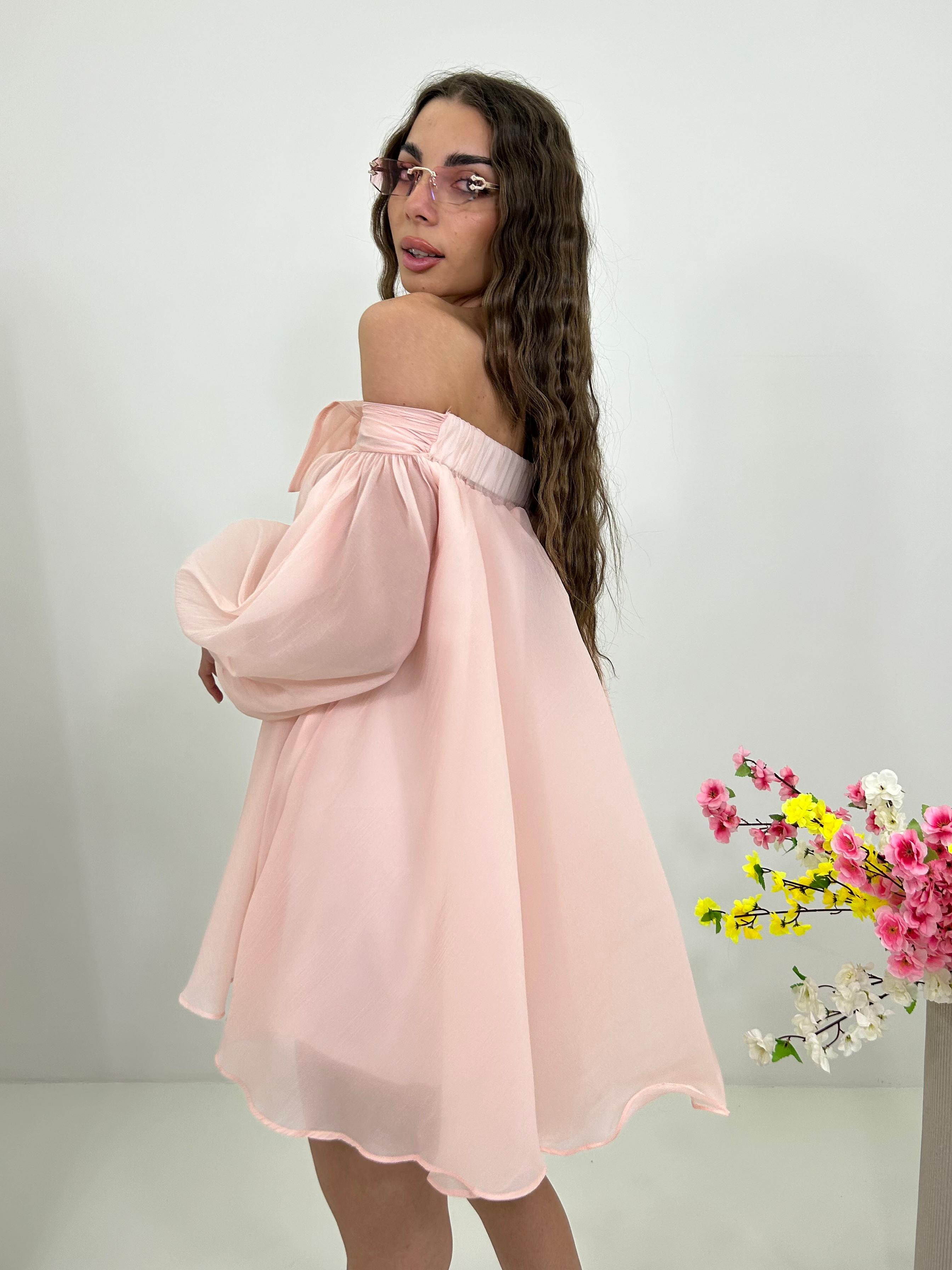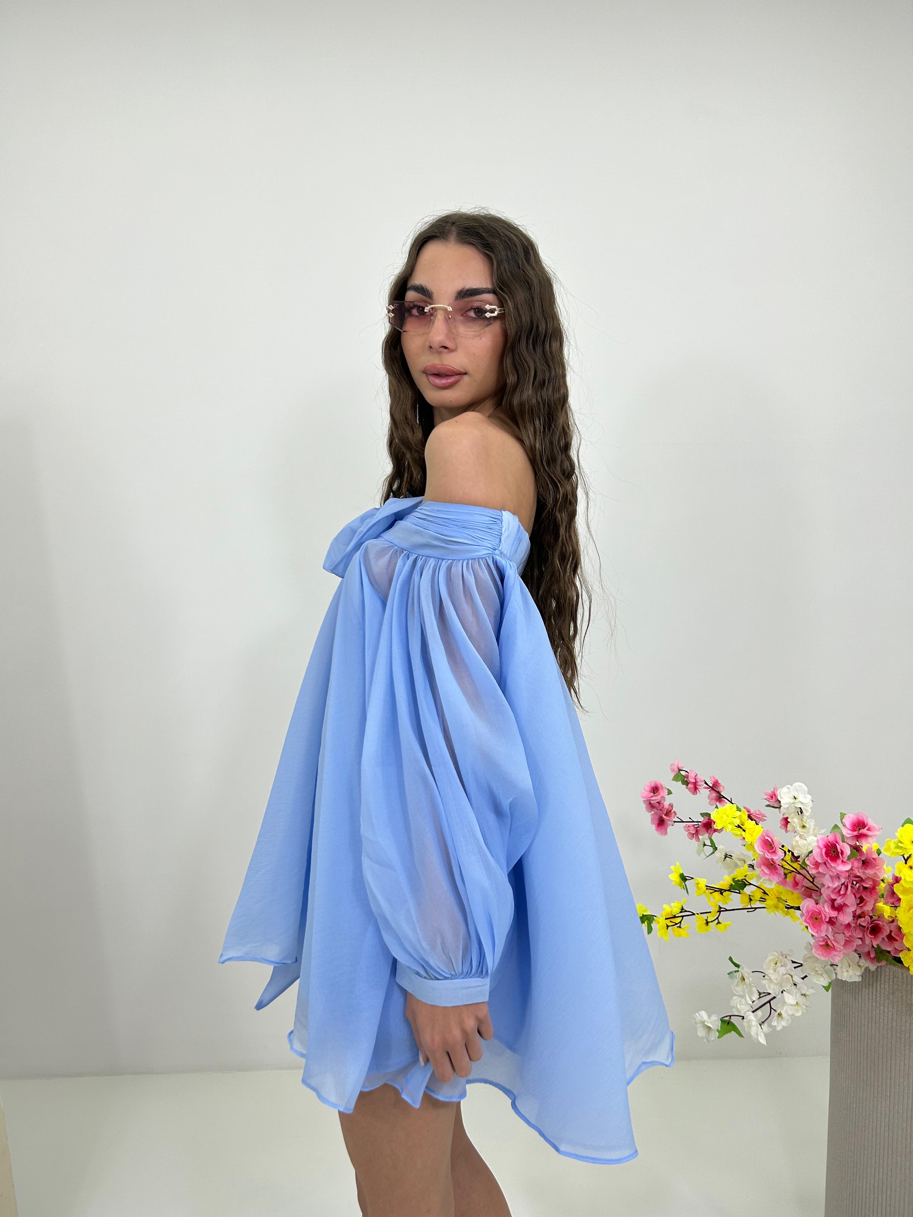 Vestitino velato scollo a barca con fiocco e fodera coprente