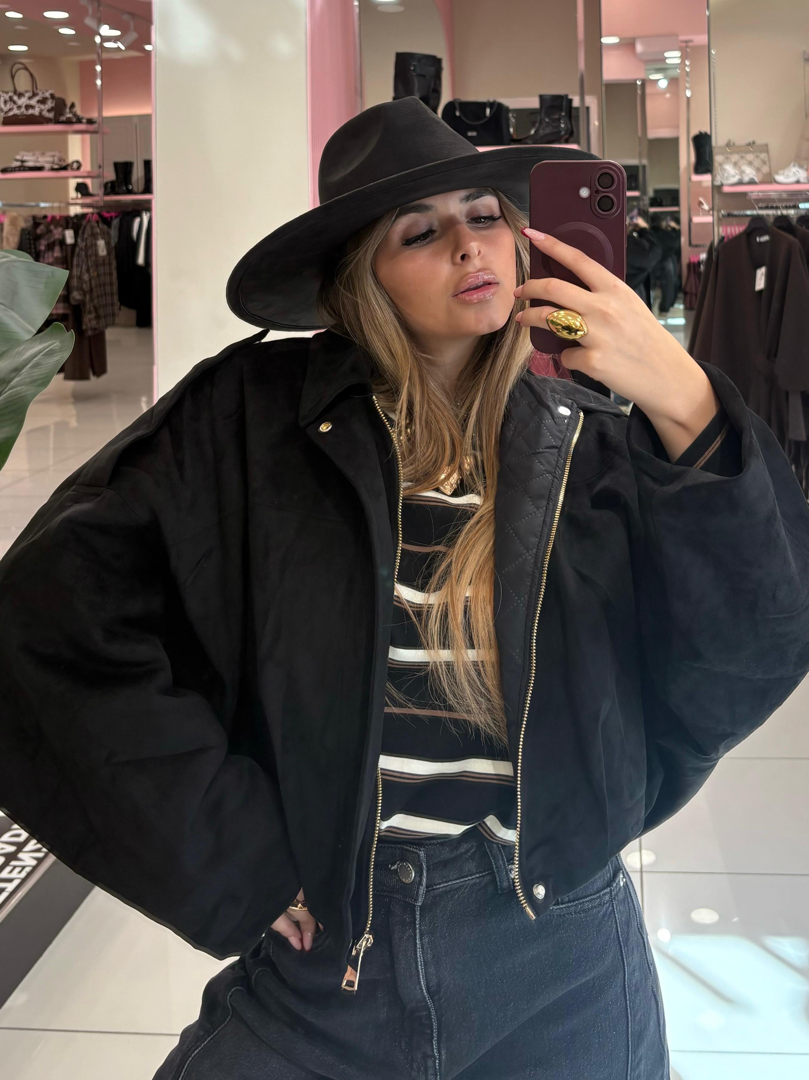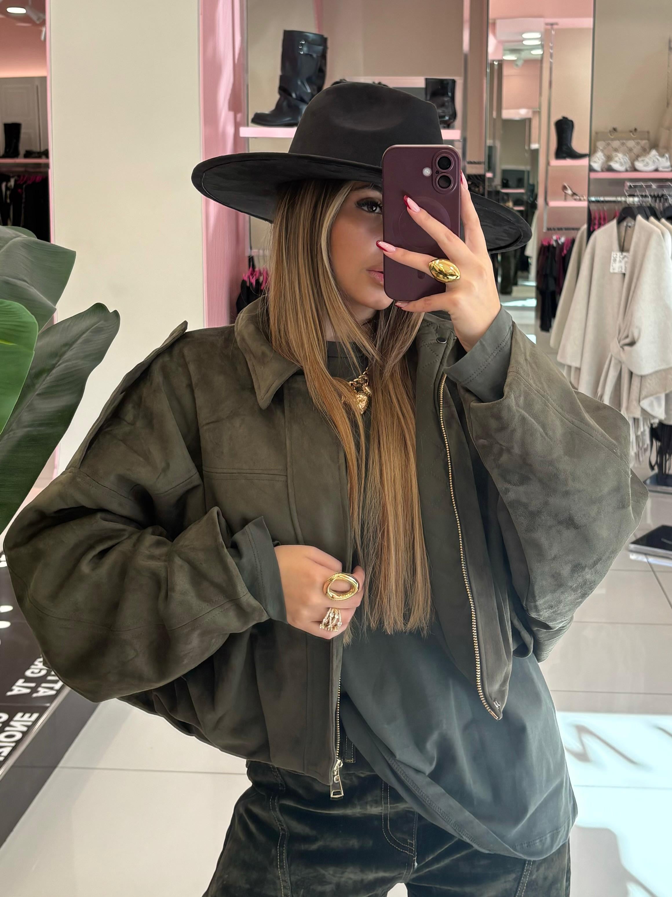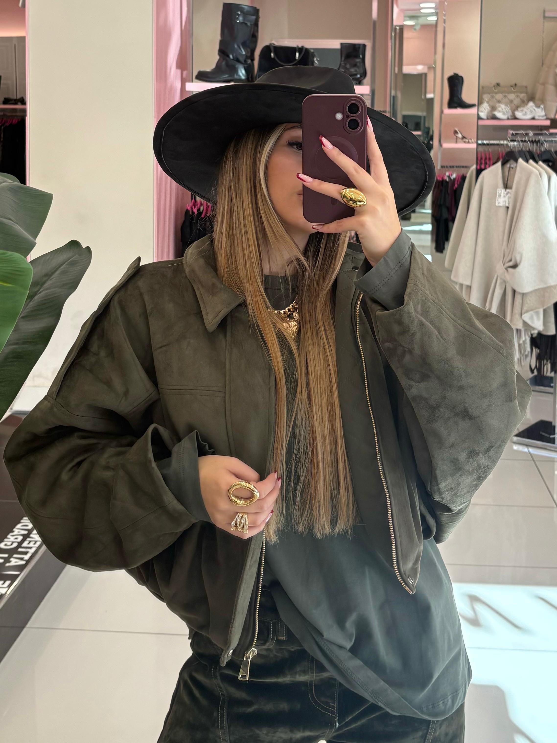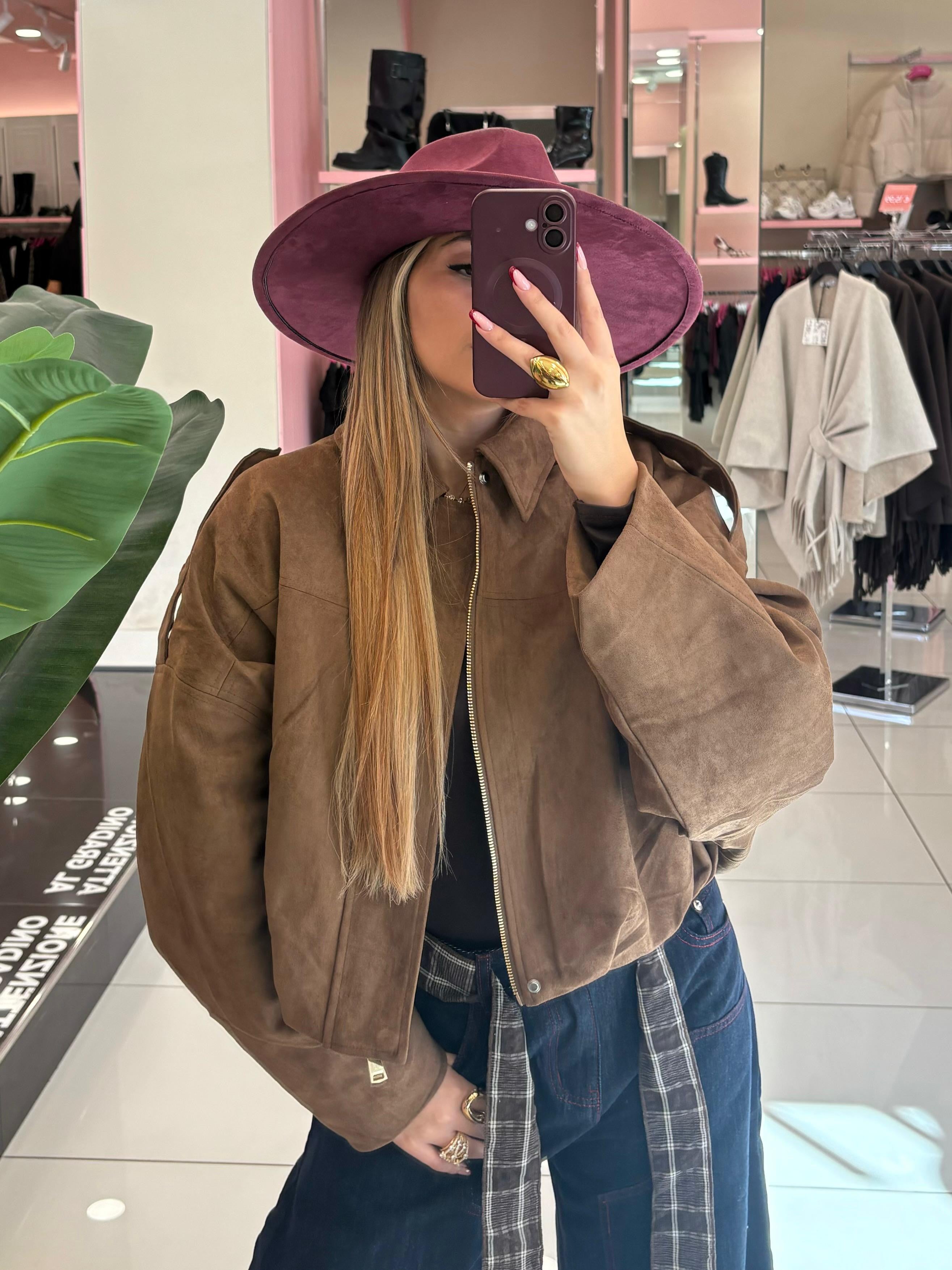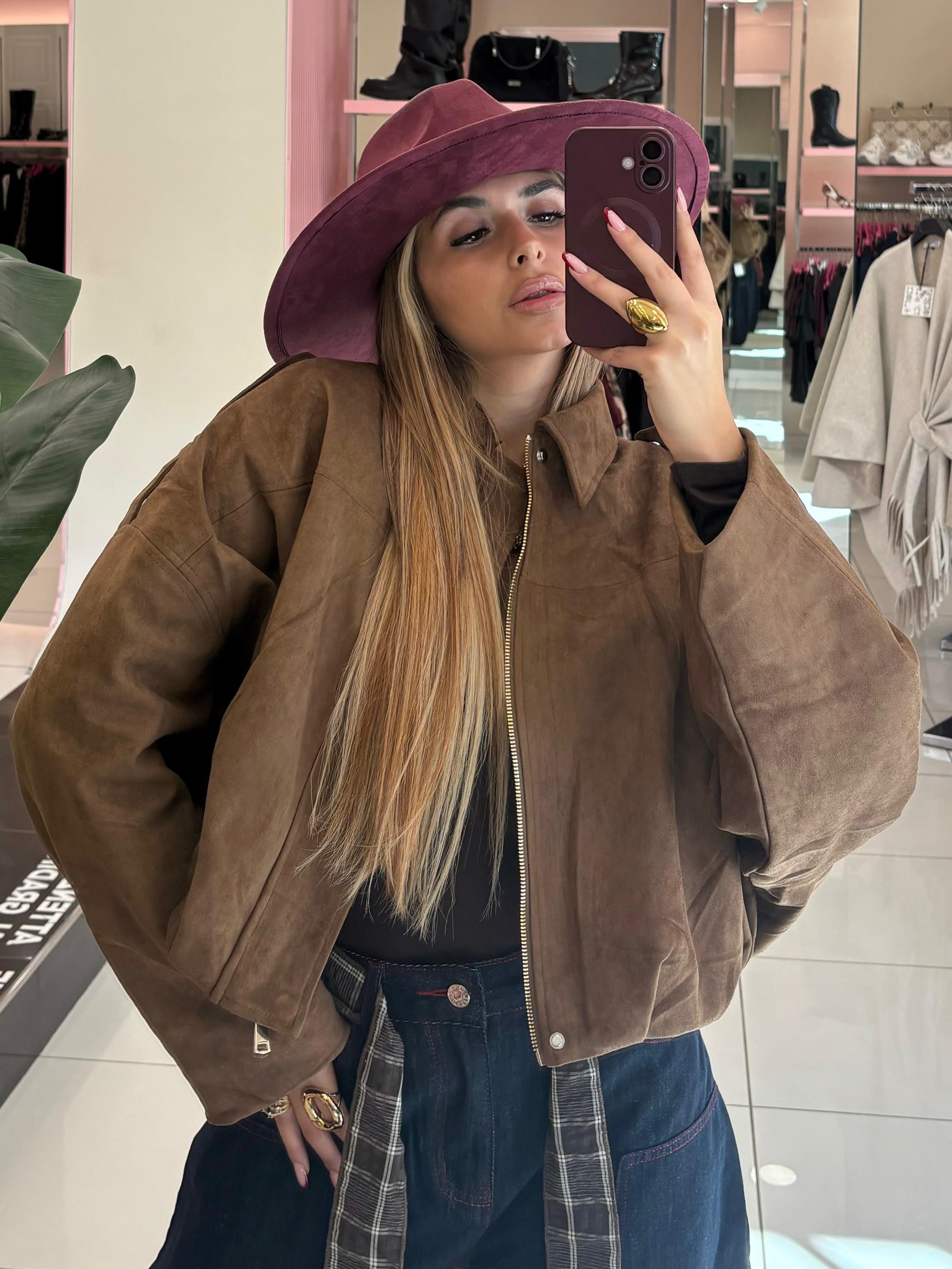 Giubbino bomber scamosciato trapuntato all'interno con zip