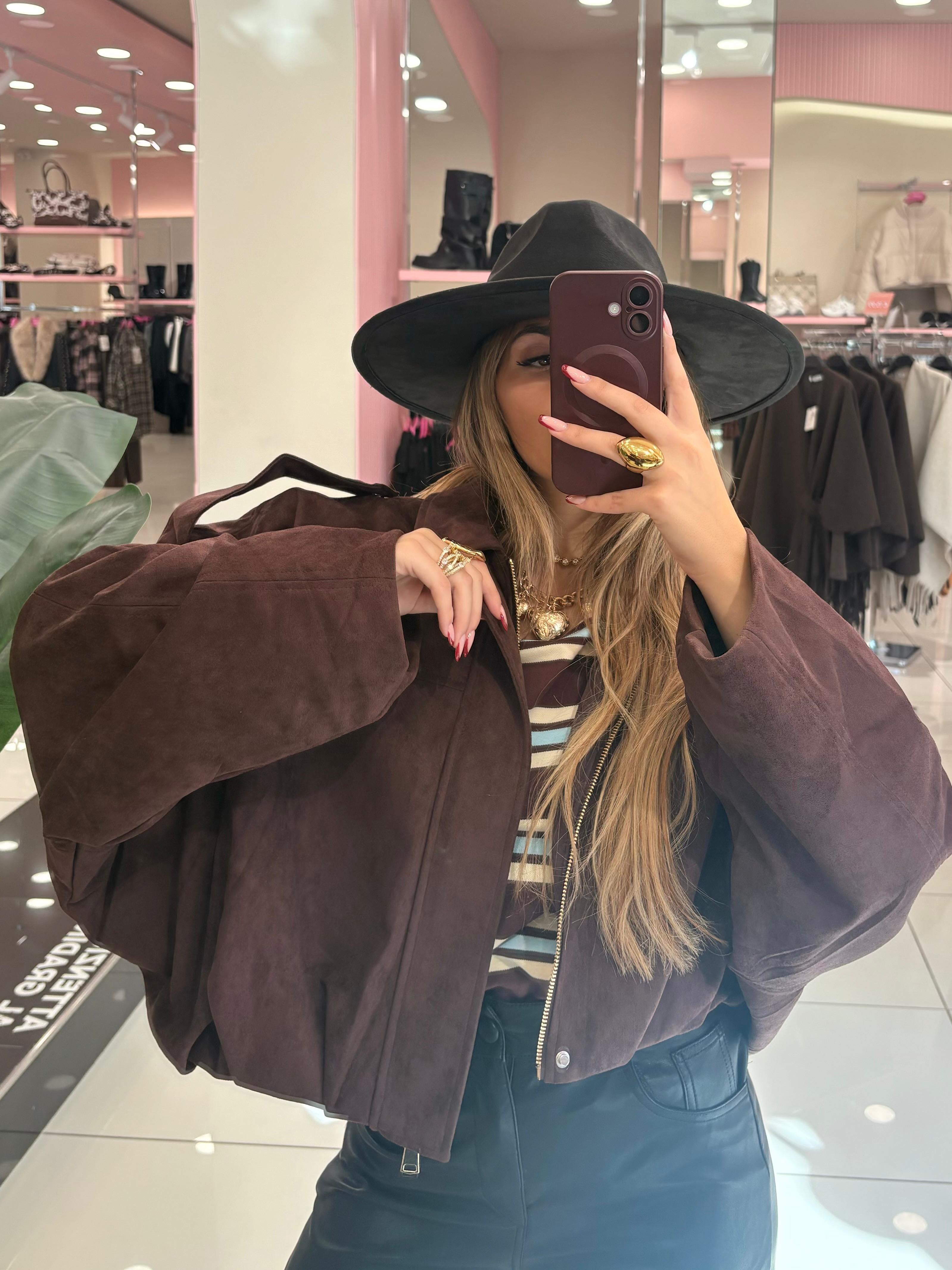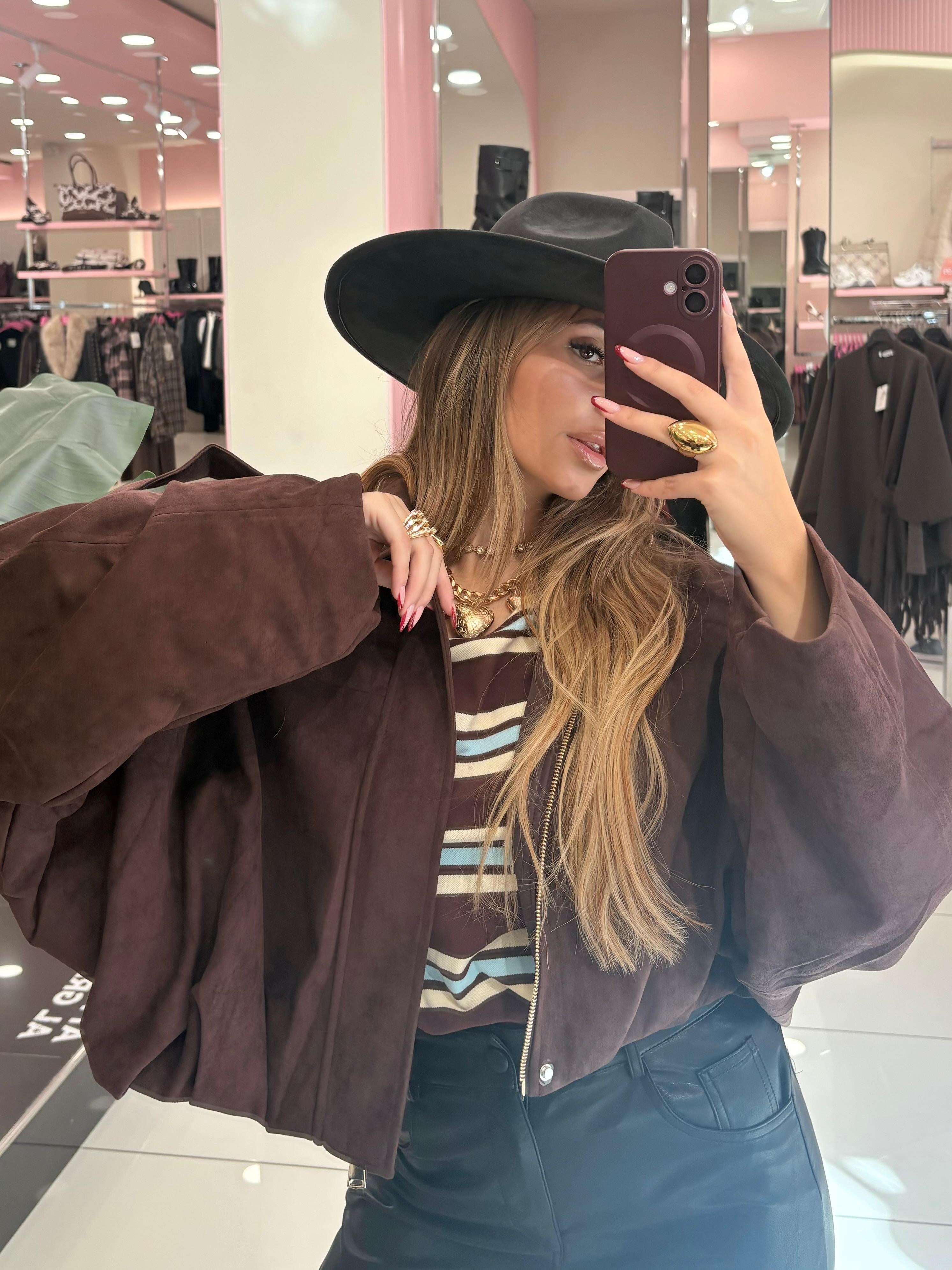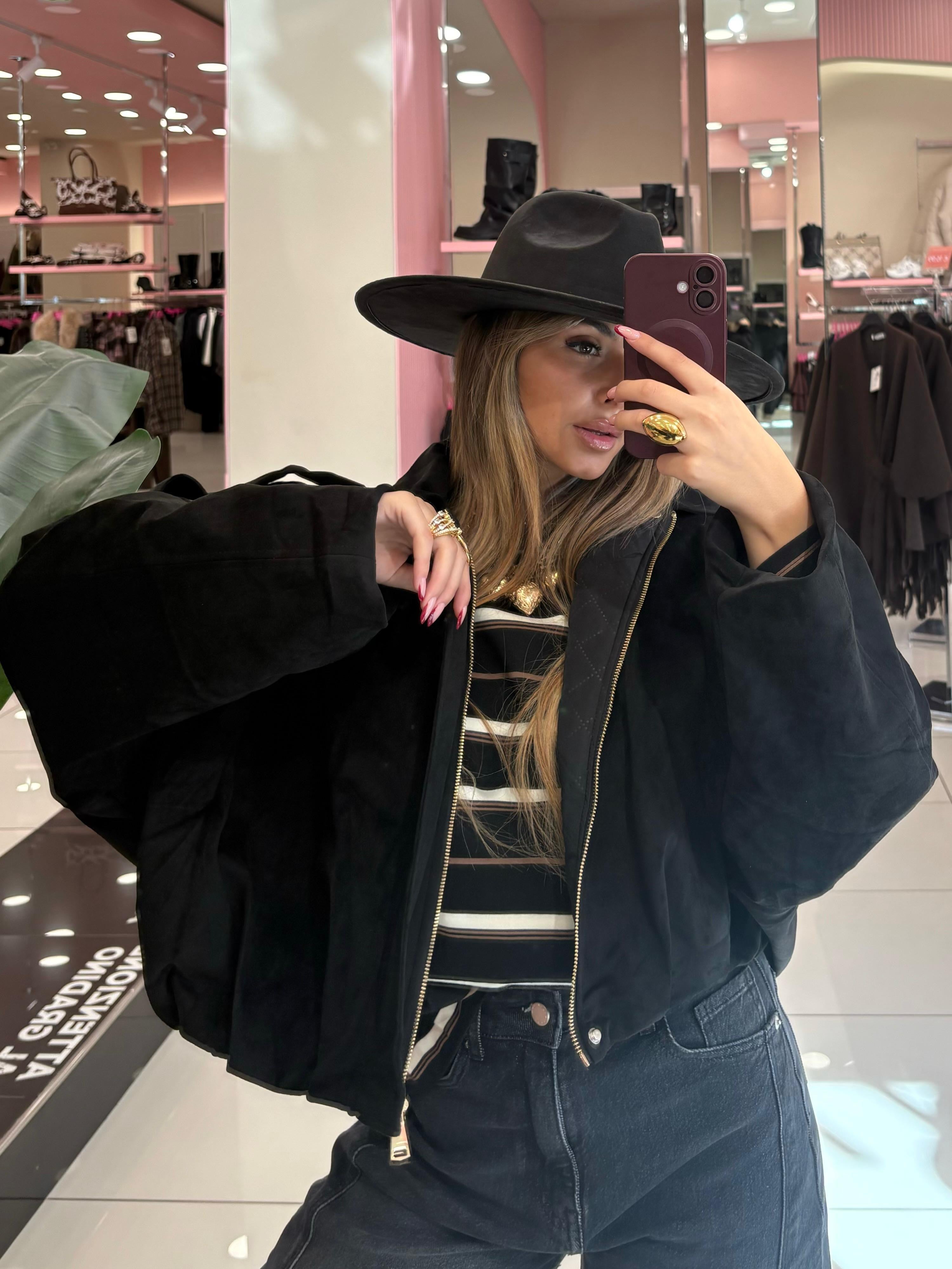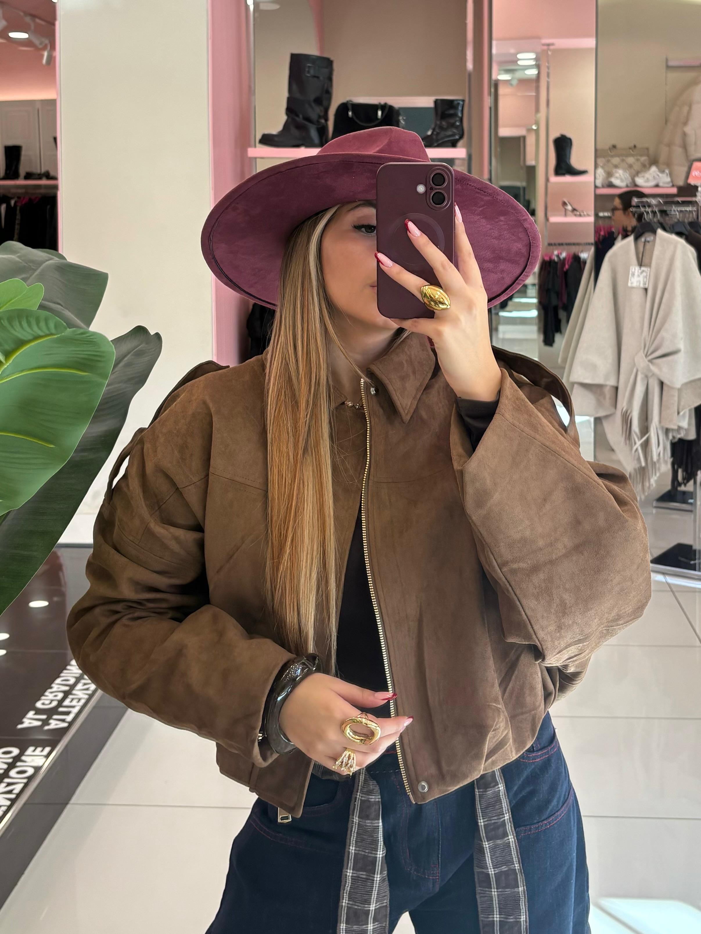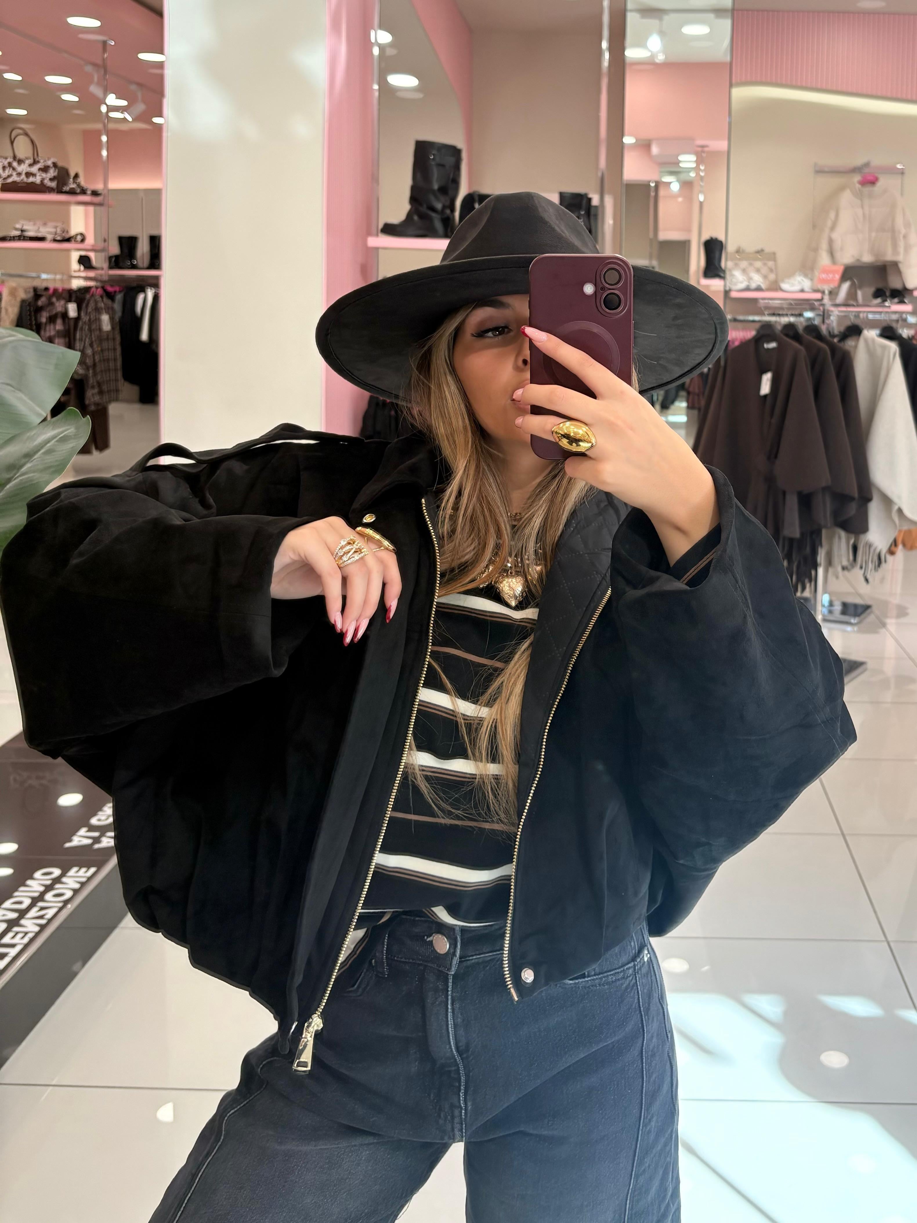 Giubbino bomber scamosciato trapuntato all'interno con zip
