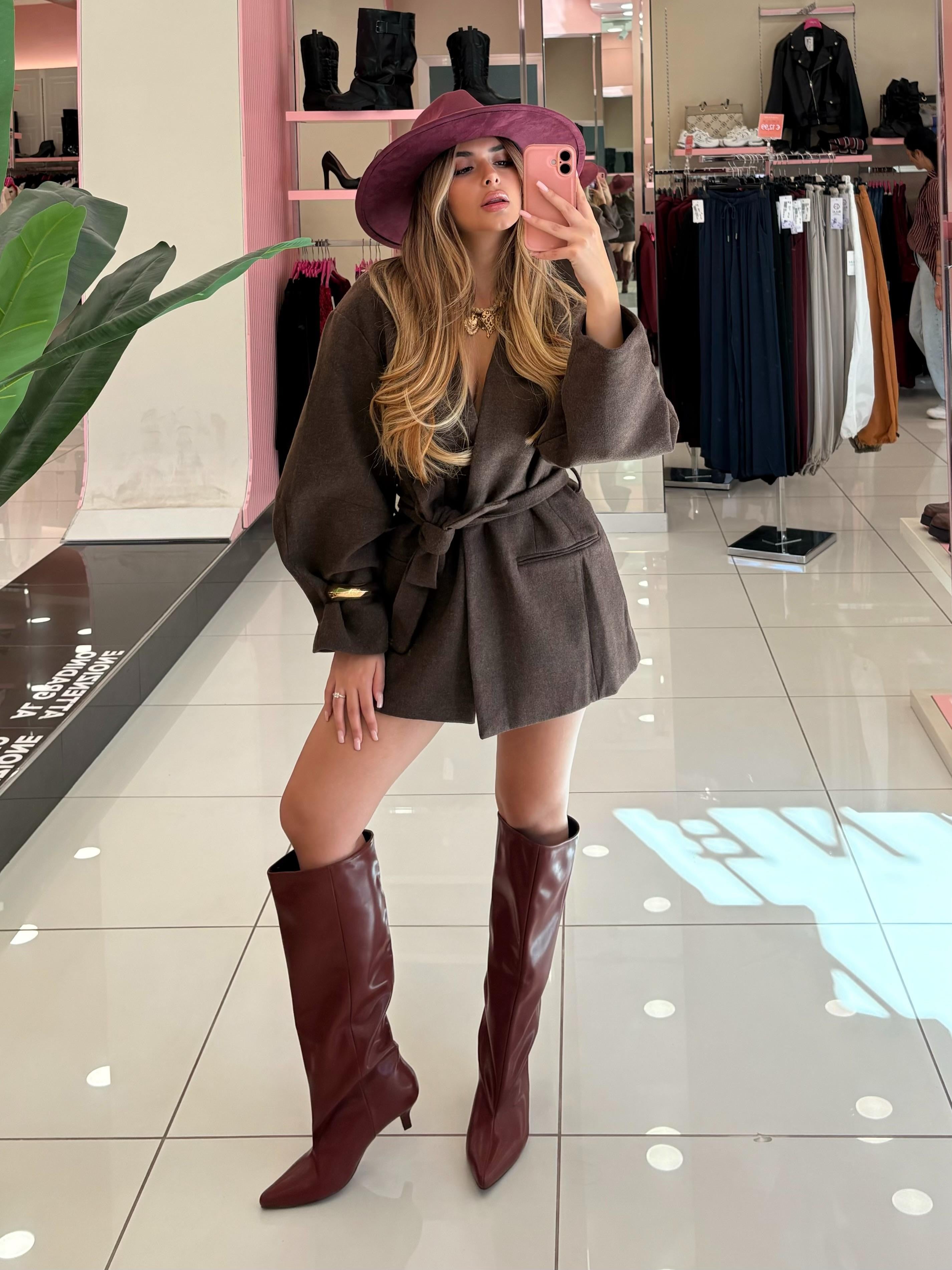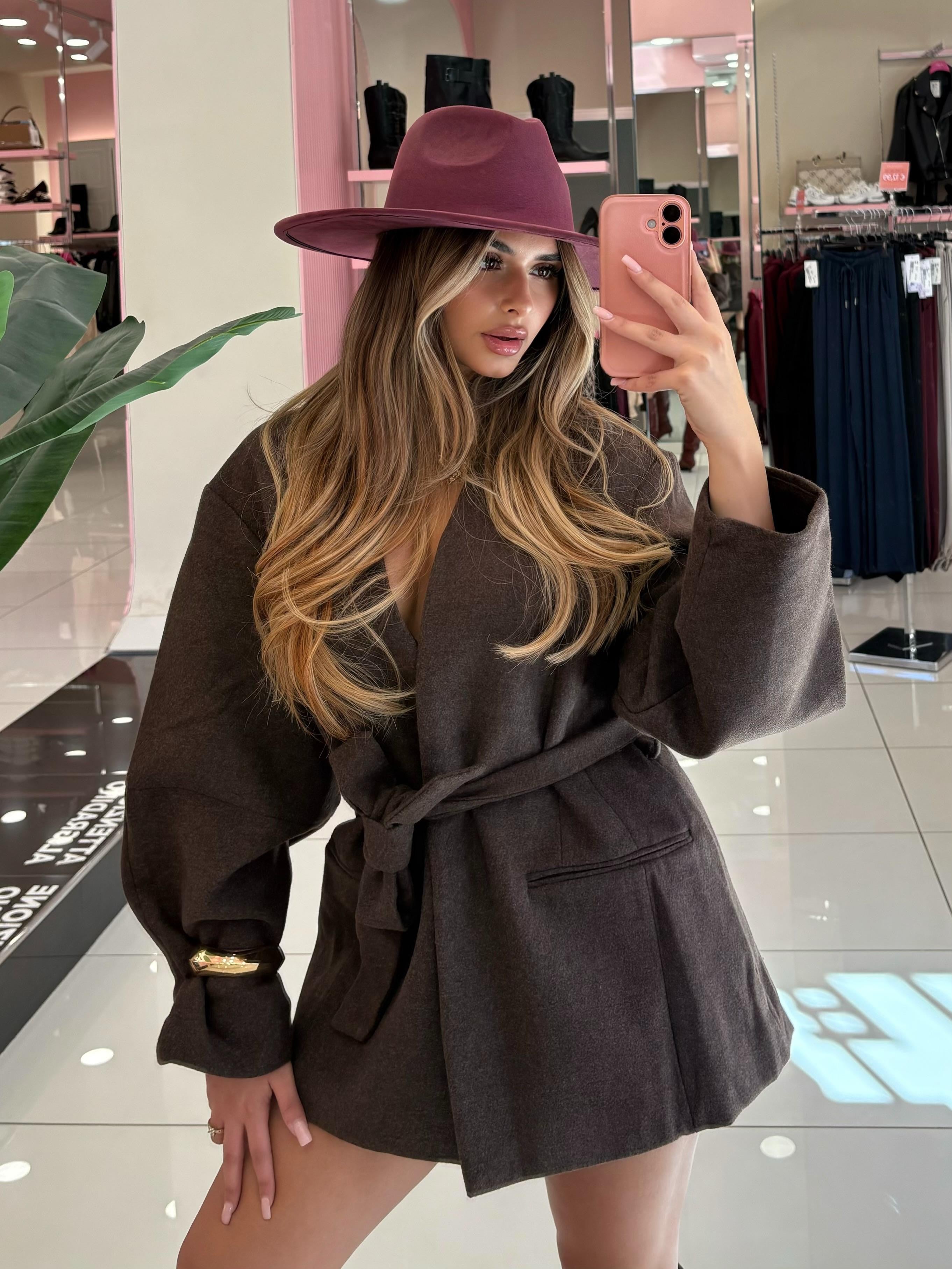 Giacca in panno, chiusura con due clip invisibili e cinturino