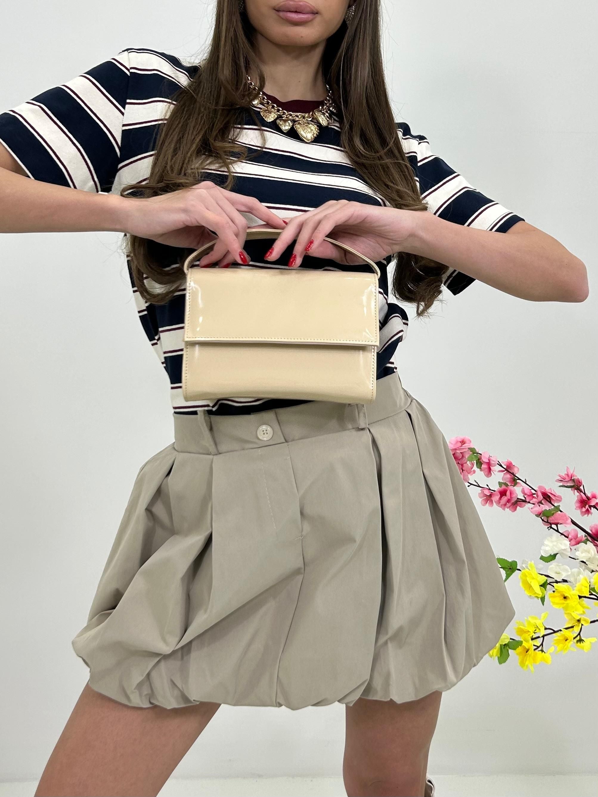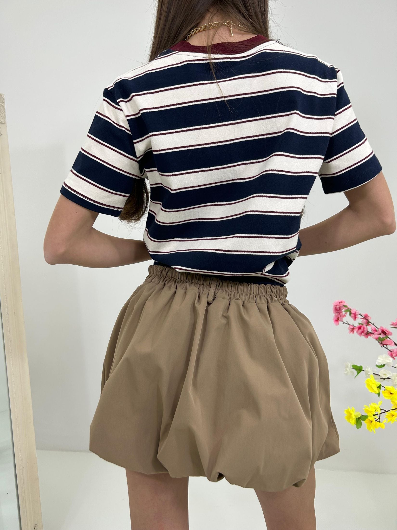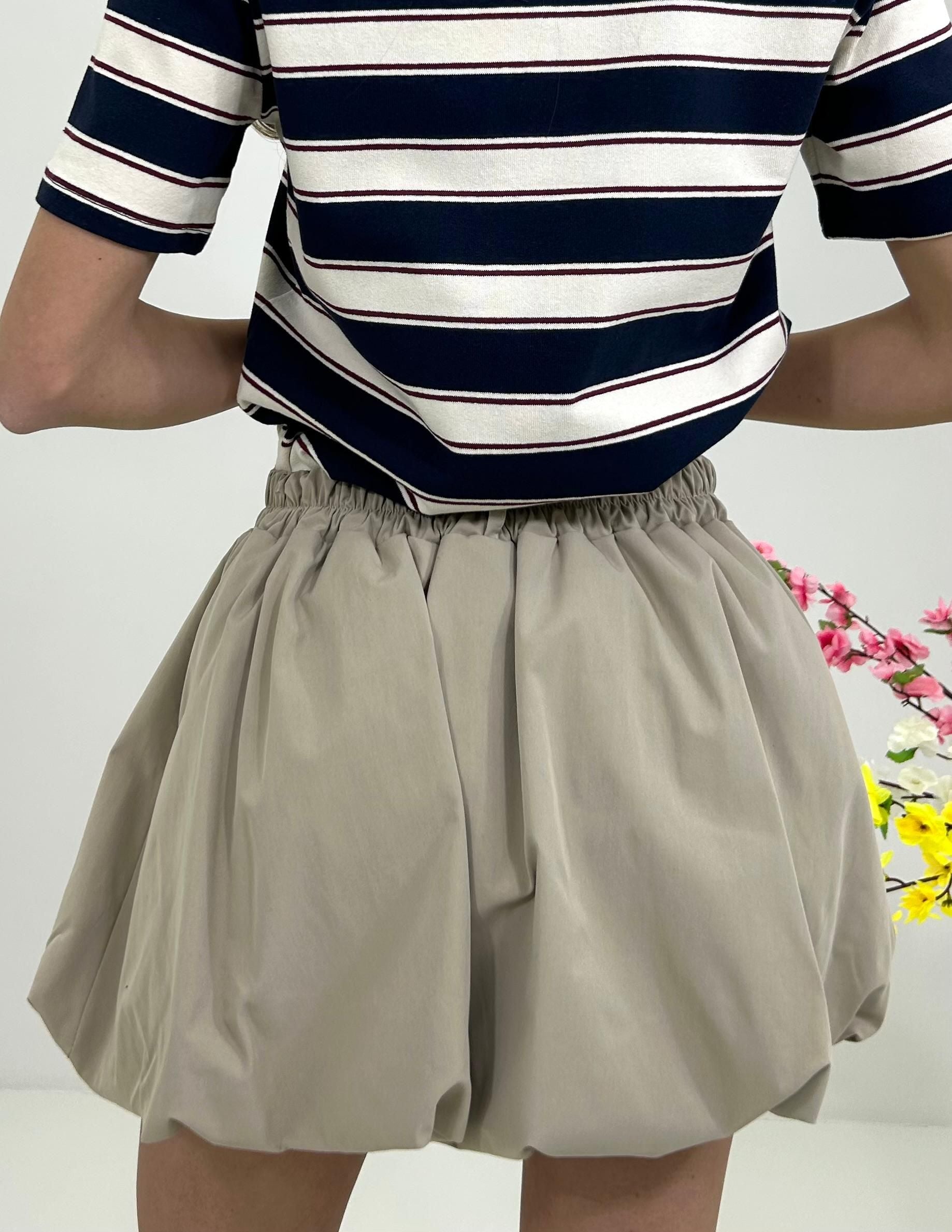 Gonnellina bambolina con bottone ed elastico posteriore in vita, foderata all'interno