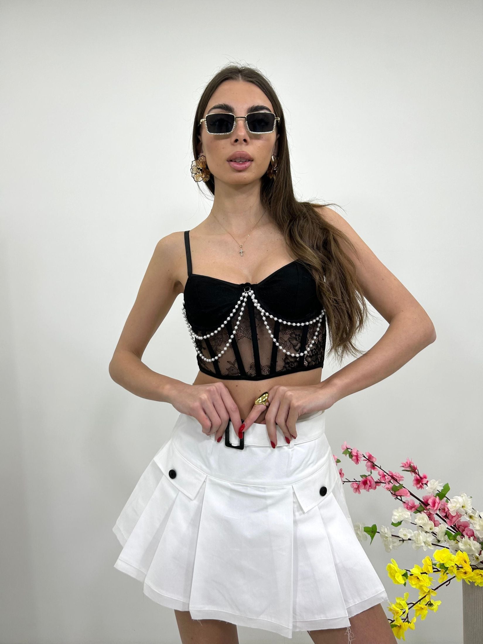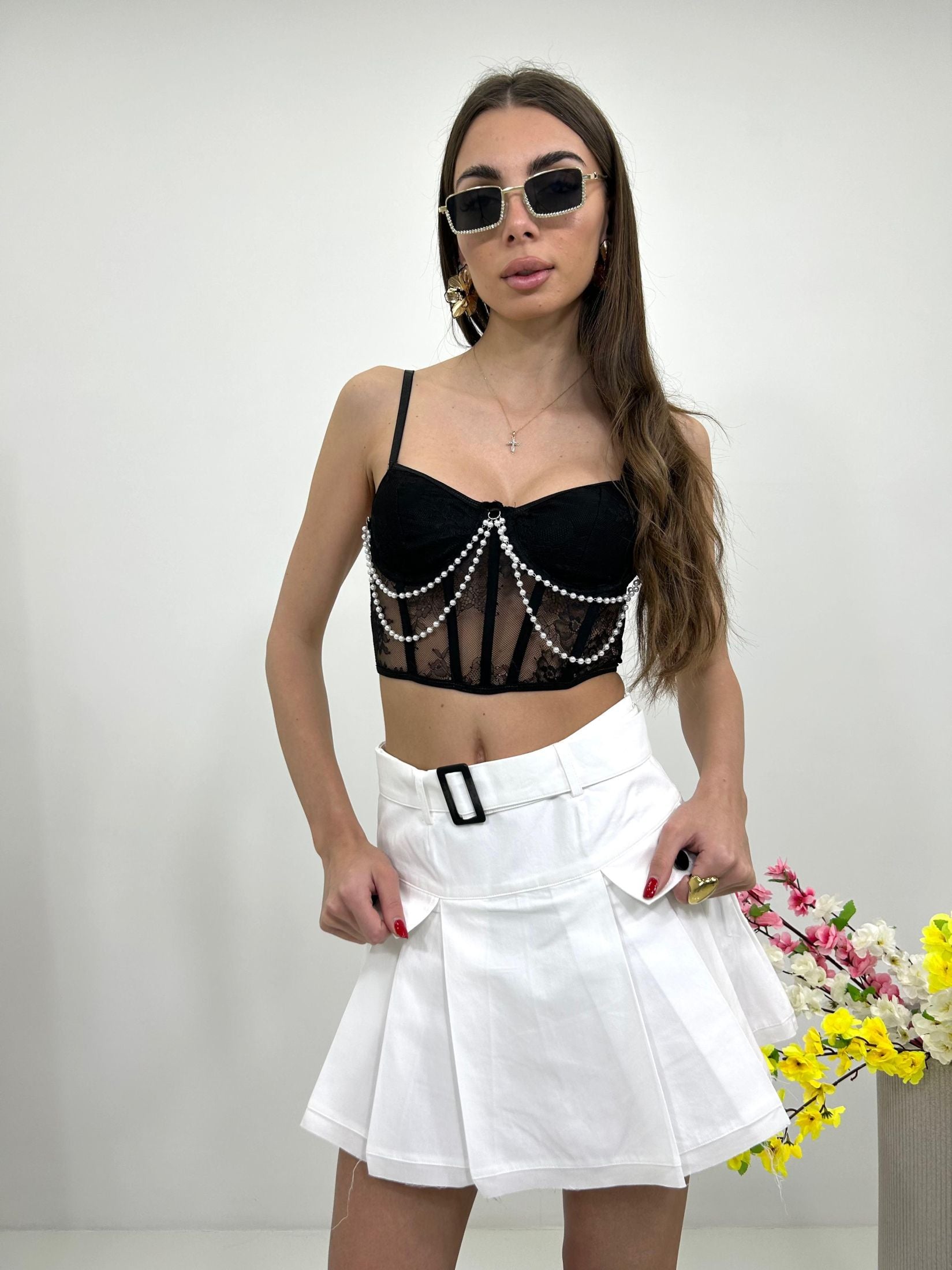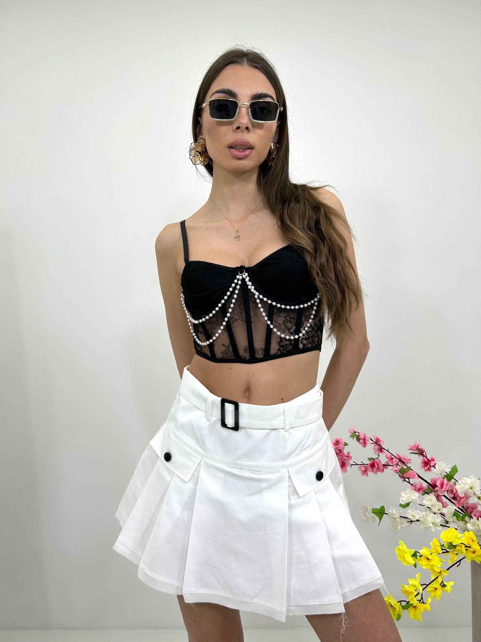 Short finta gonna lumina sgrangiata con balze cinturino e chiusura lampo laterale