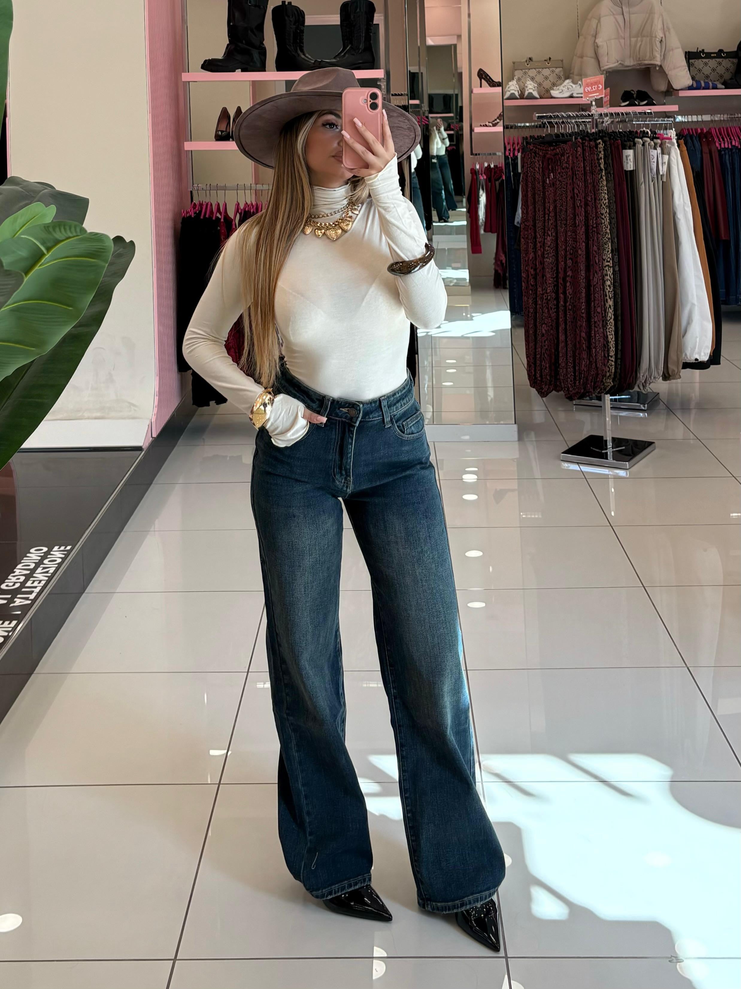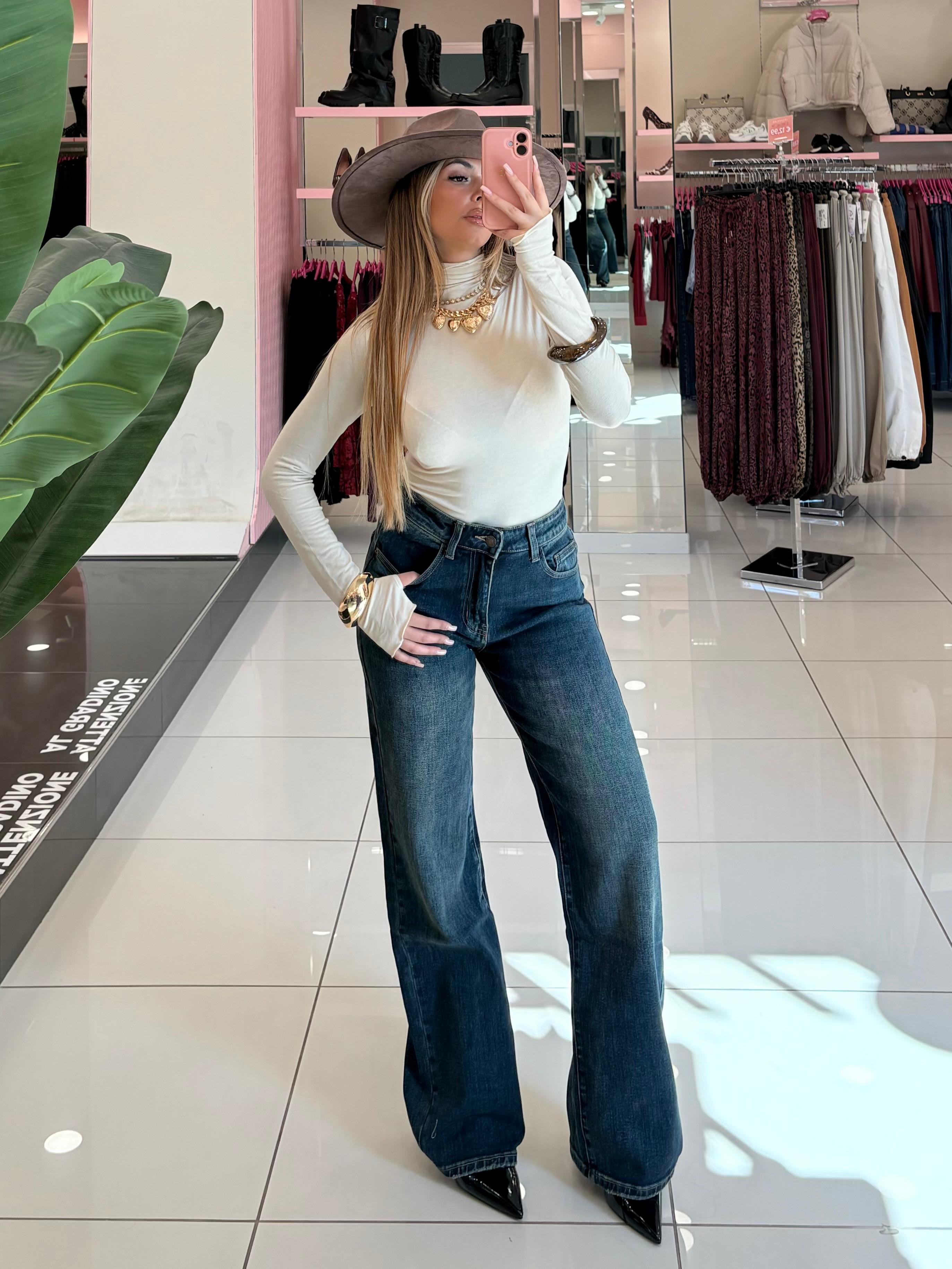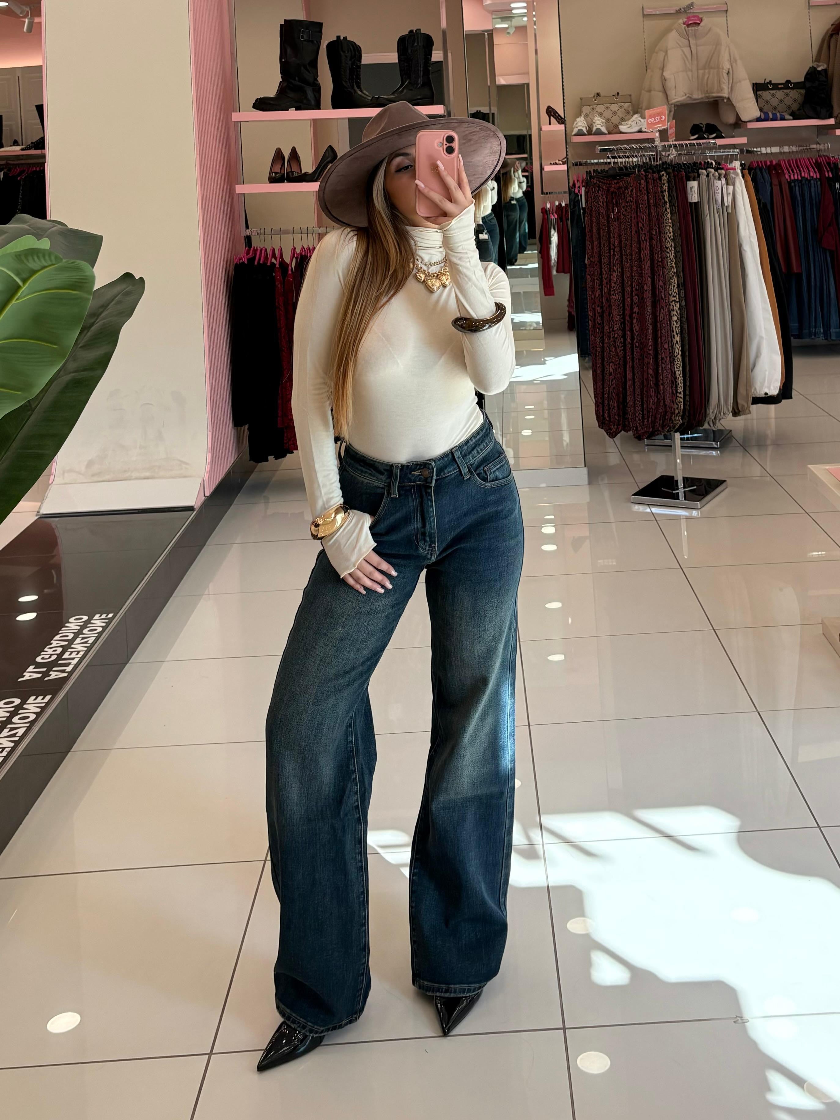 Jeans vita alta lavaggio vintage, wide lag