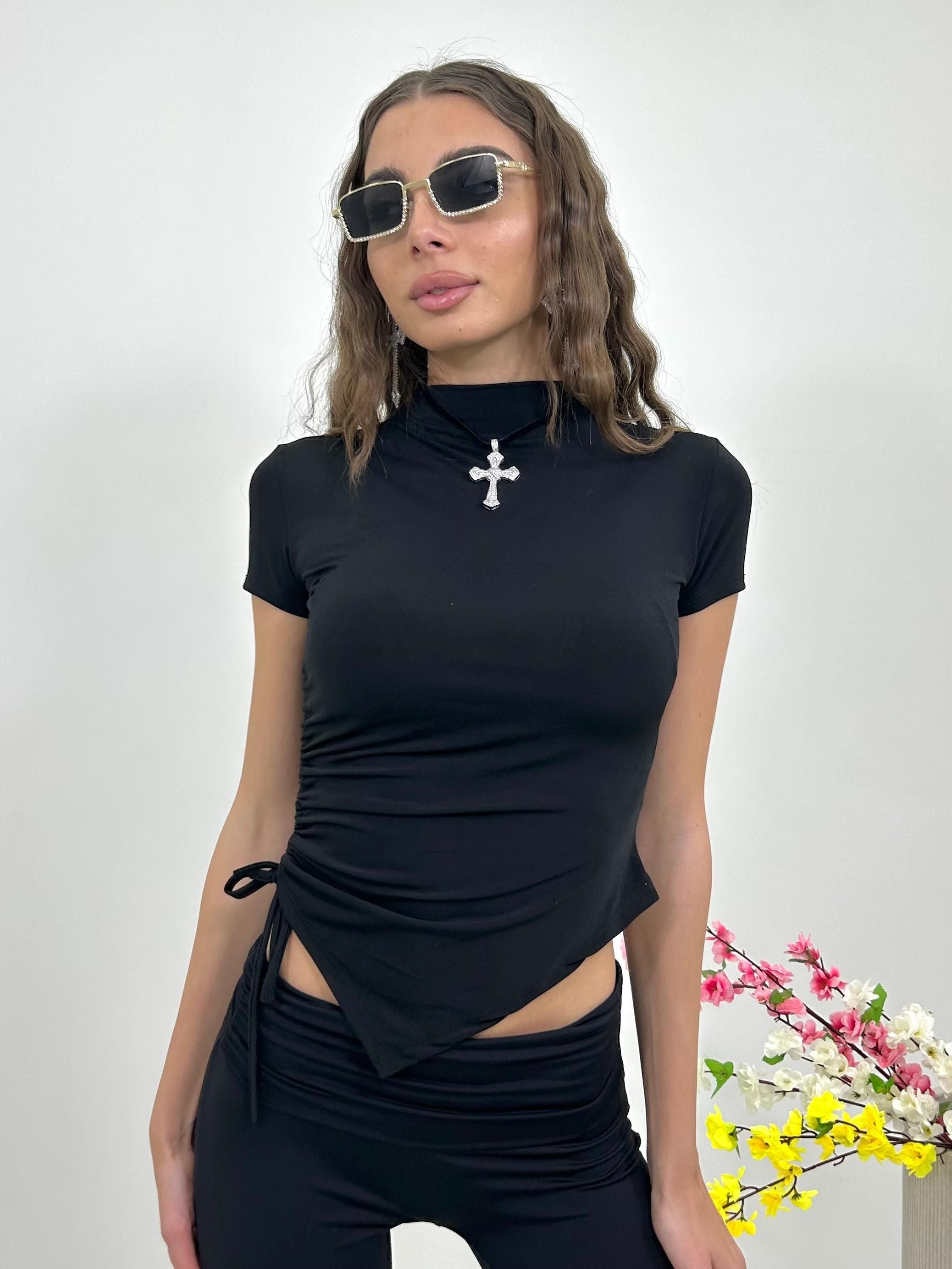 T-shirt crop leggera con drappeggio laterale