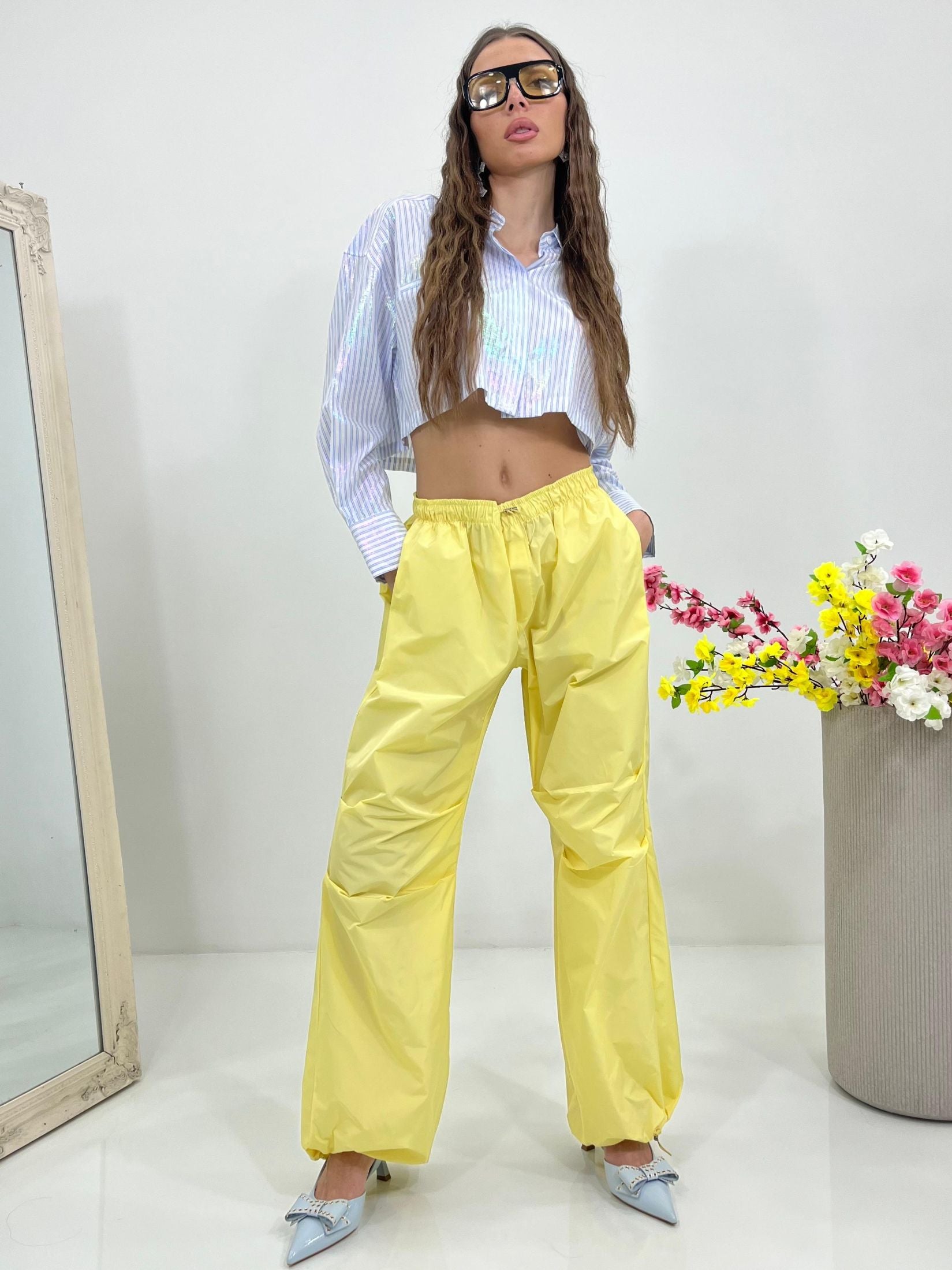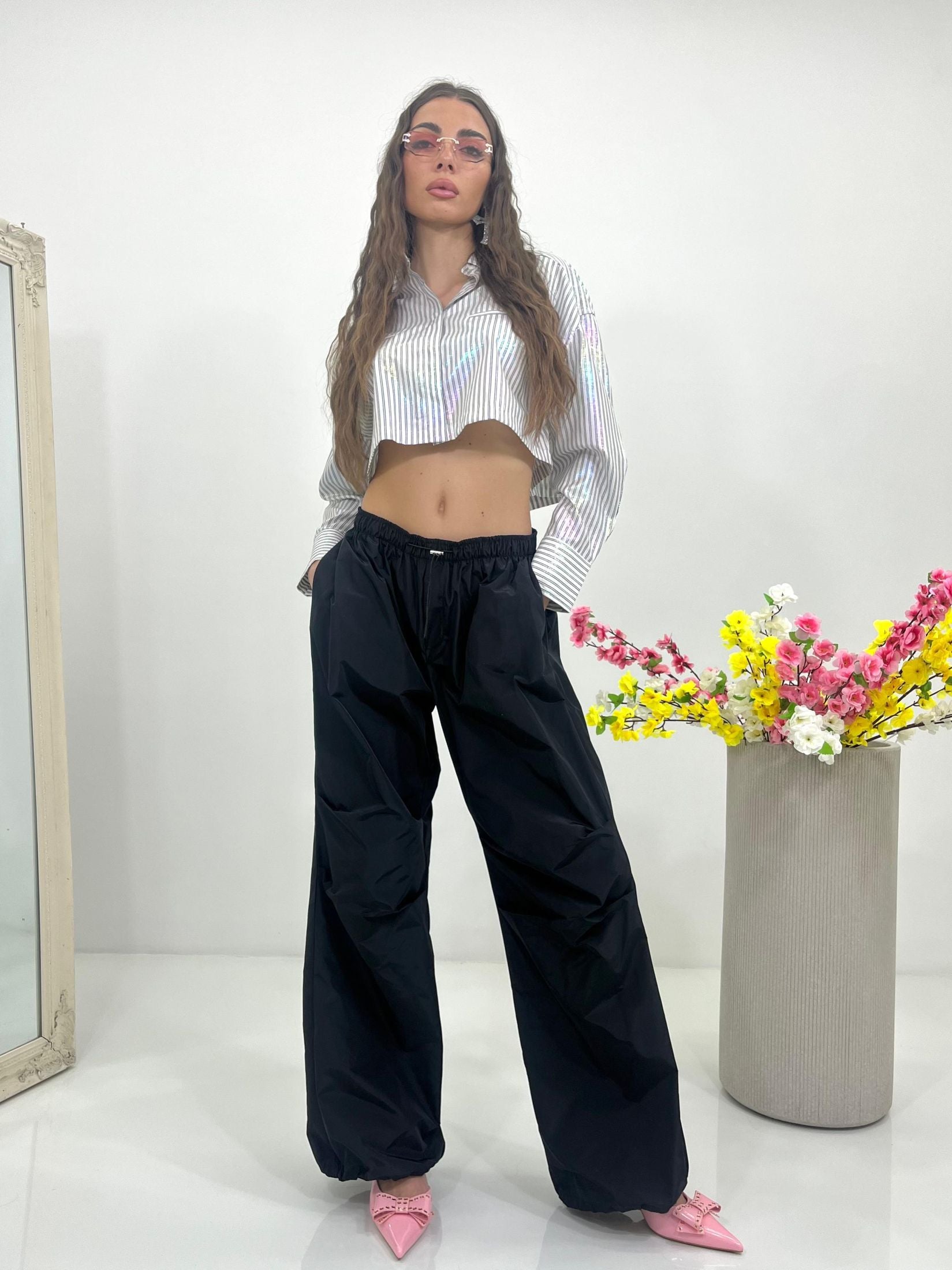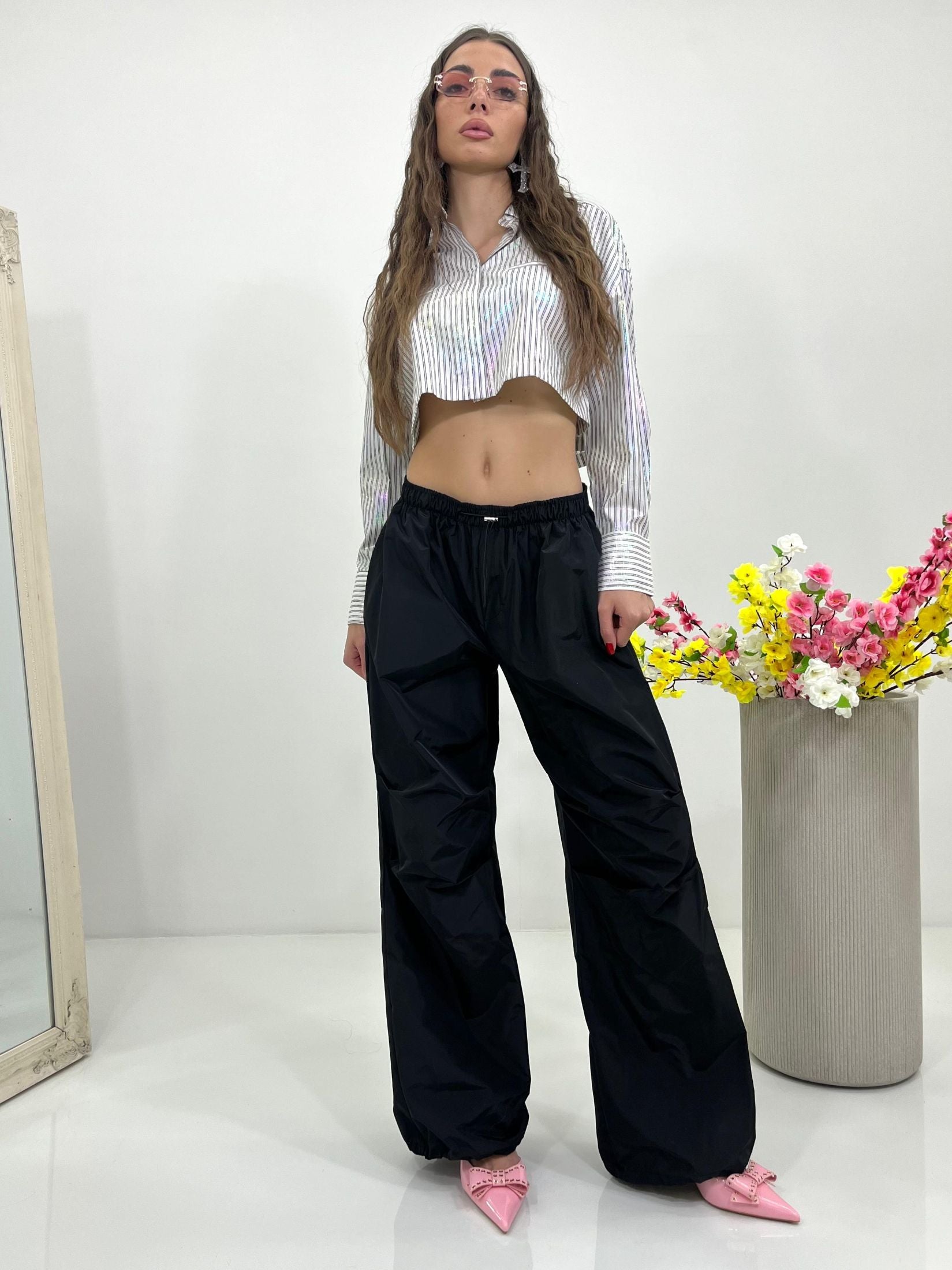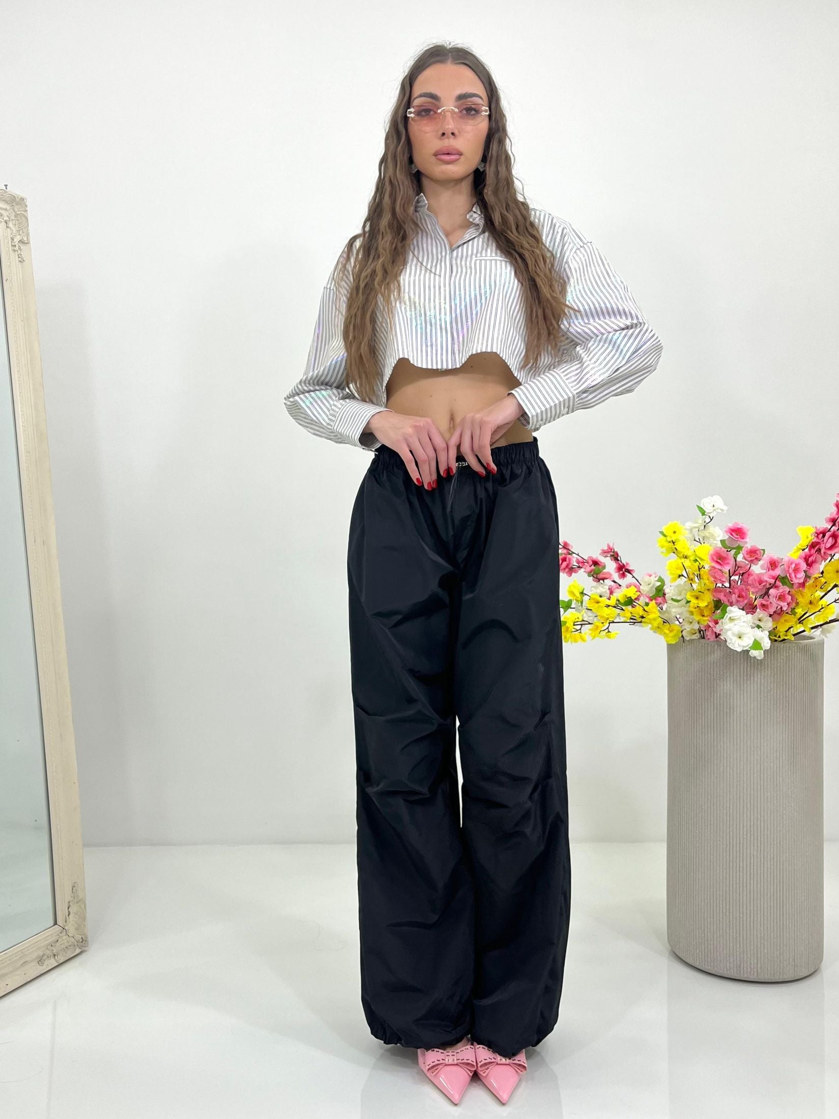 Pantacargo lumina con elastico regolabile in vita e alle caviglie e tasche