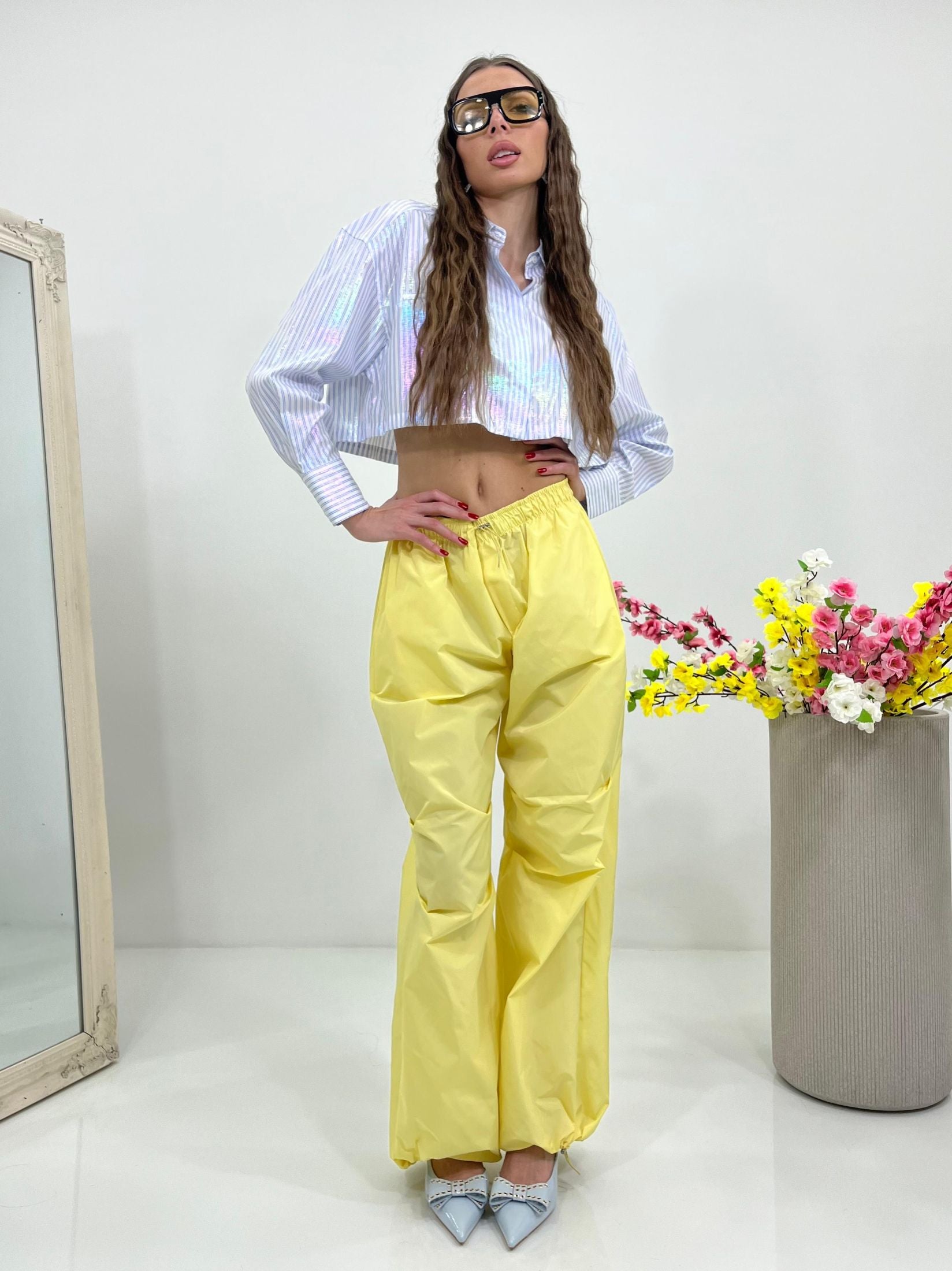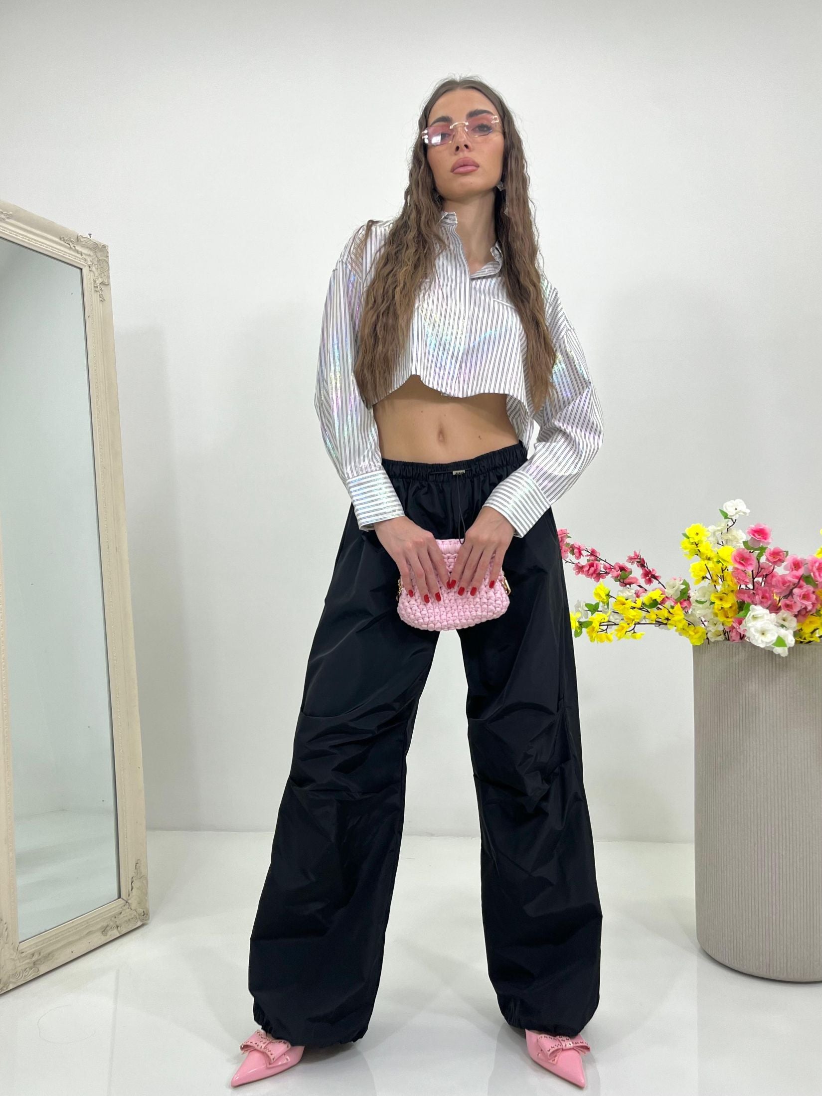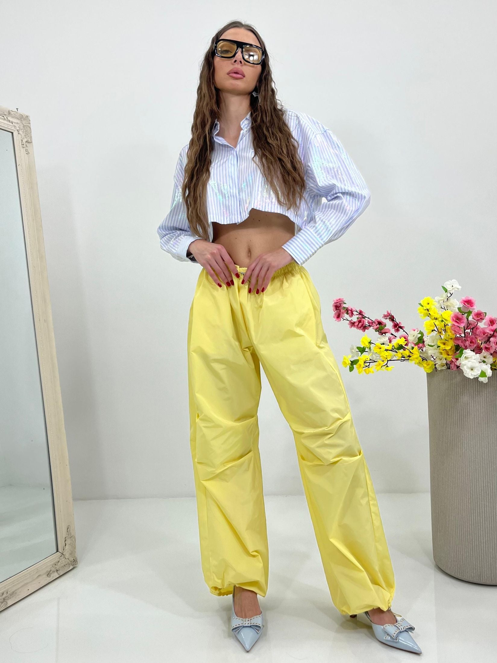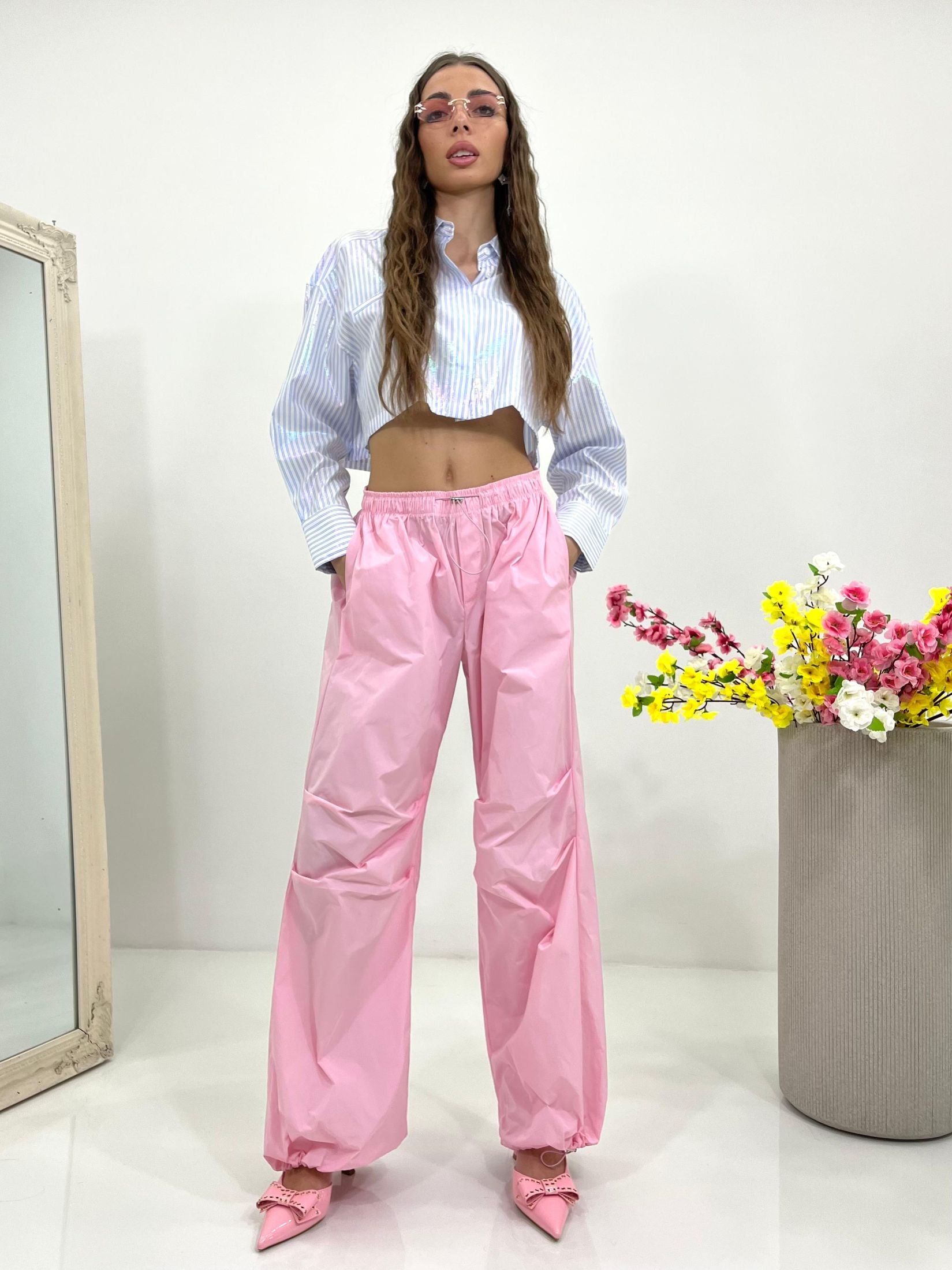 Pantacargo lumina con elastico regolabile in vita e alle caviglie e tasche