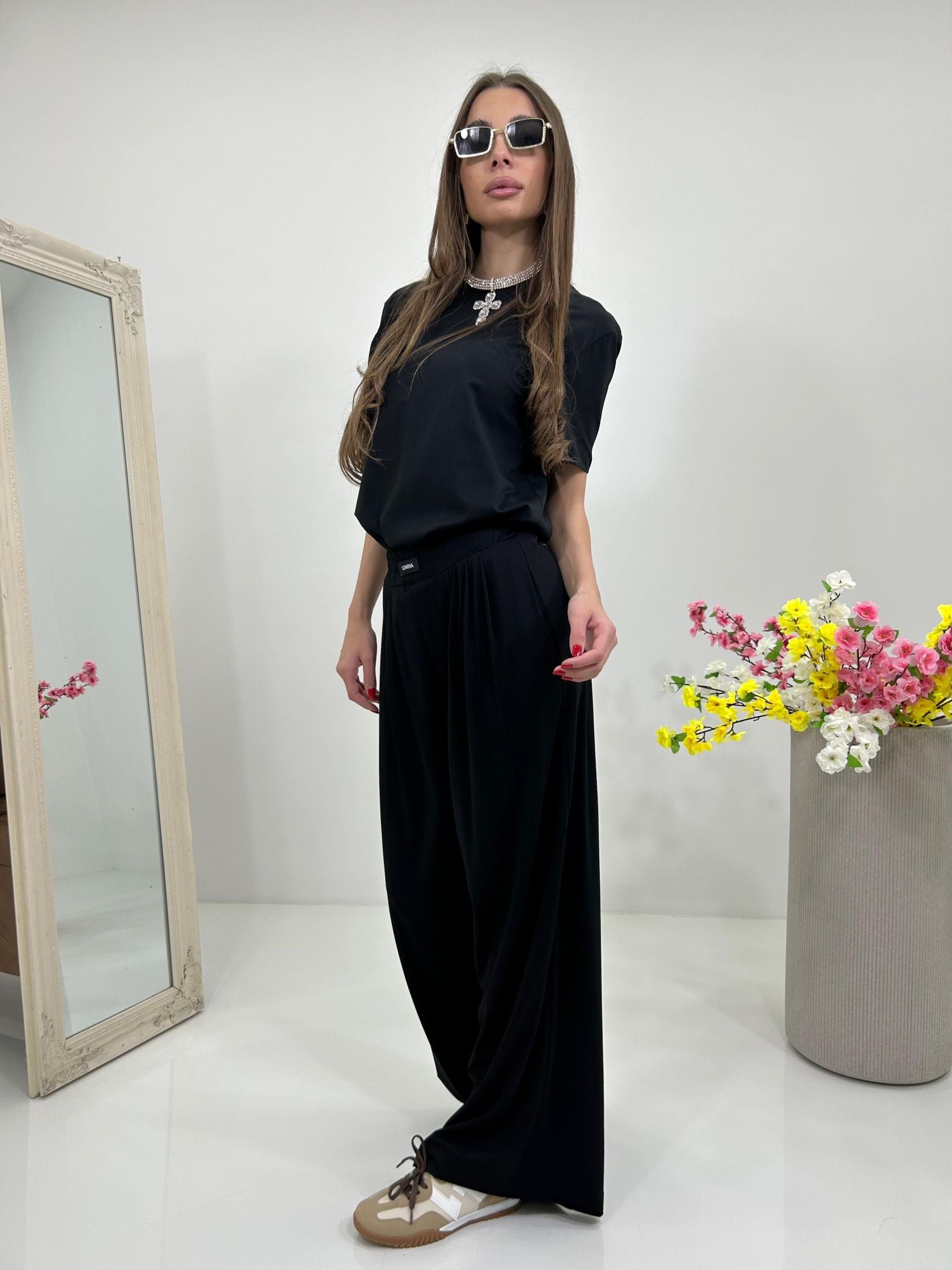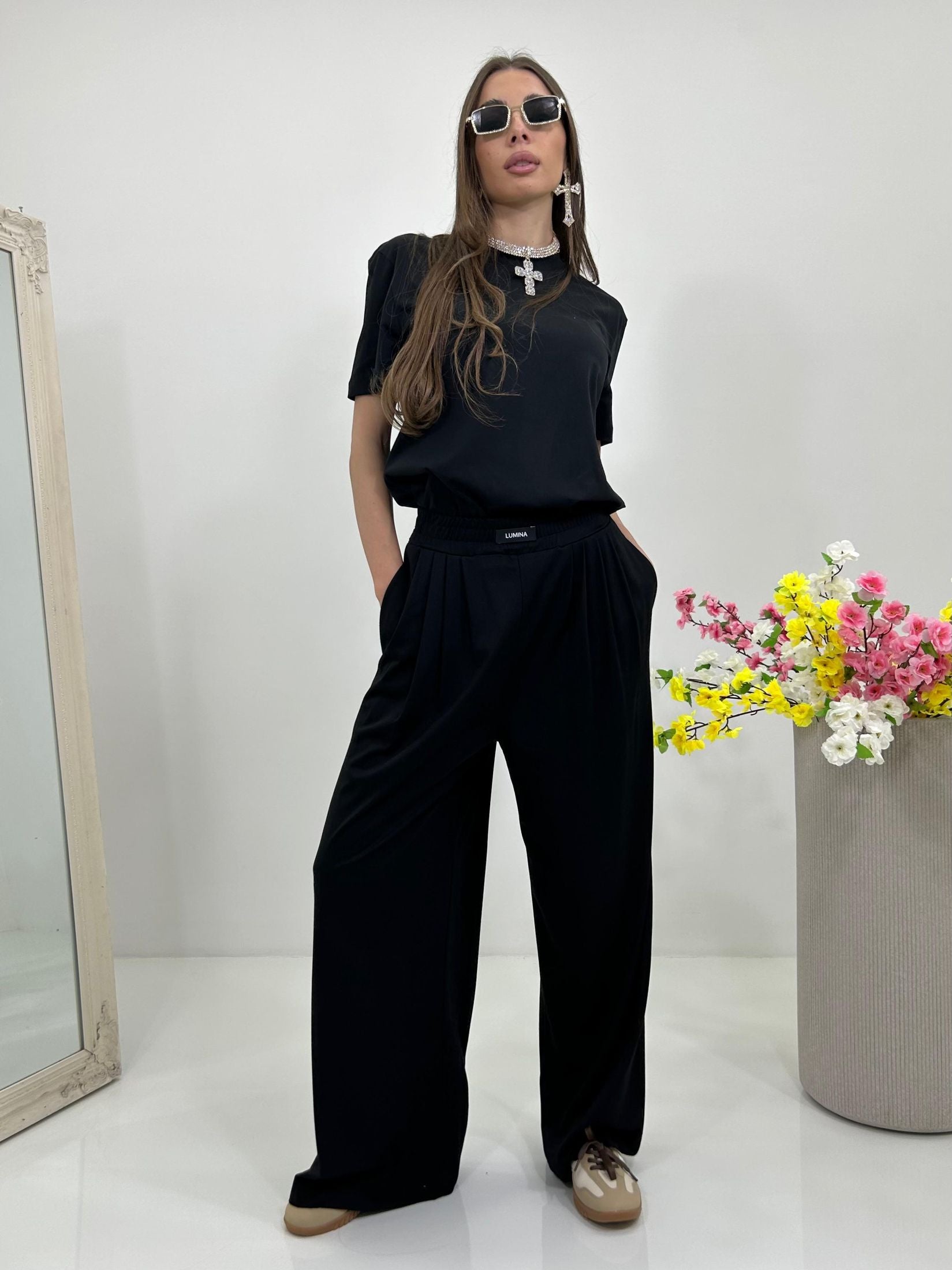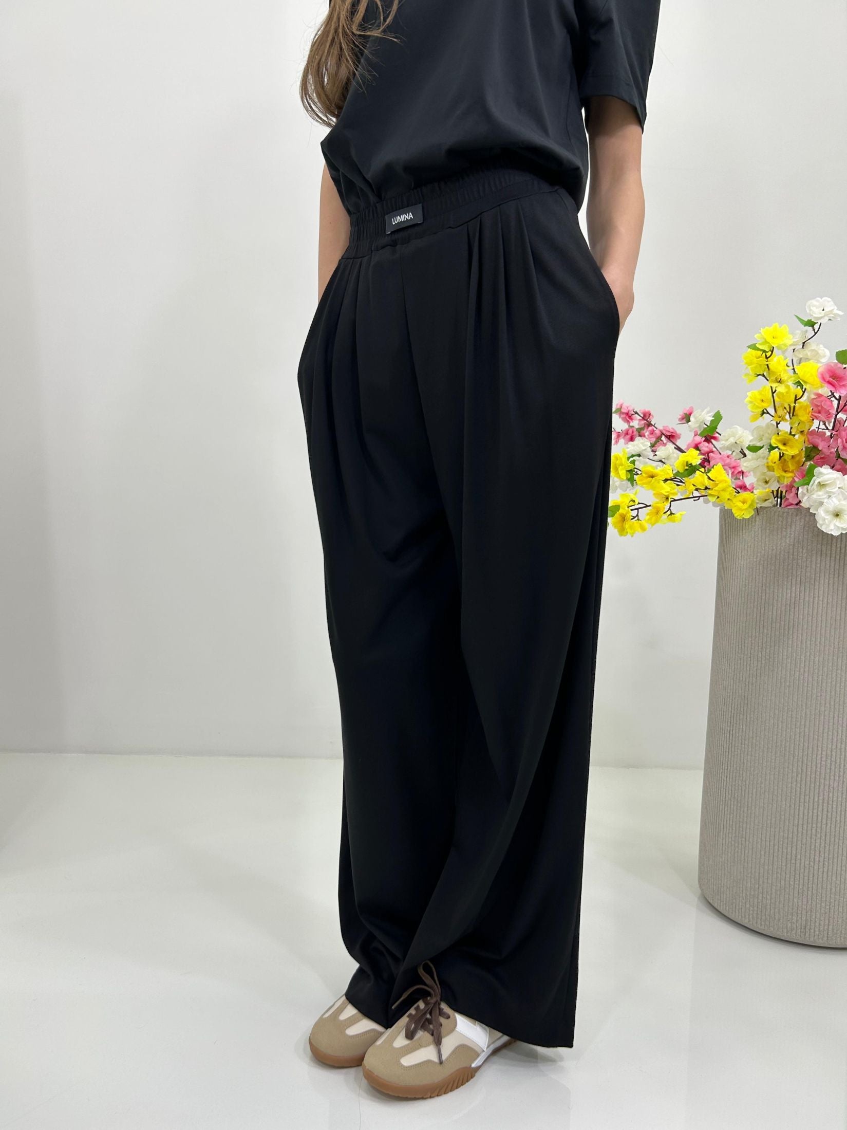 Pantalo sportivo palazzo lumina con elastico in vita e tasche