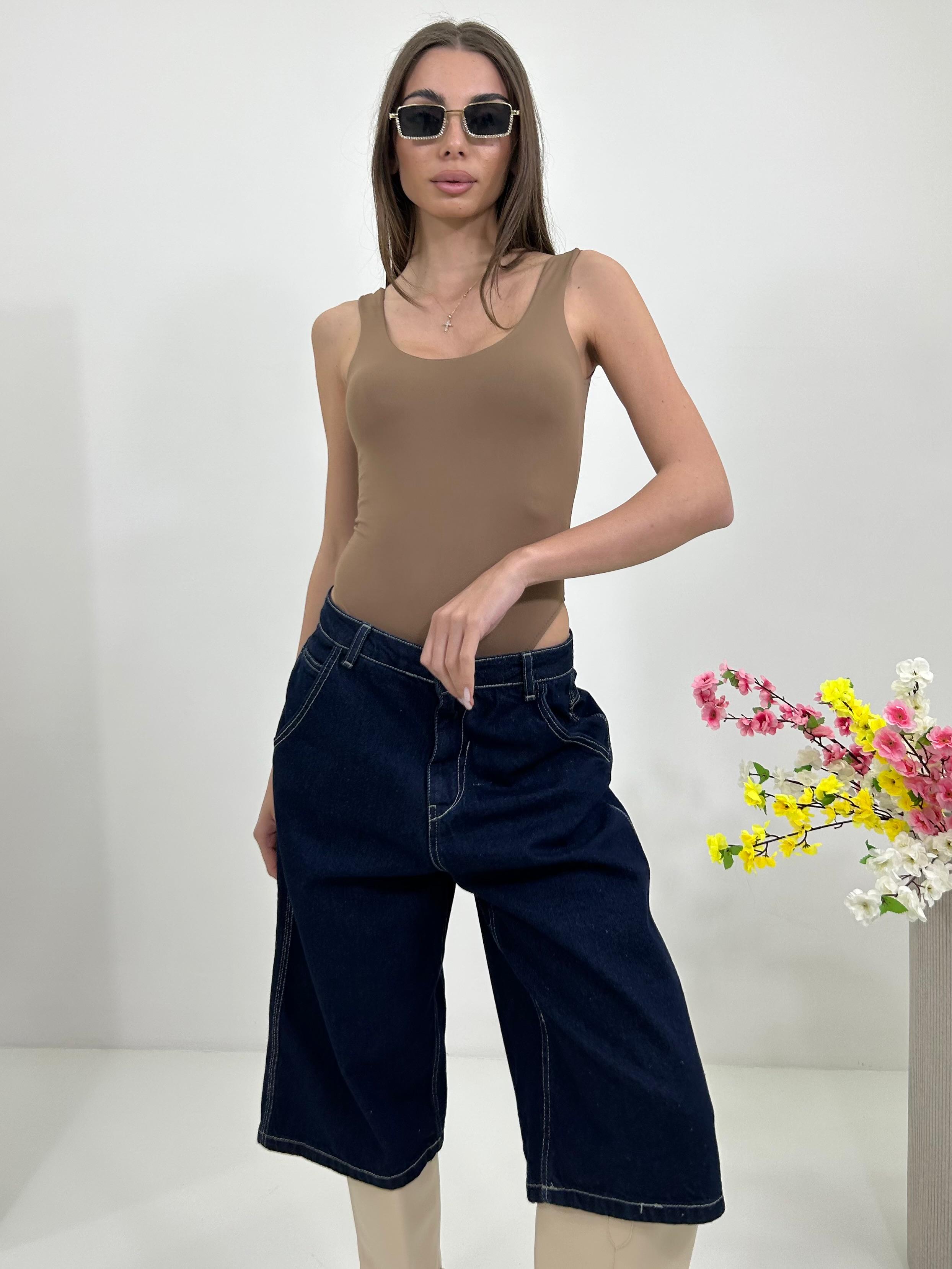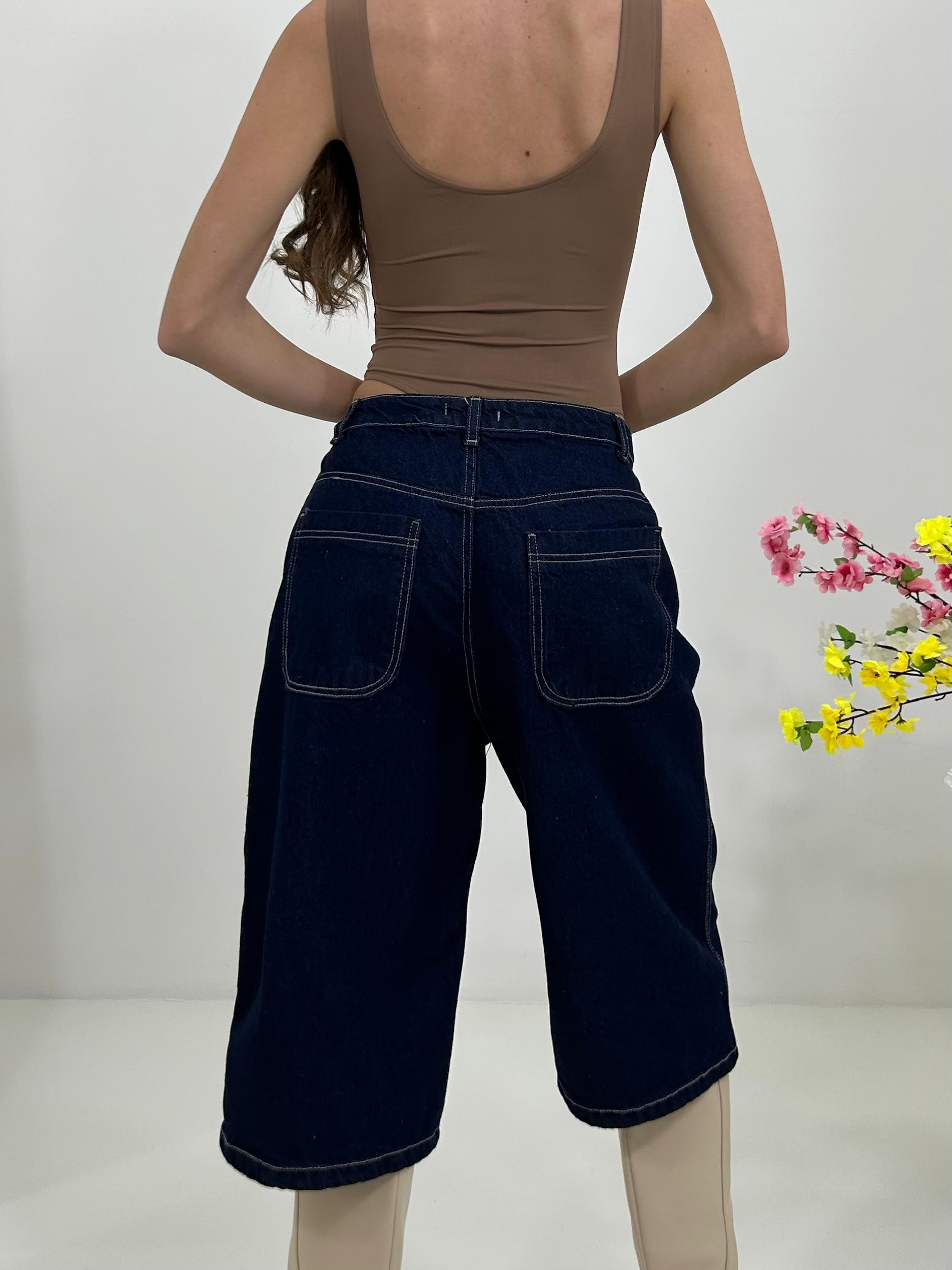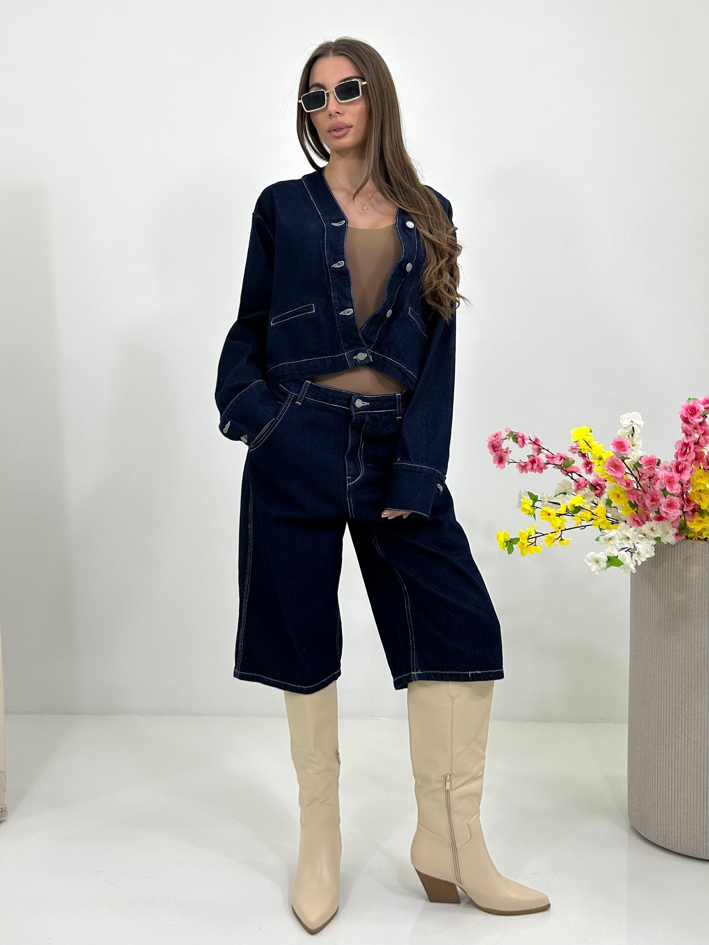 Completo denim compoSto da: giacca scollo v e bottoni e bermuda con tasche