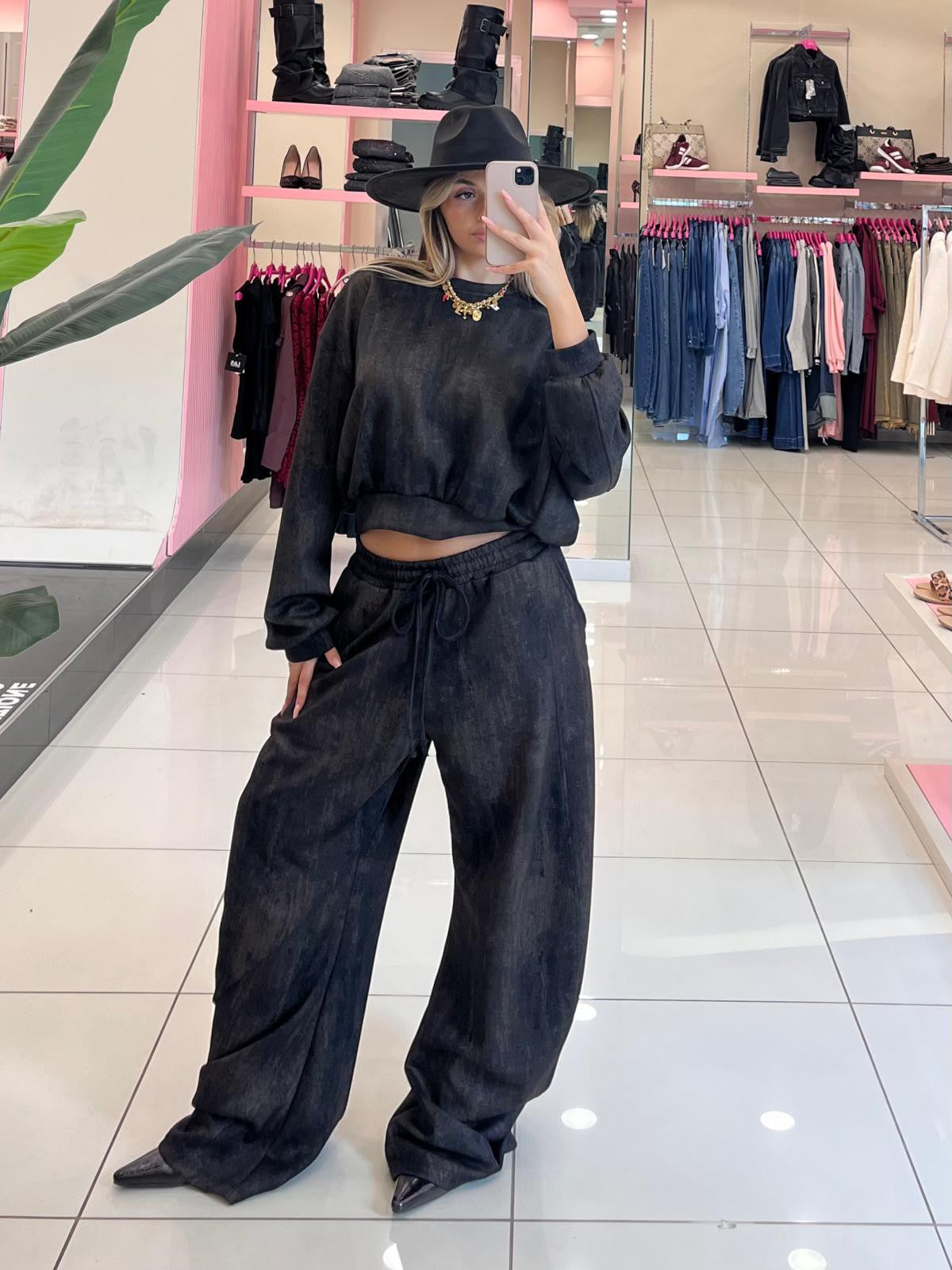 Completo tuta lumina a fantasia composto da: felpa girocollo e pantalone ballon con elastico in vita regolabile e tasche