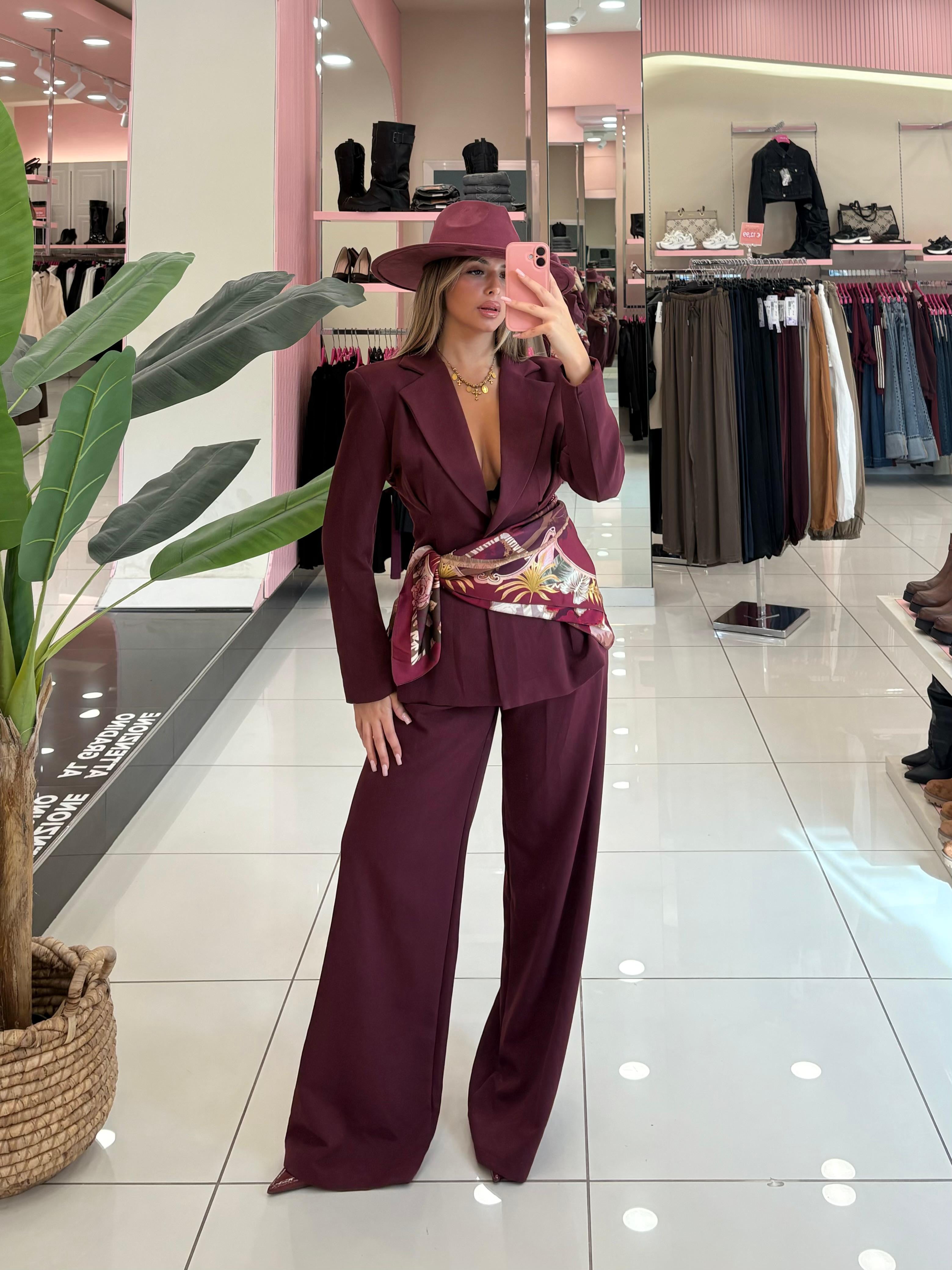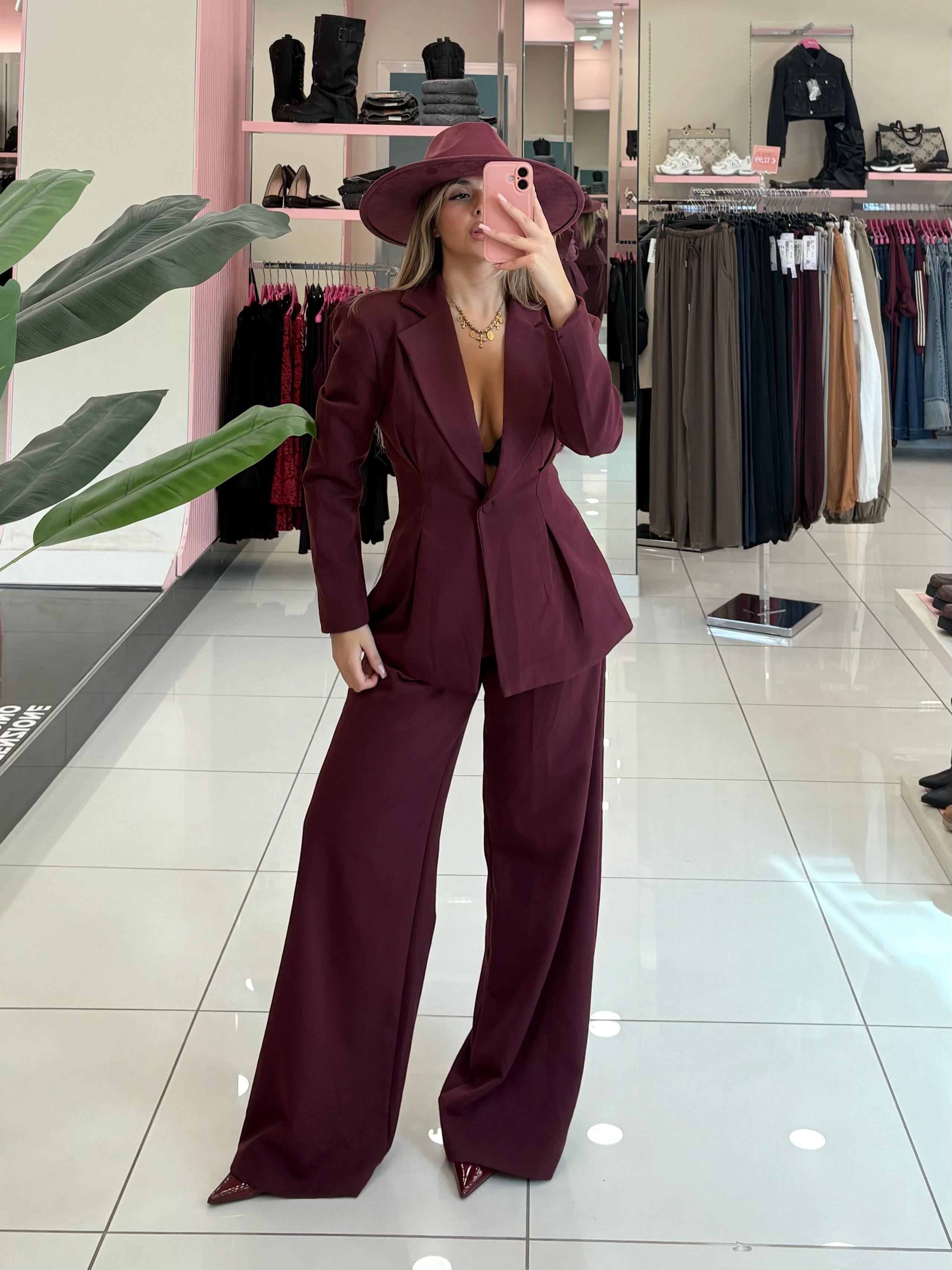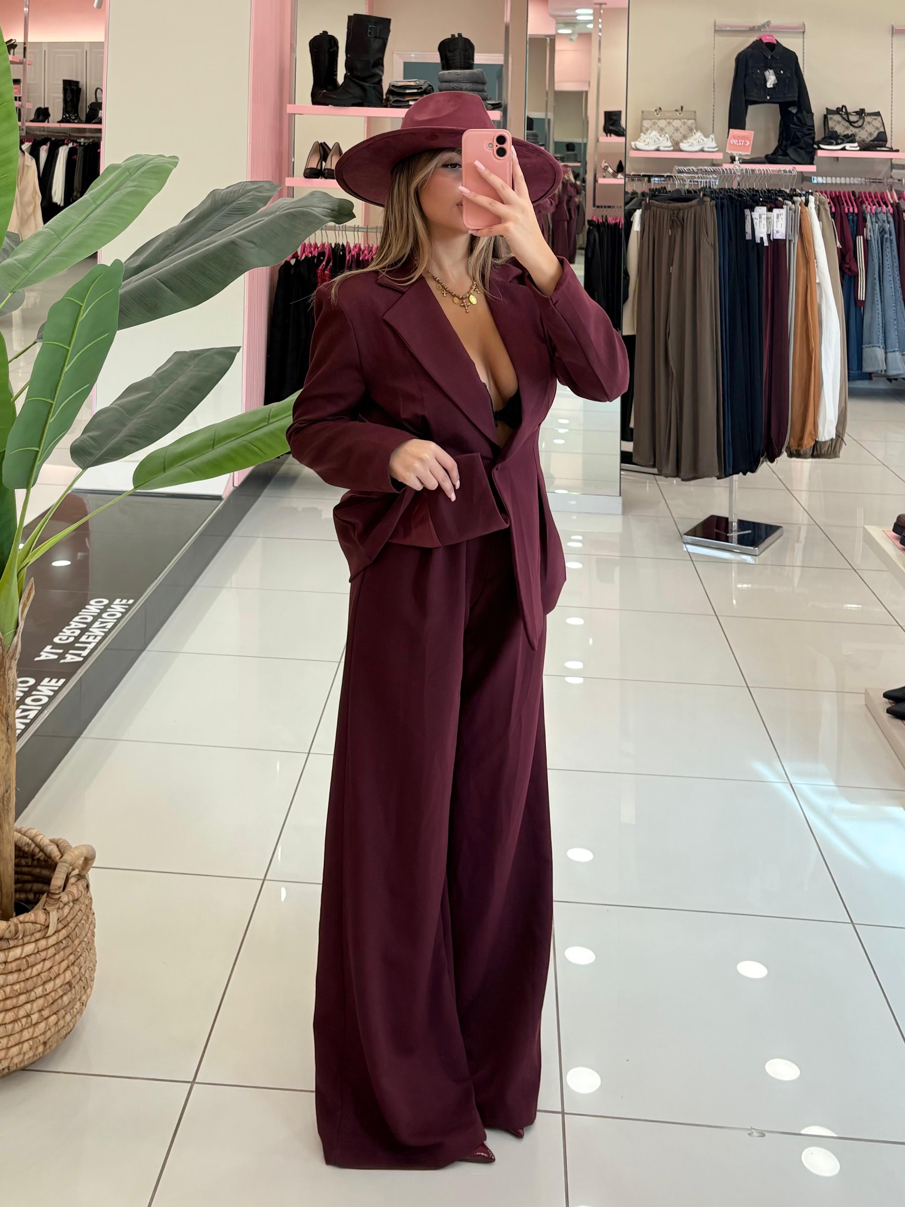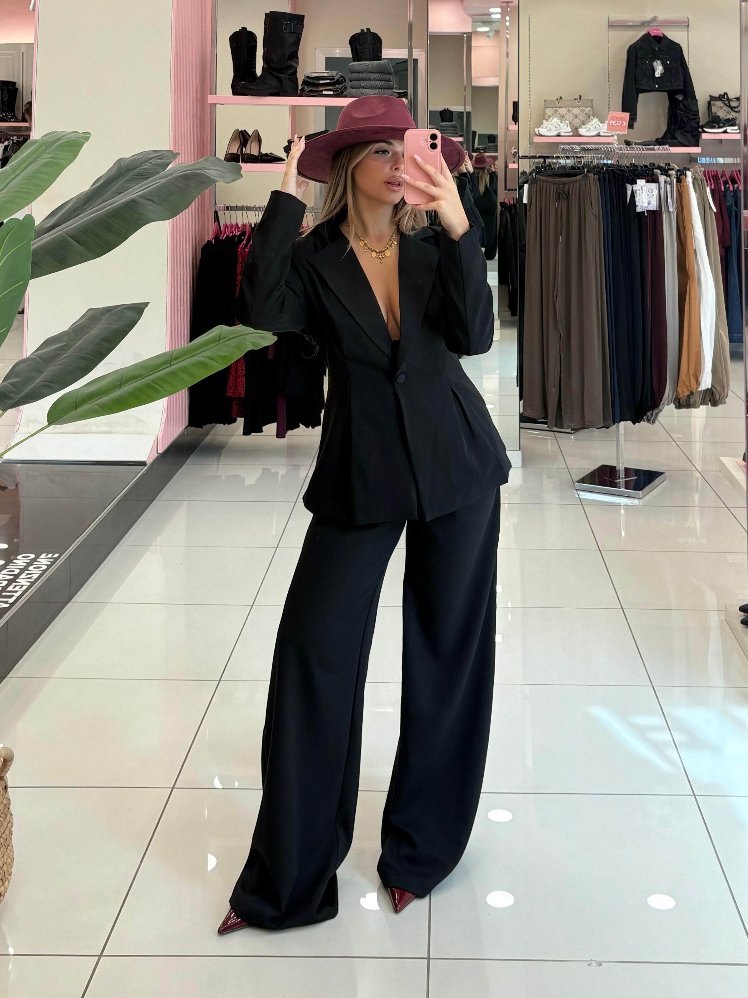 1 recensioneCompleto composto da giacca avvitata un bottone con pences e pantalone palazzo con bottone ed elastico