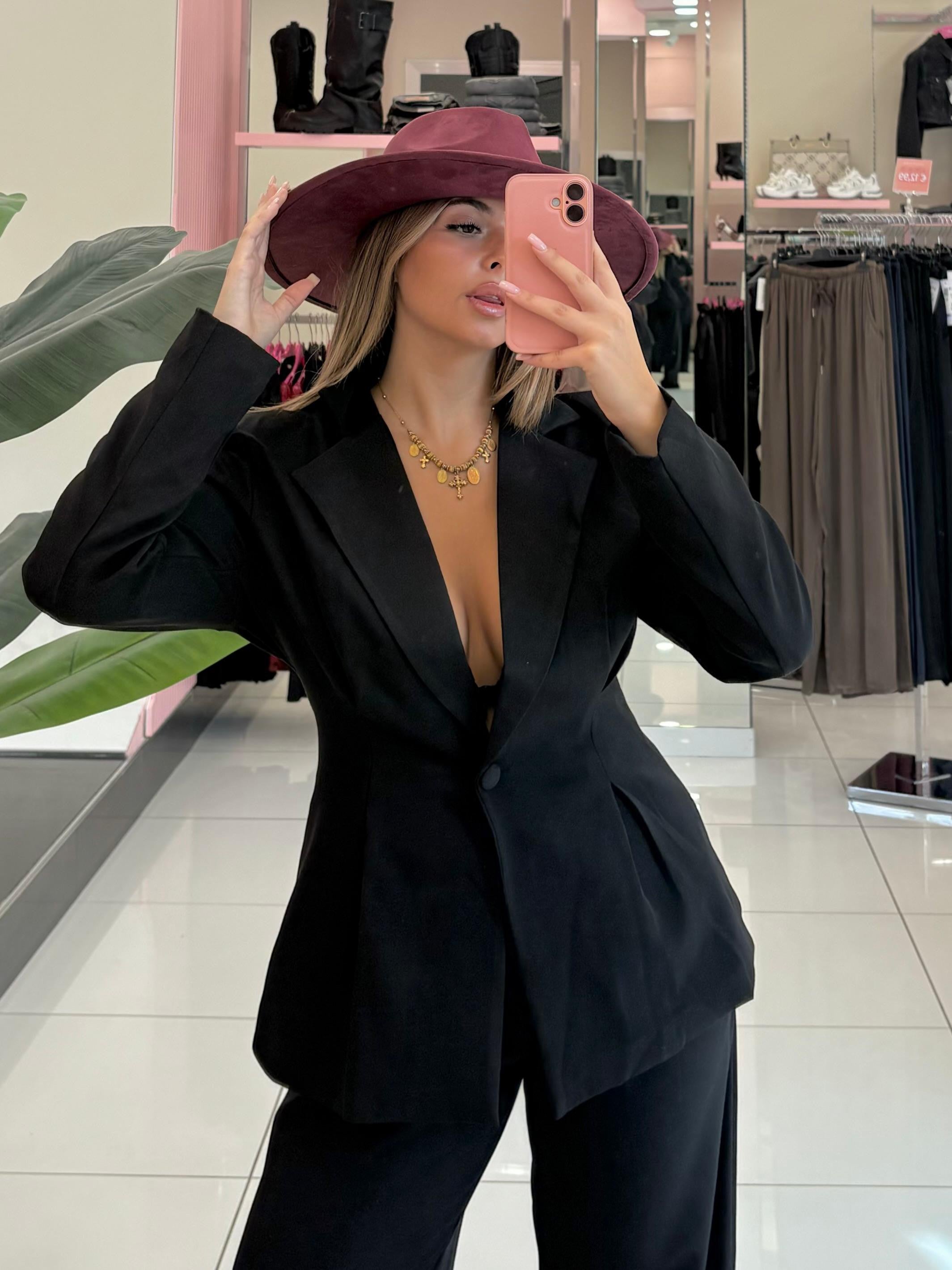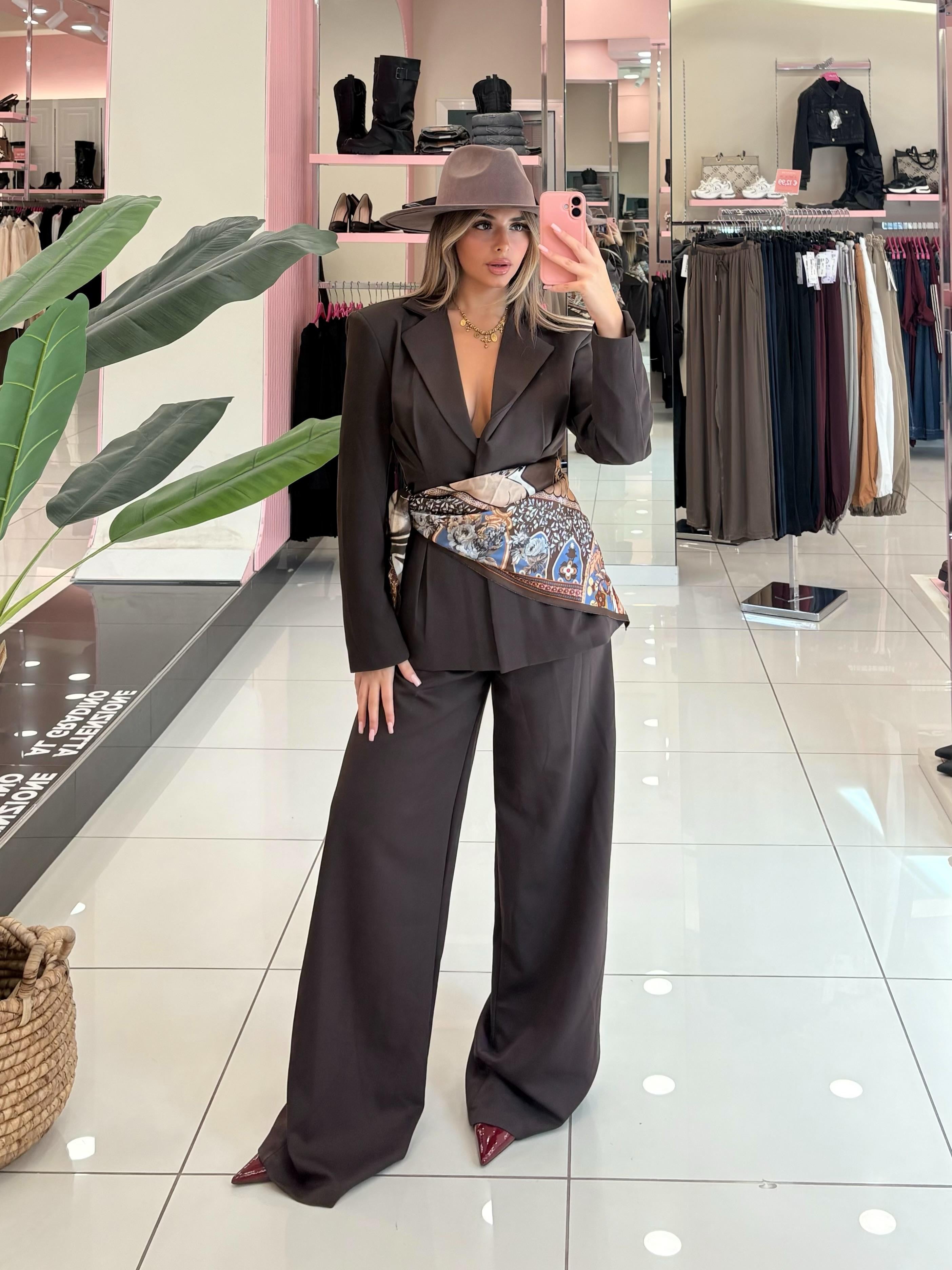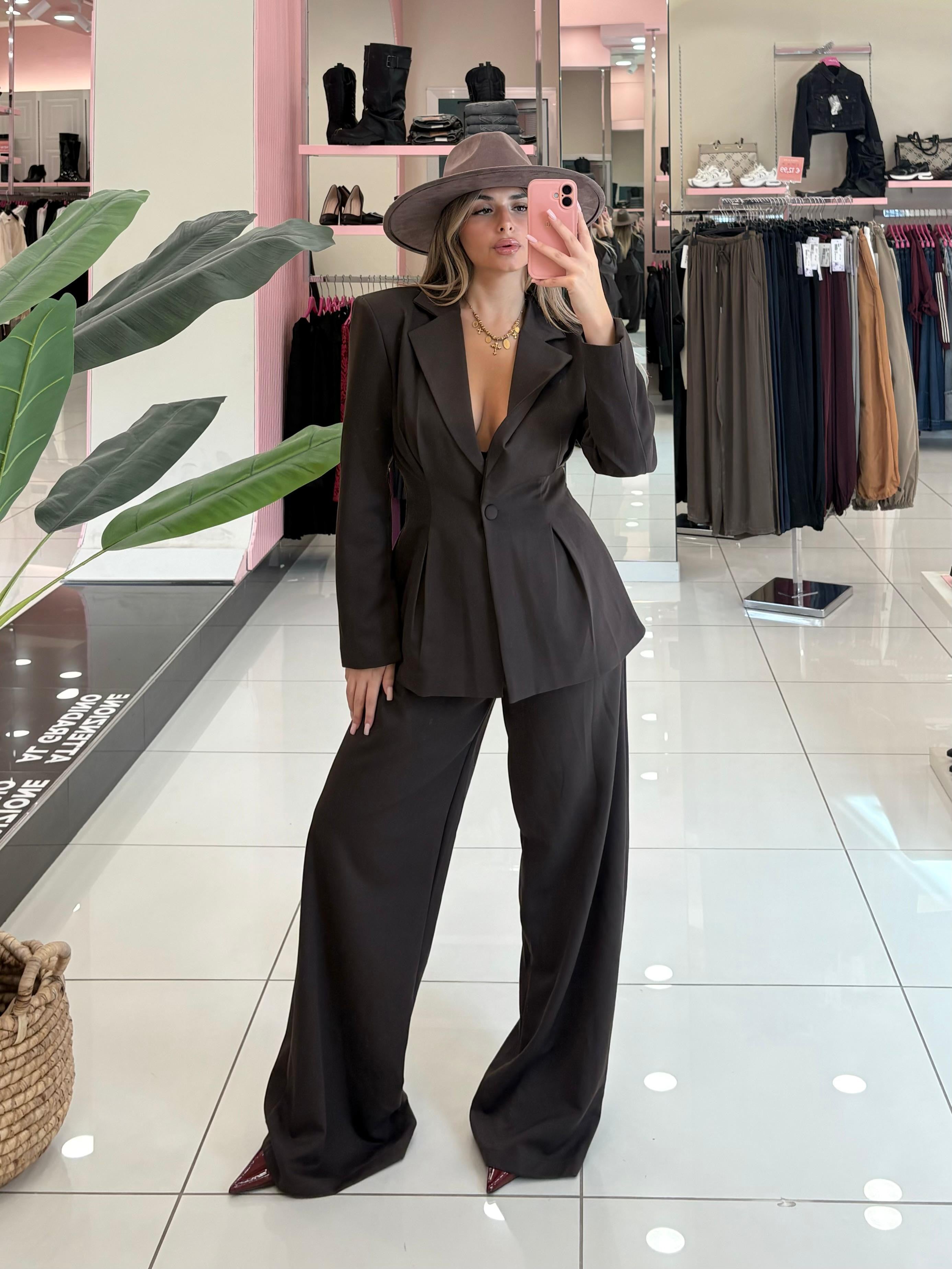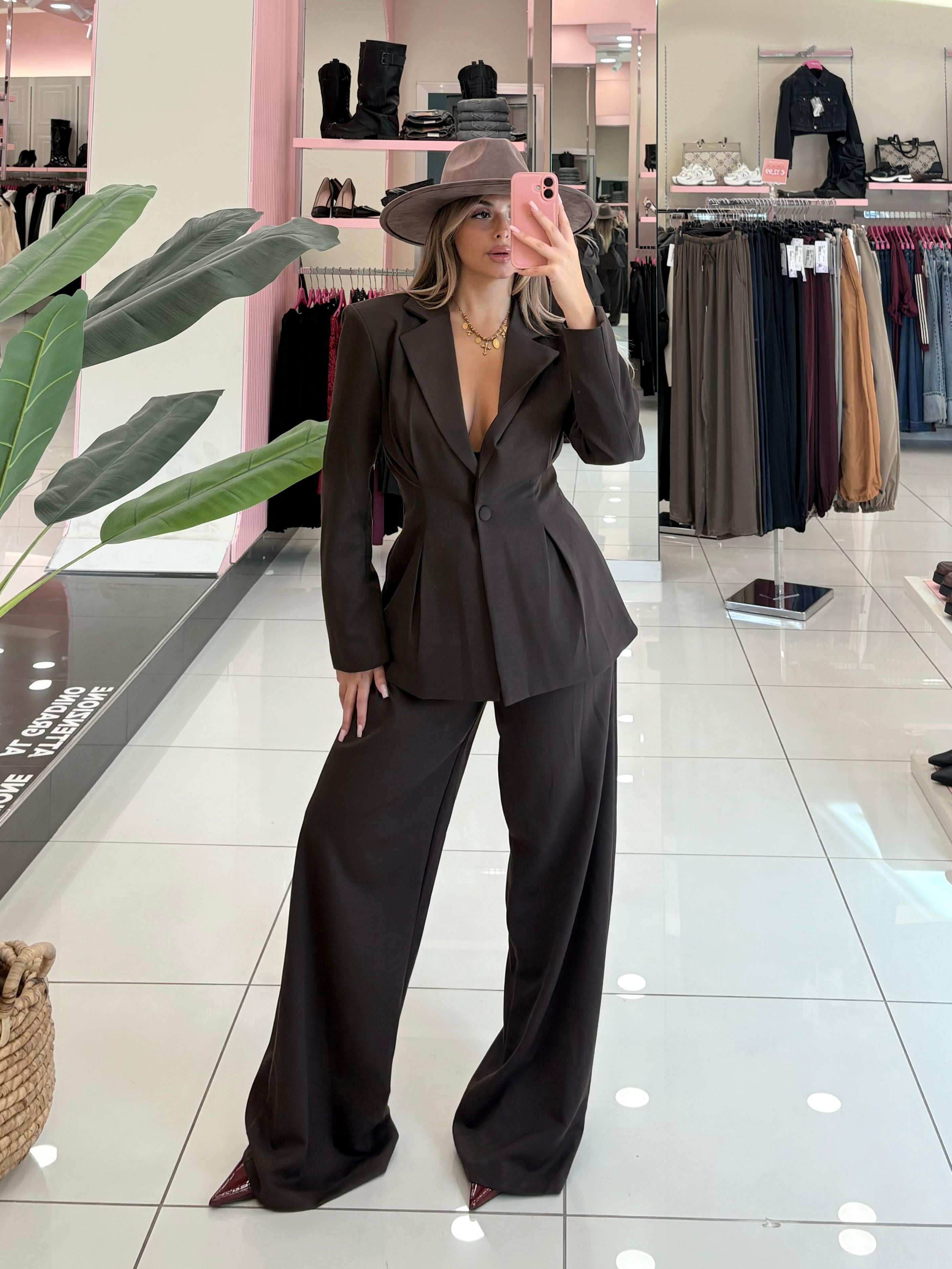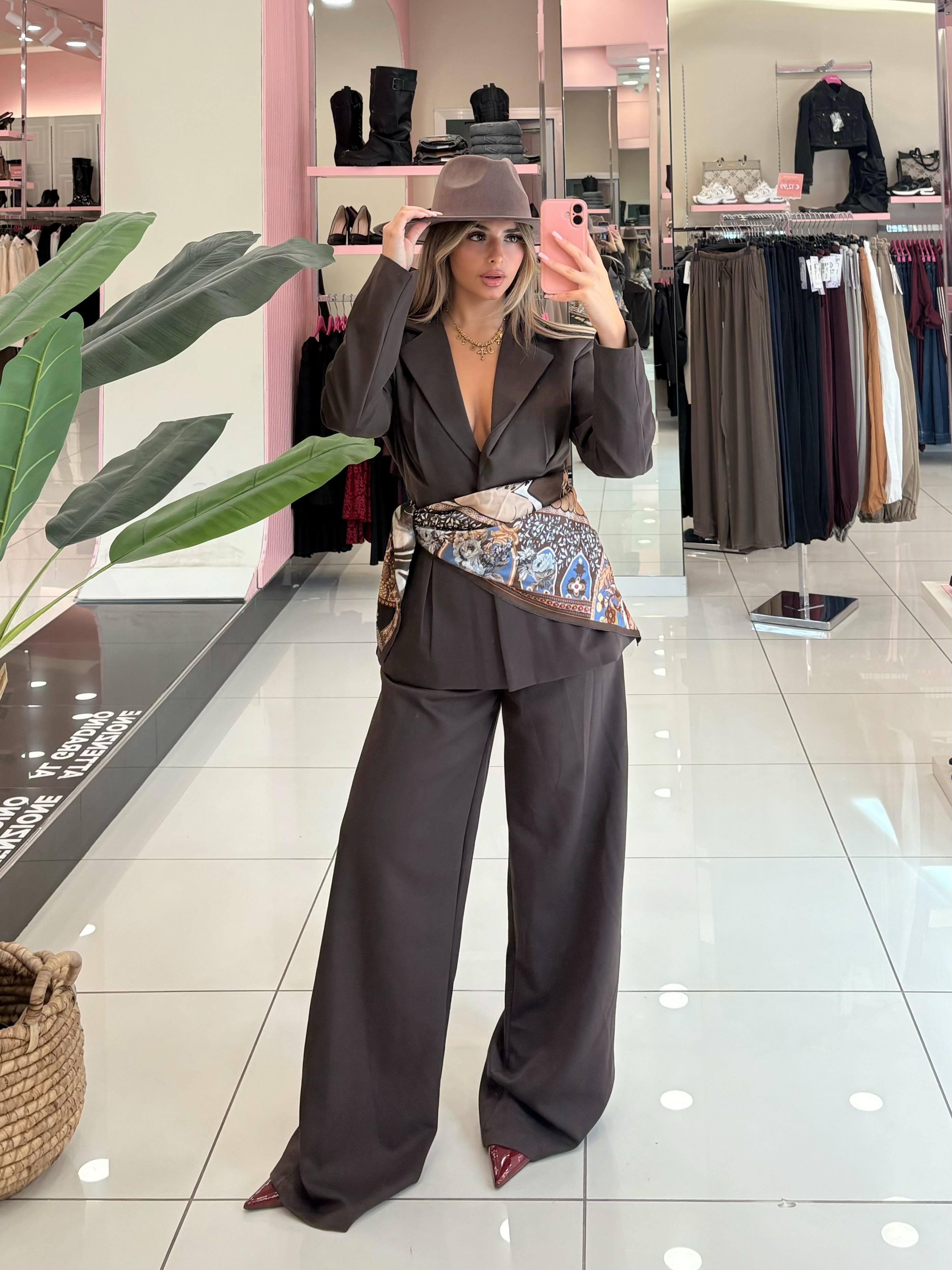 1 recensioneCompleto composto da giacca avvitata un bottone con pences e pantalone palazzo con bottone ed elastico