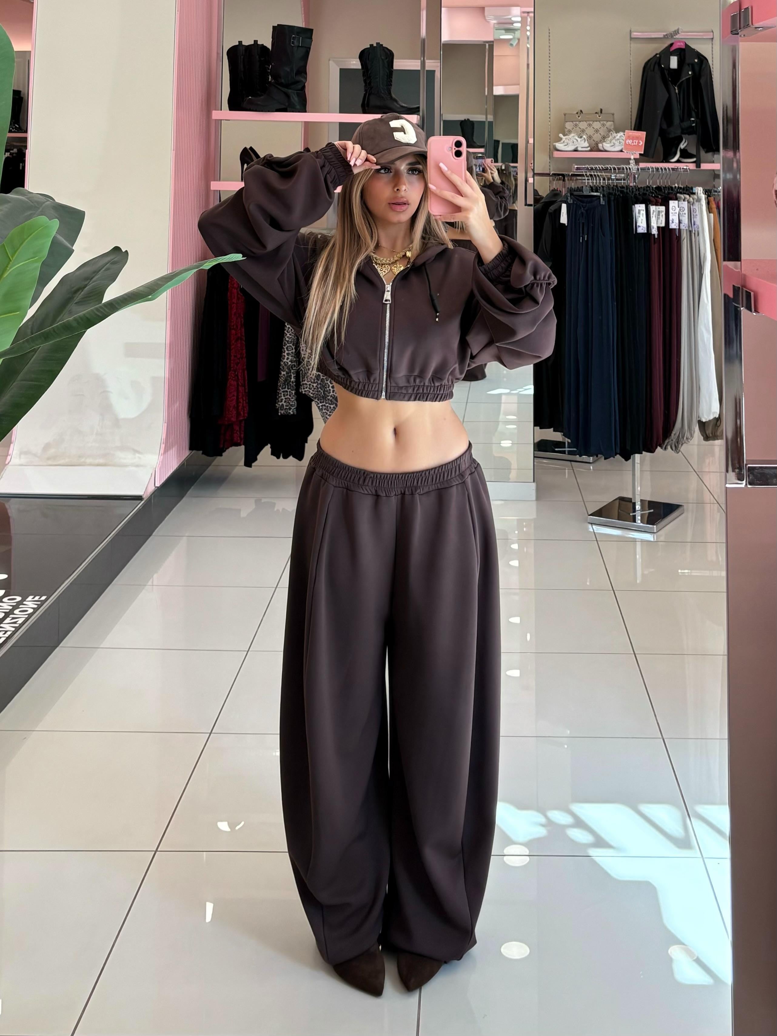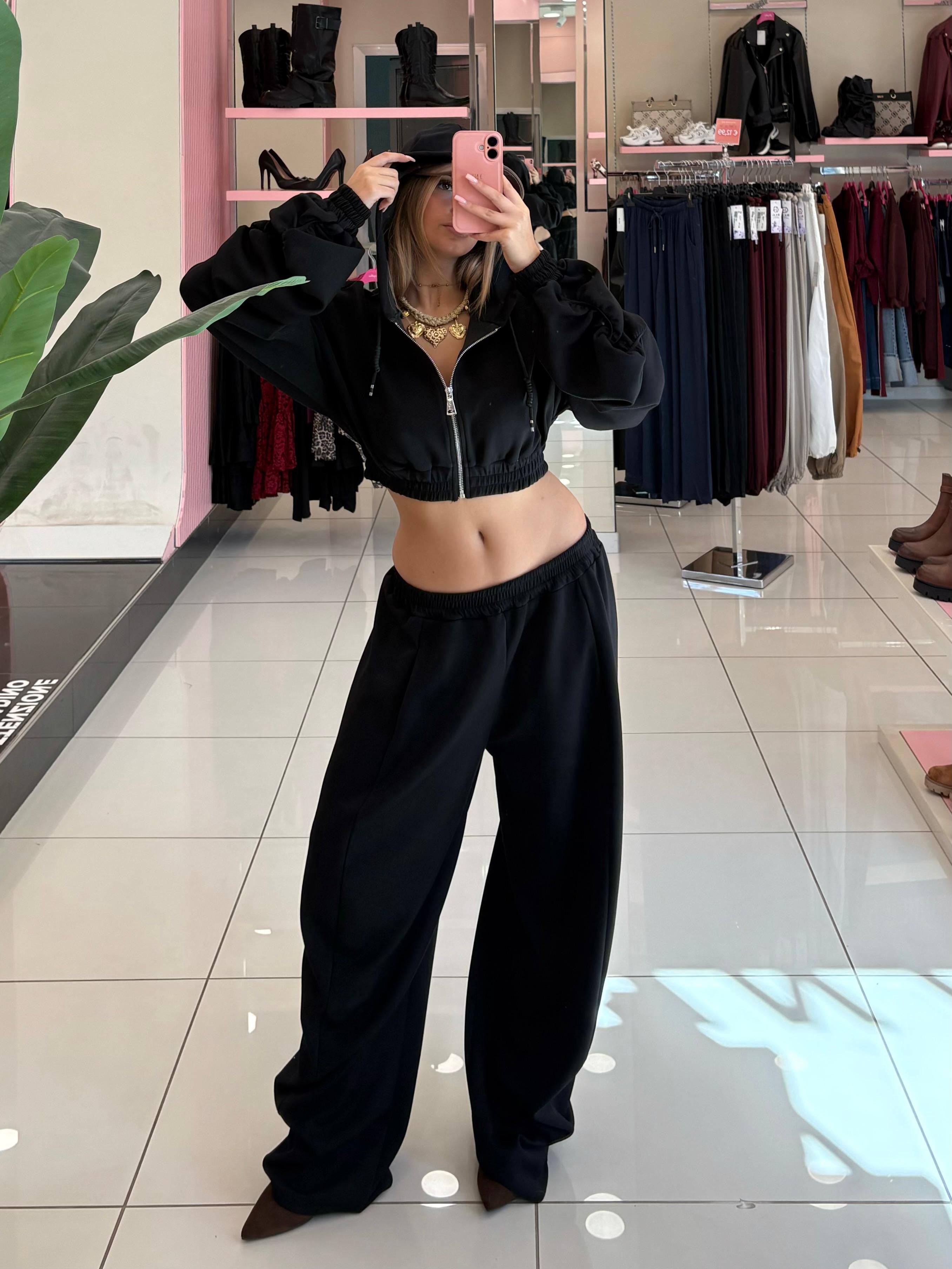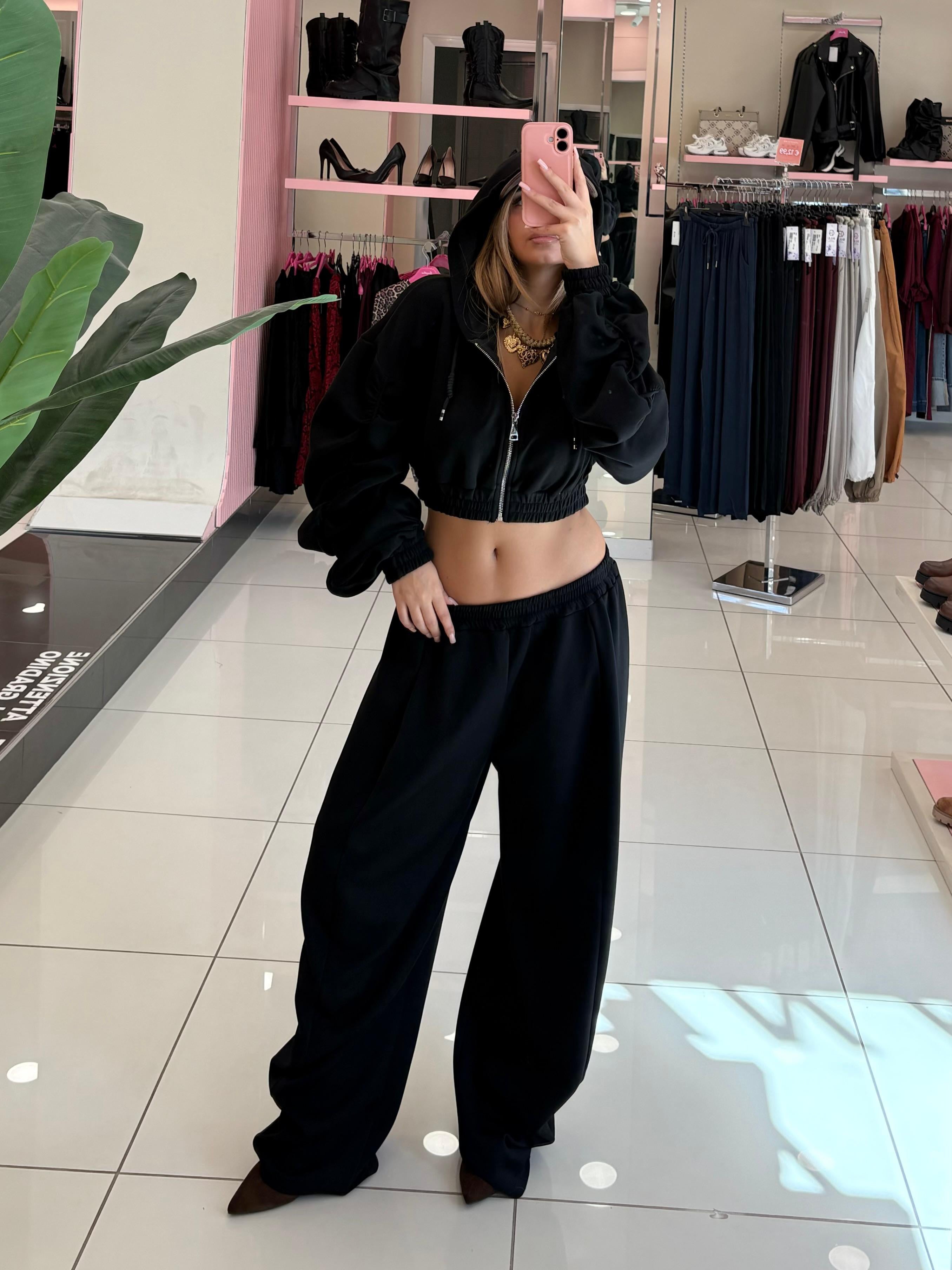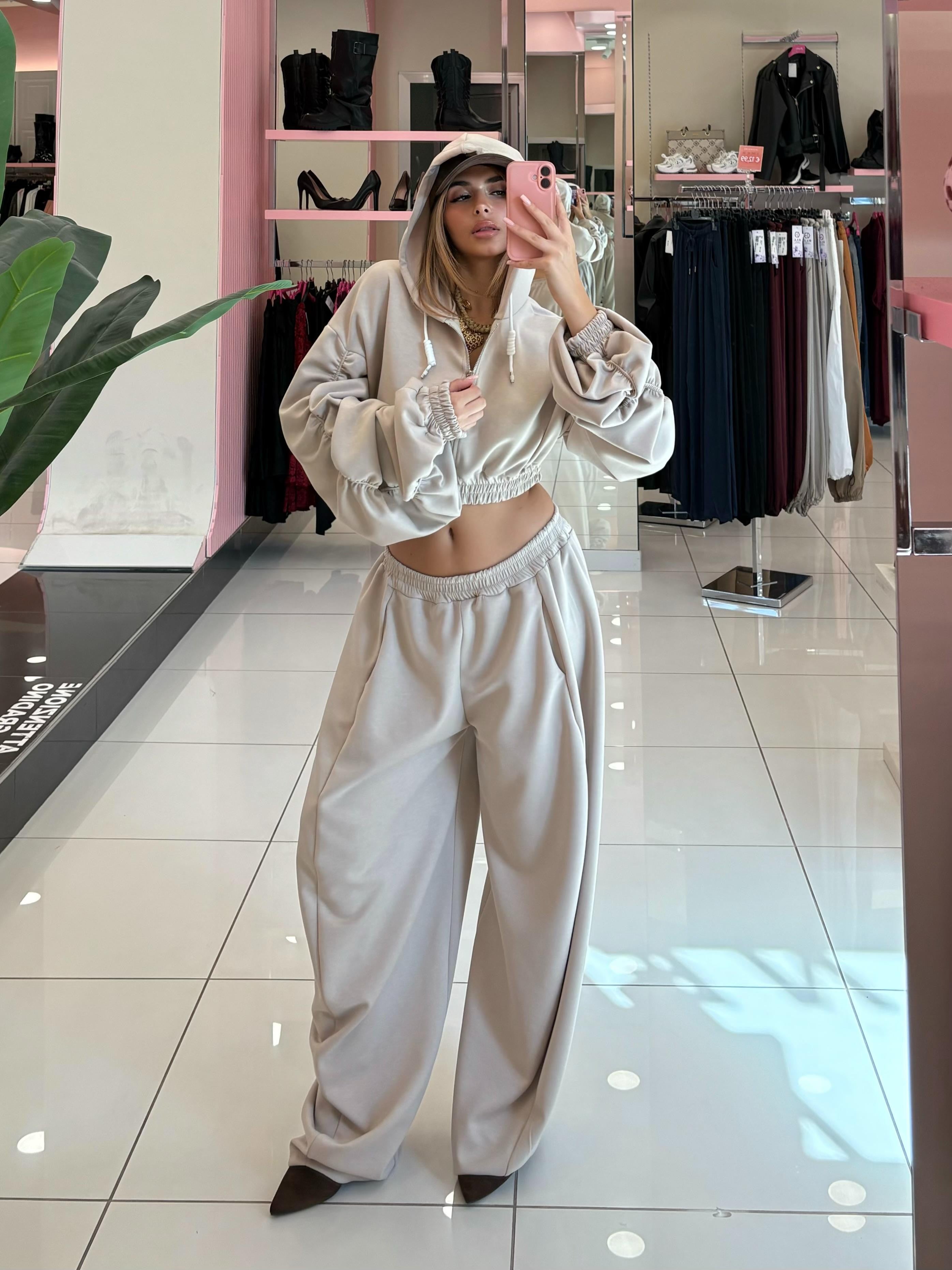 Tuta composta da felpa crop con aggrappatura sulle maniche e pantaballon
