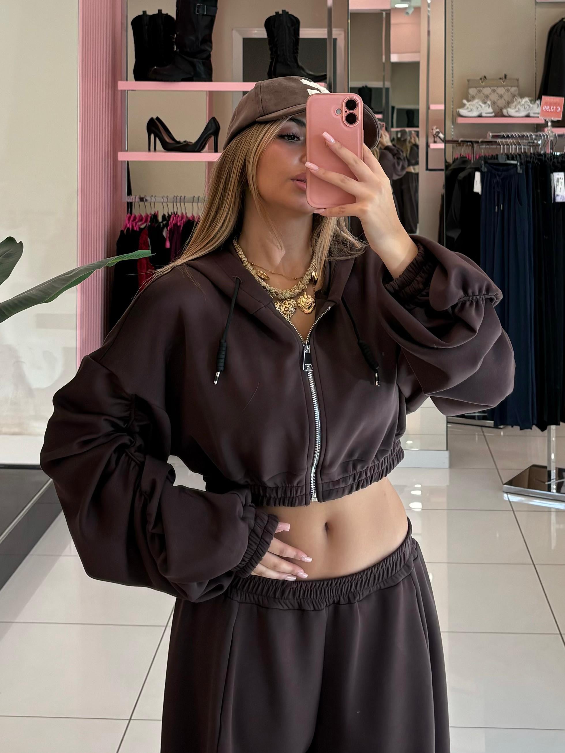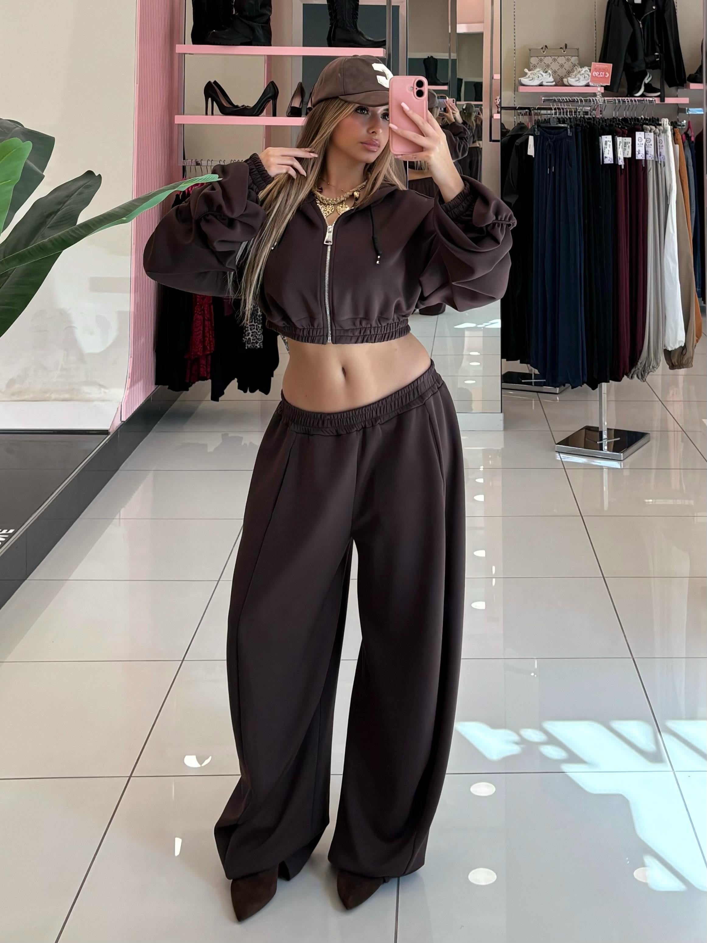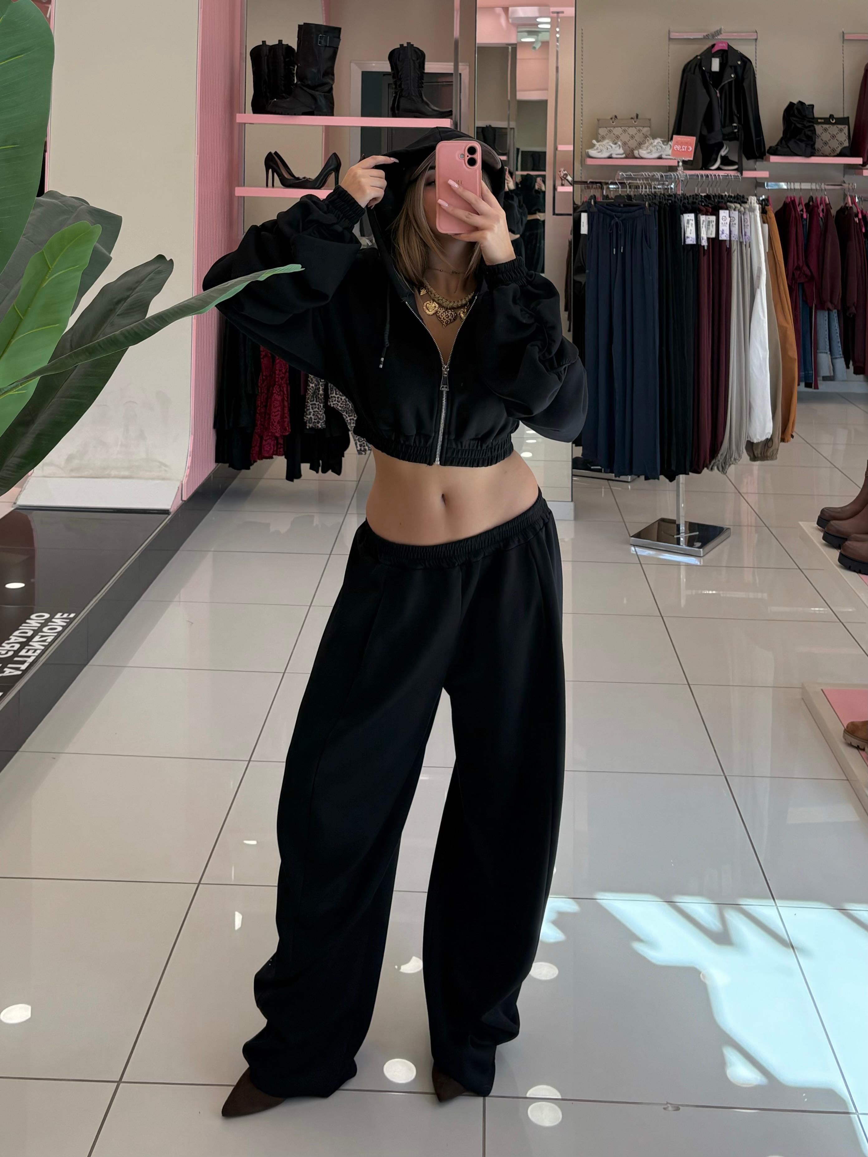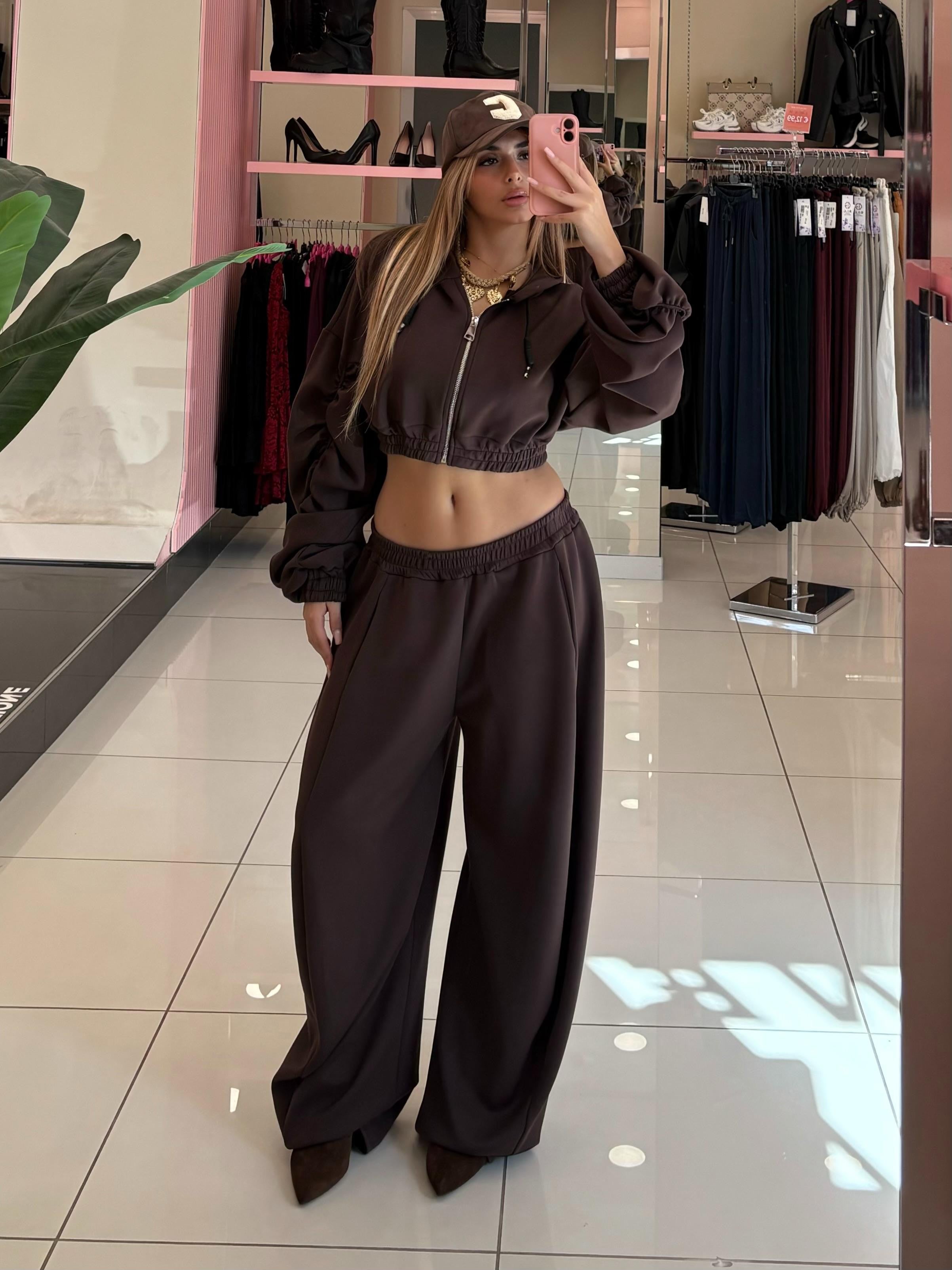 Tuta composta da felpa crop con aggrappatura sulle maniche e pantaballon