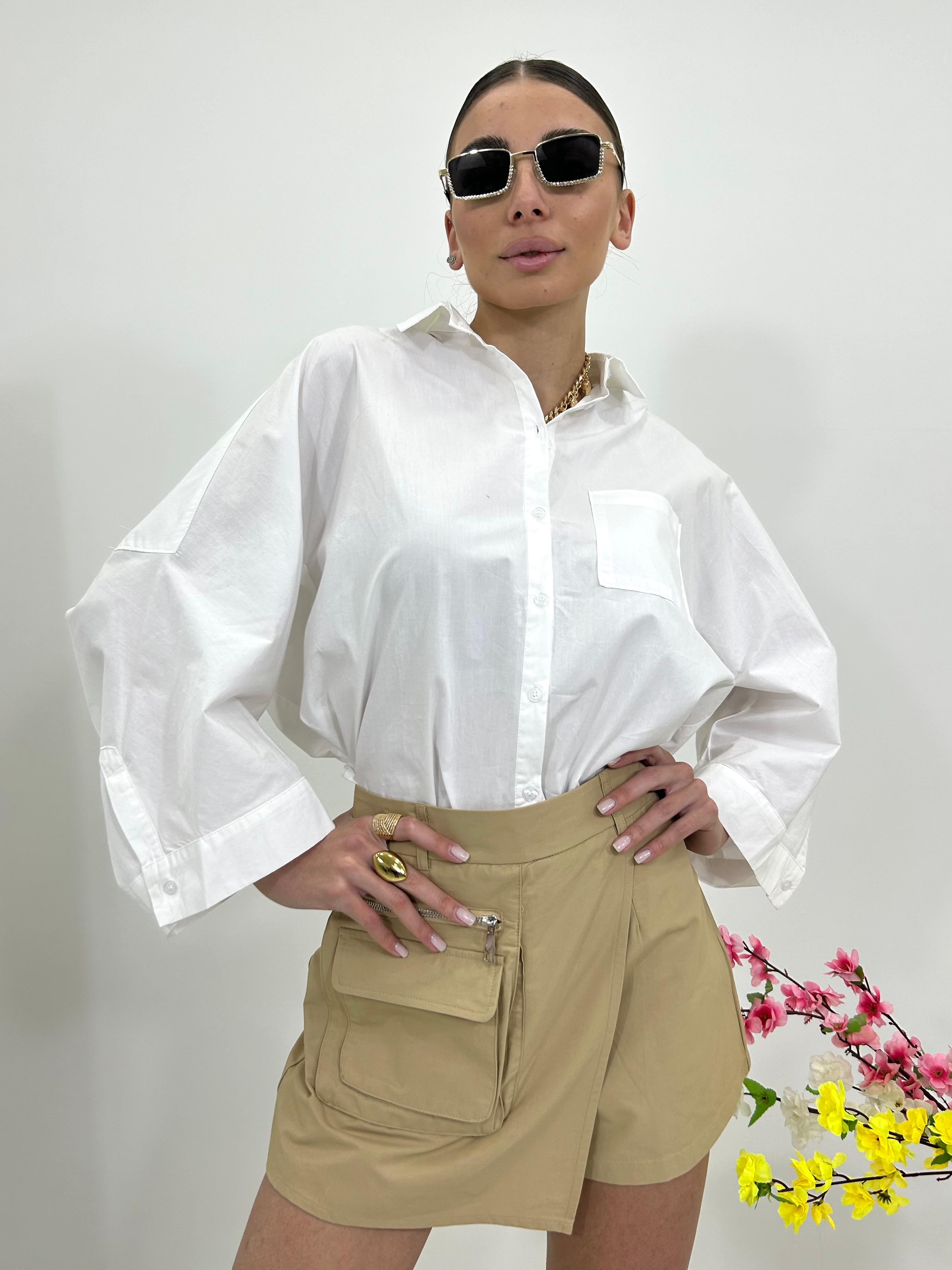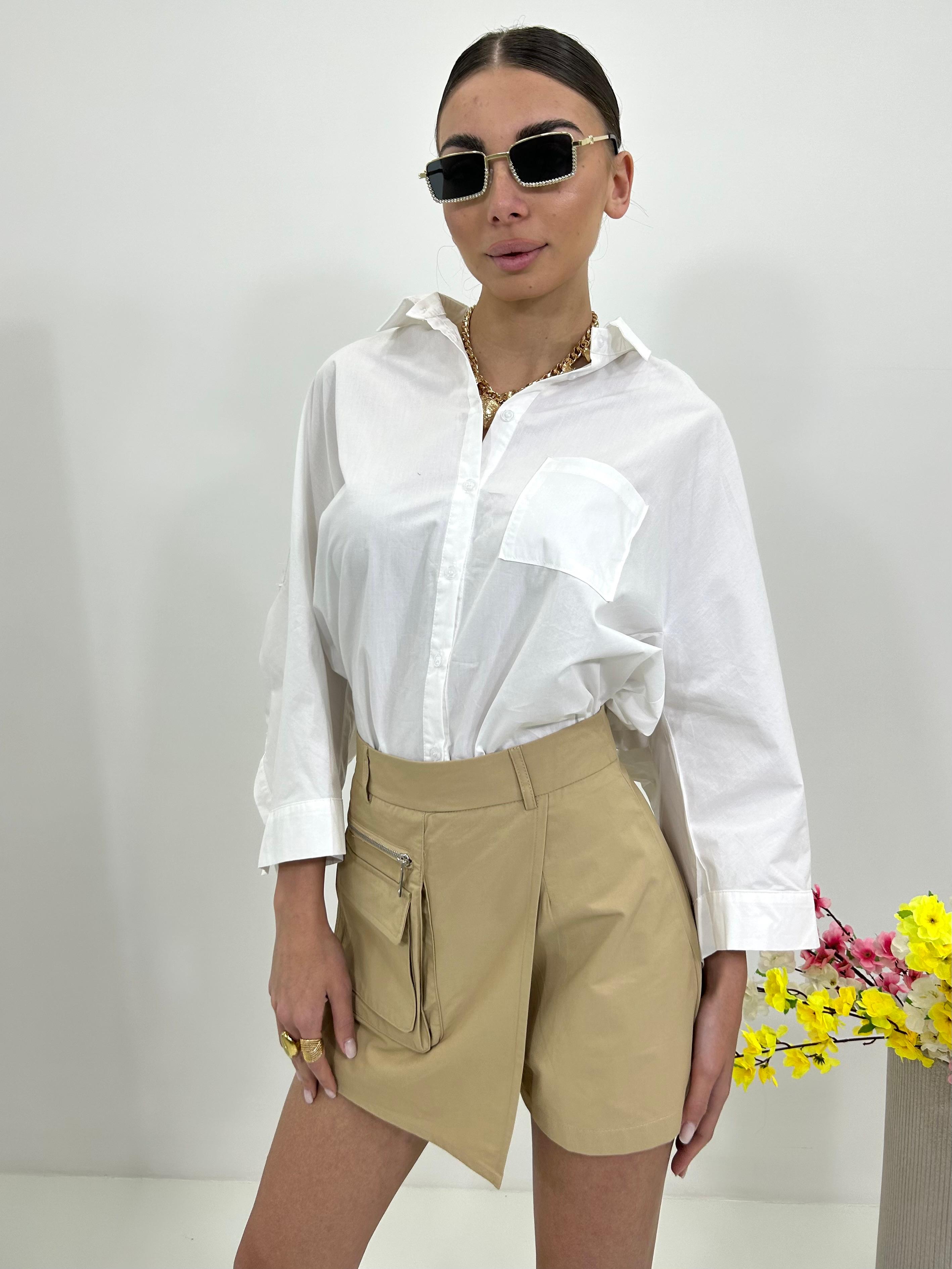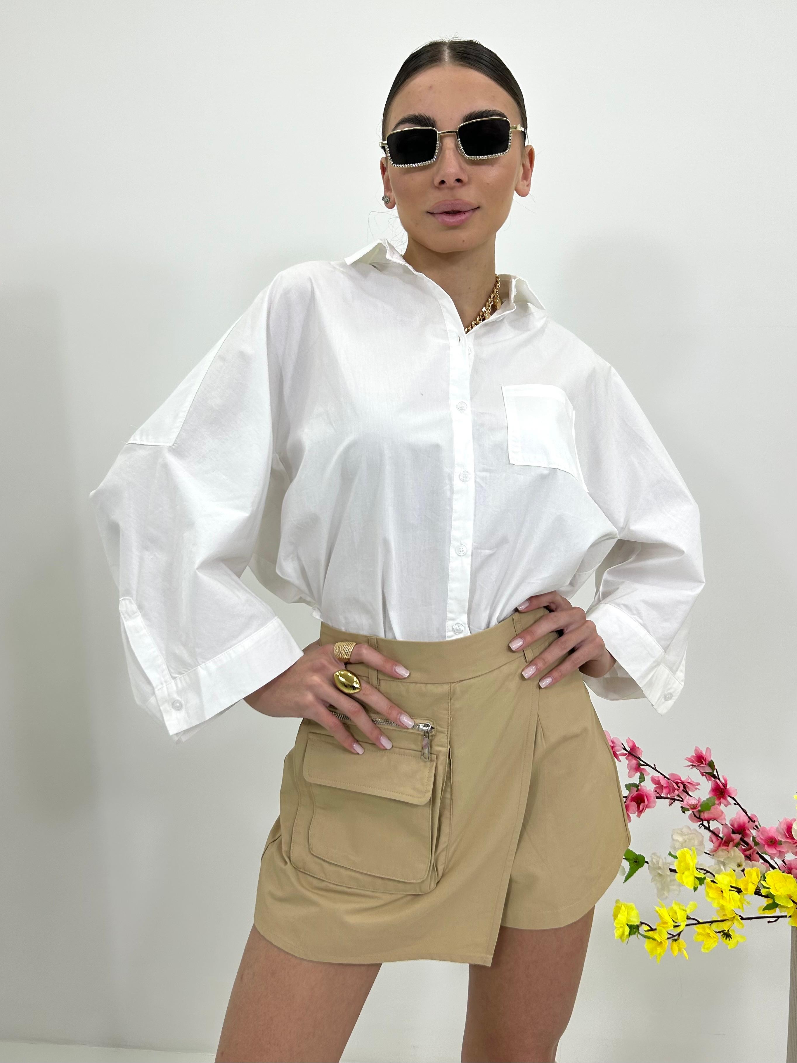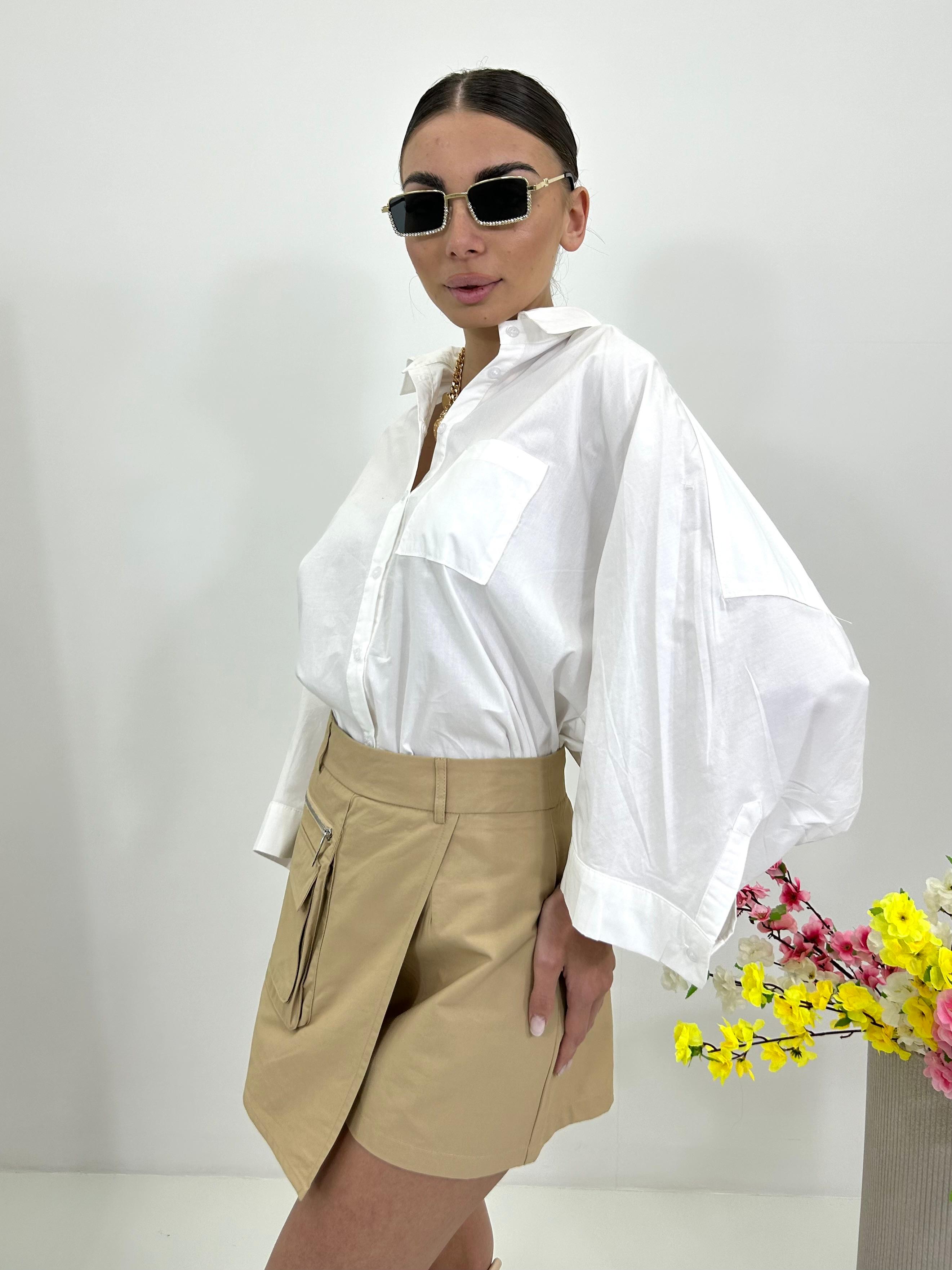 Shorts finta gonna in cotone con tascone e chisura lampo posteriore