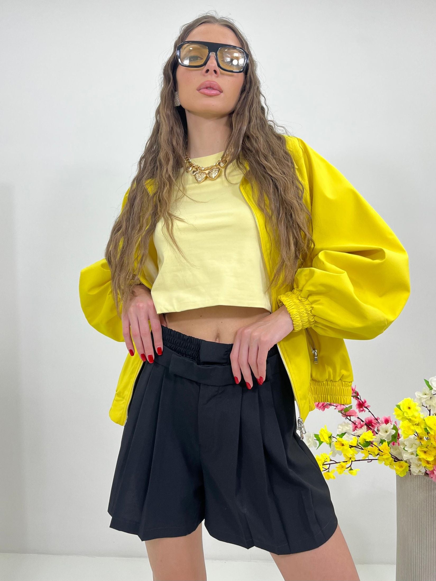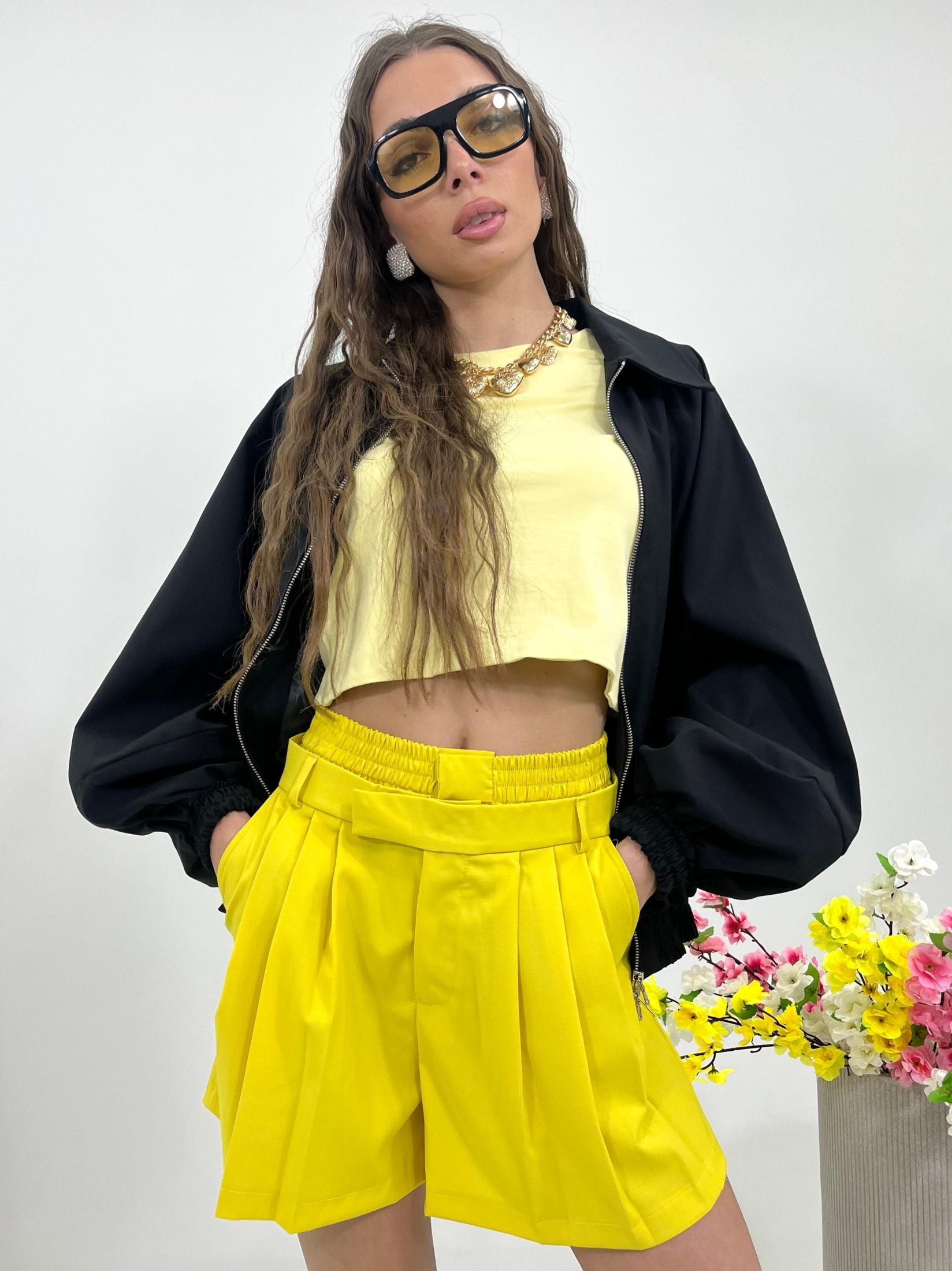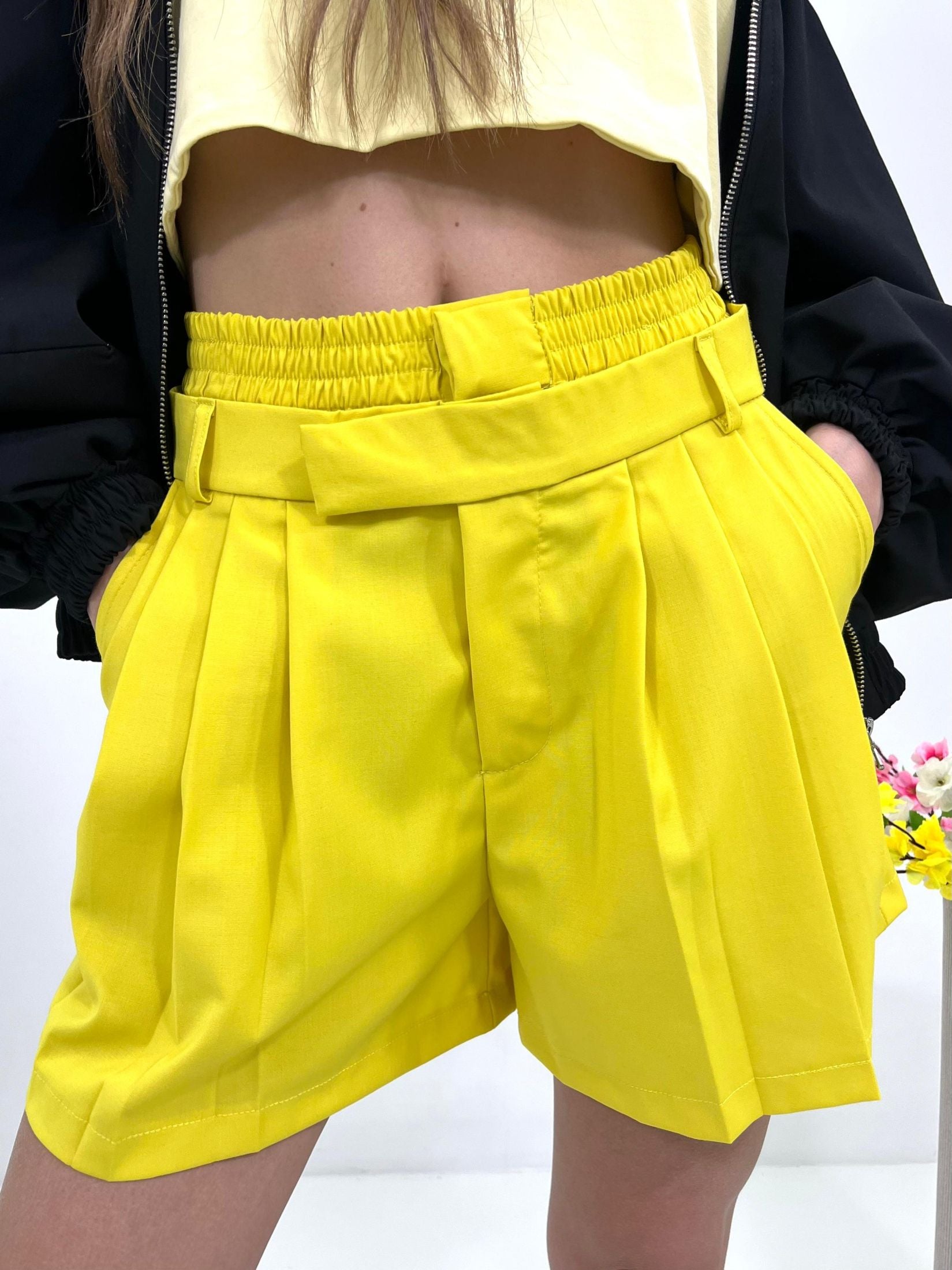 Shorts lumina con tasche e pences, fascia elastica in vita chiusura tip e bottone