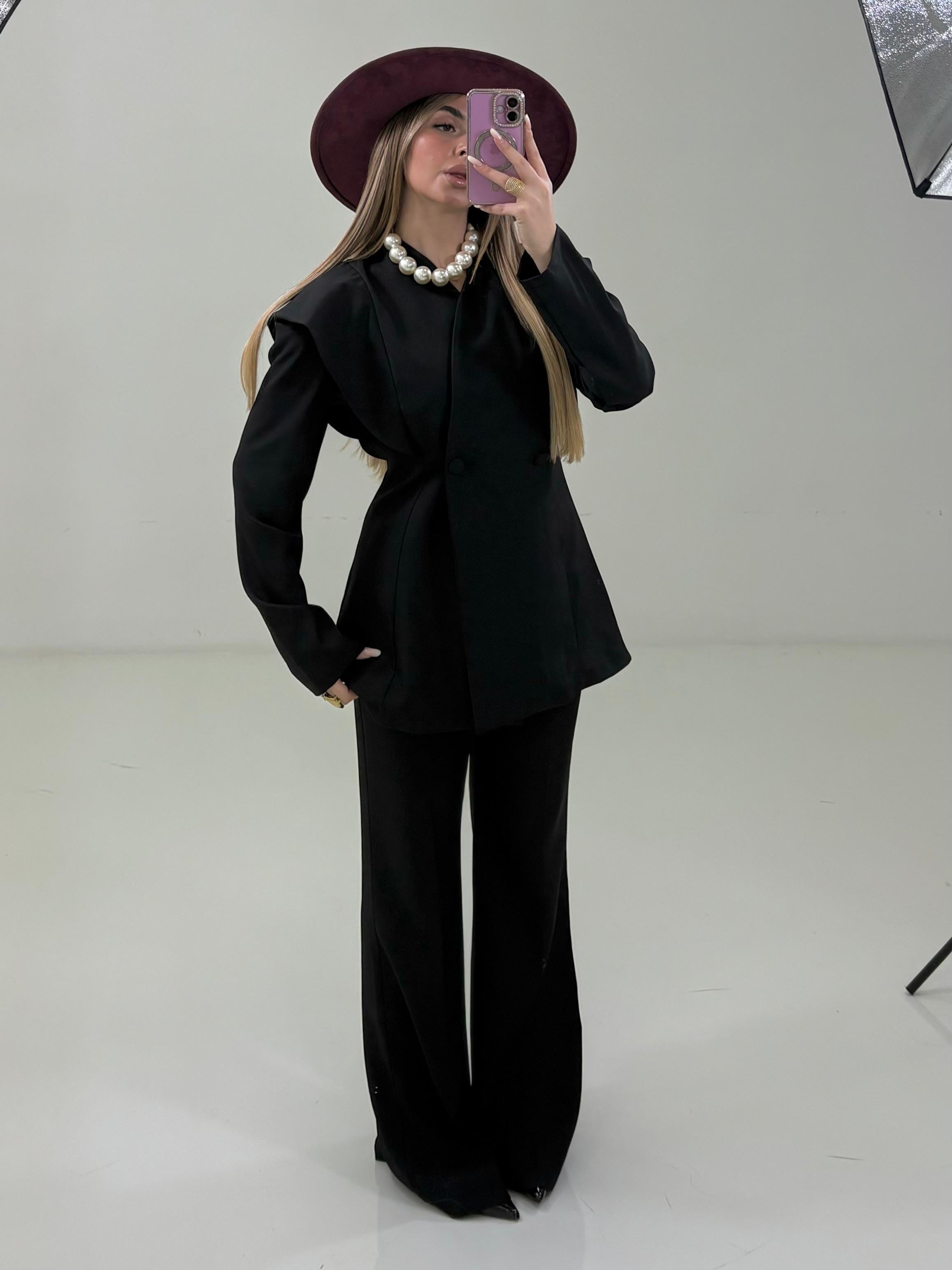 Completo composto da :giacca strutturata epantalone a palazzo.