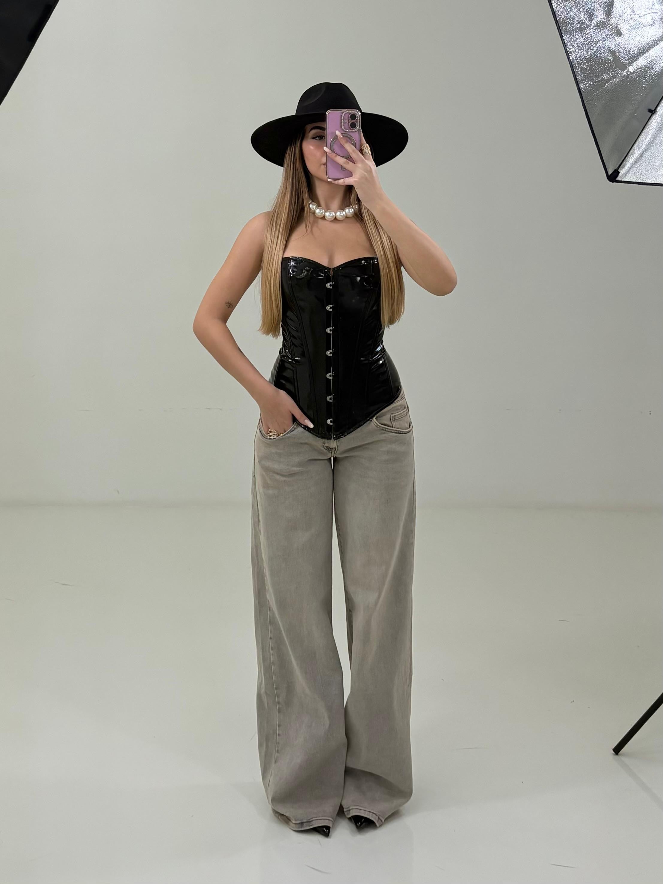 La modellamindossa una M per avere un effetto più over